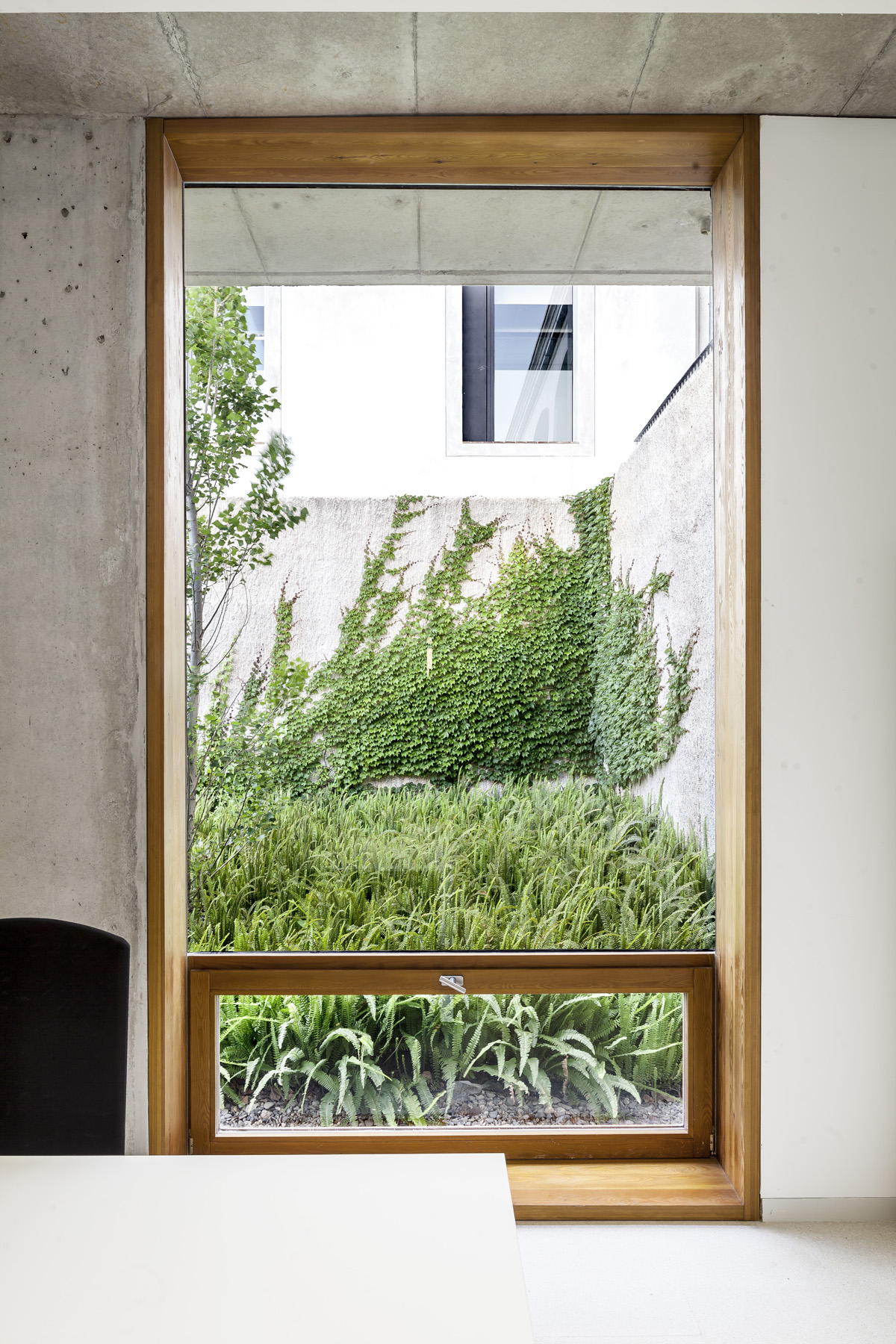 El projecte rehabilita l’espai en planta baixa i planteja una ampliació programàtica mitjançant una edificació soterrada al pati exterior. El soterrament redueix l’impacte visual que implicaria una ampliació programàtica convencional ocupant l’espai del pati exterior amb una nova edificació i dota la nova plaça d’una condició d’espai públic relacionada amb l’ús de la biblioteca i a les altres plantes baixes del pati.
