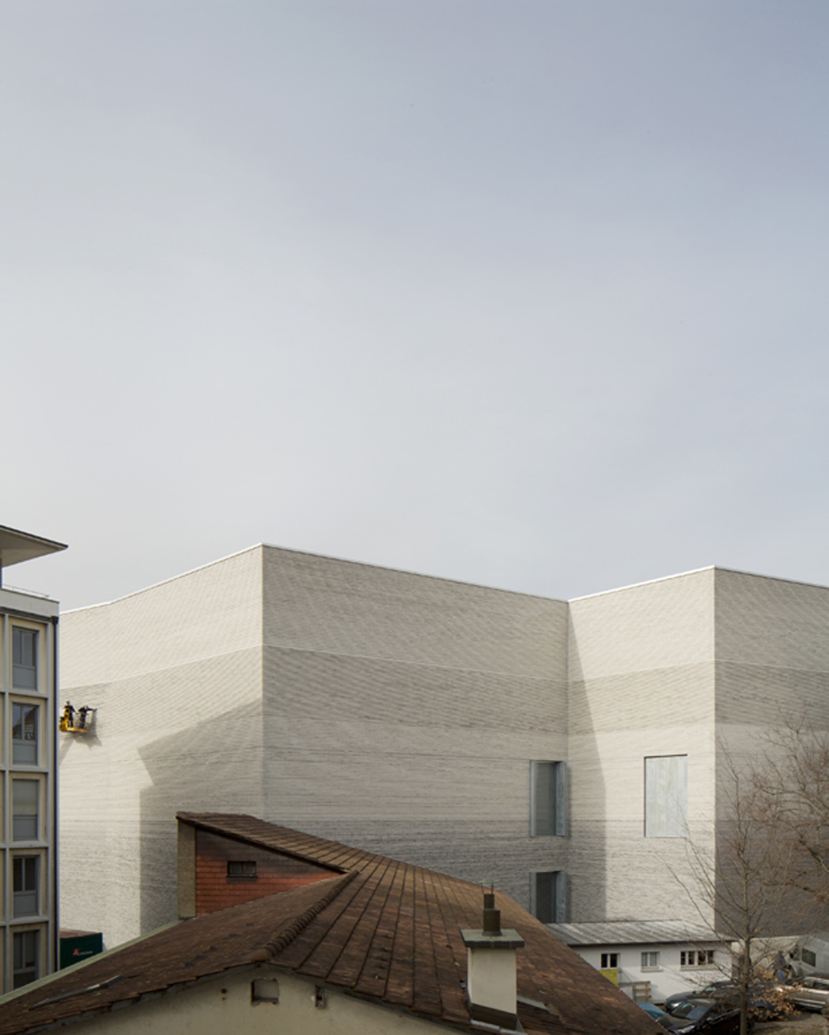 The Kunstmuseum Basel’s new building redefines a prominent location in the heart of the Basel. As a place for the exhibition and preservation of art as well as events, it embodies both a new departure and continuity. The new and enlarged museum consists of two buildings that together form a unified presence in the urban space. They are in direct communication with each other across the street that runs between them. The new building’s roofline is level with that of the existing structure, so it meets its counterpart on an equal footing; its entrance looks out toward the main building’s arcades, which conversely enjoy an excellent view of its striking façade. The new building’s distinctive inverted corner is a symbolic response to the old Kunstmuseum’s no less distinctive projecting corner. At the same time, the indented façade is a gesture of welcome, an invitation. It frames the intersection, effectively turning it into its own forecourt.
