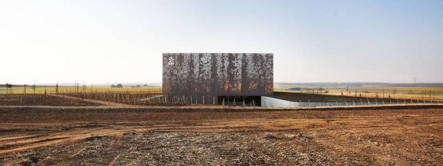 An archives storage building needs to have a considerable inertia and is thus “heavy”. The need for fast and simple site management and optimum storage efficiency led us to develop a simple and rational layout complying with the logic of a project that is both bunker-like and, in itself, an industrial process. The question was how to integrate lightness into a massive object? How to avoid interrupting the continuity of the natural landscape? Firstly, by paying particular attention to the building’s envelope. To give the impression of a lightweight building in movement, we proposed incorporating stainless steel studs into the earth-coloured concrete cladding.