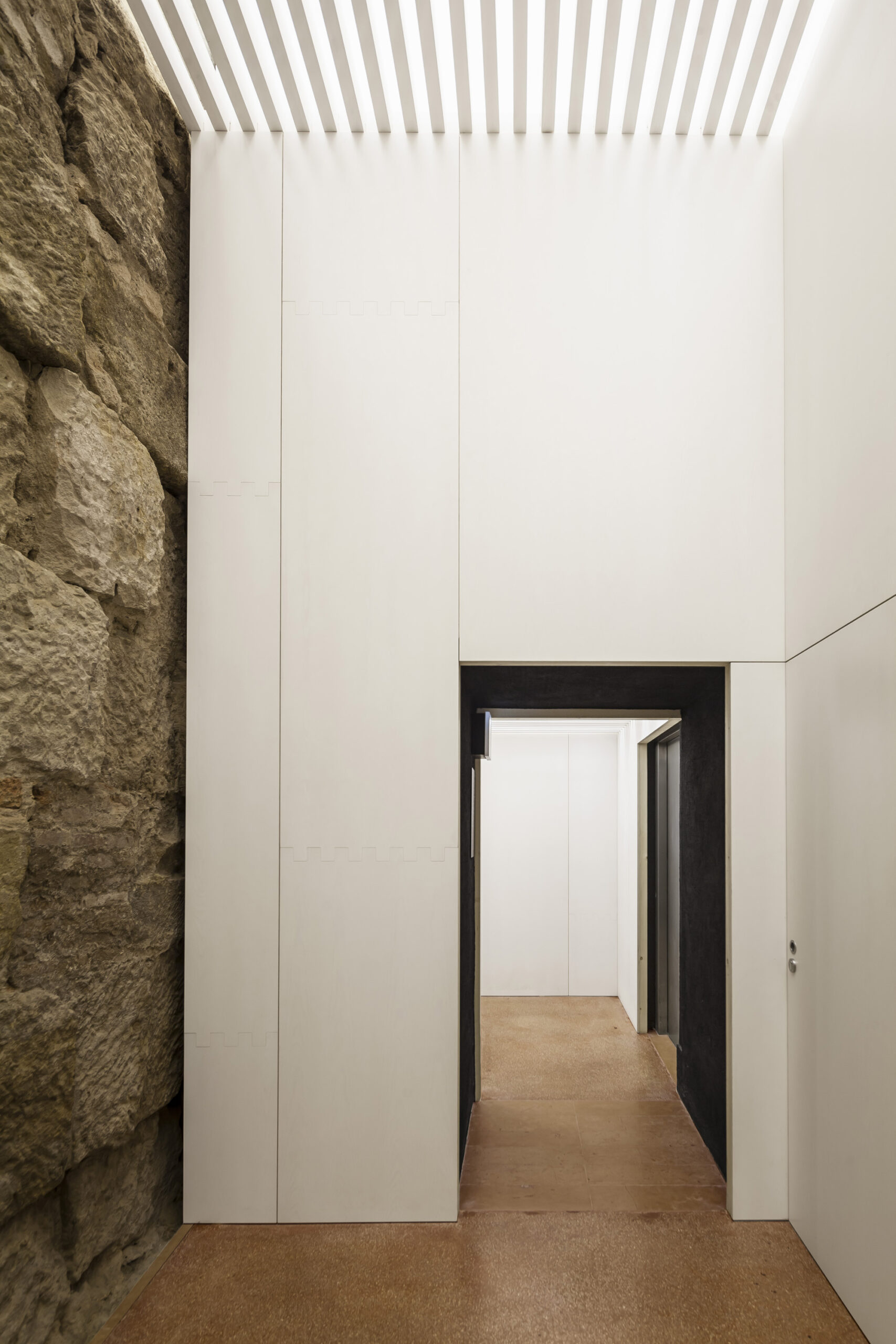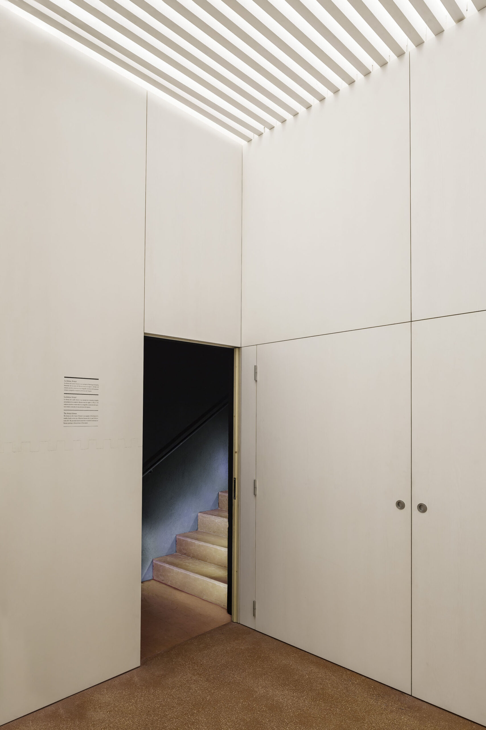 La aproximación se produce a través de una secuencia de vestíbulos que remite al sistema de articulación de los espacios principales de las Domus y Villas romanas. Los vestíbulos, de proporciones sensiblemente cuadradas y alturas cambiantes, se conectan mediante pasos de puerta profundos y bajos, que remiten a la masividad de la arquitectura romana.