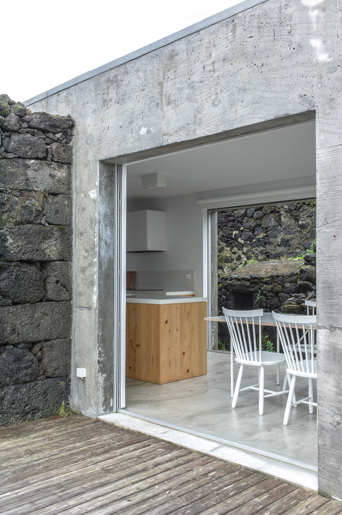 The ruin was a rural house made of basalt stone dating from the XVIII century. The project came from the will to maintain the ruin and thinking of a house that would value it and take advantage at the same time, offering the most diverse and complex possibilities of living than the former typology.