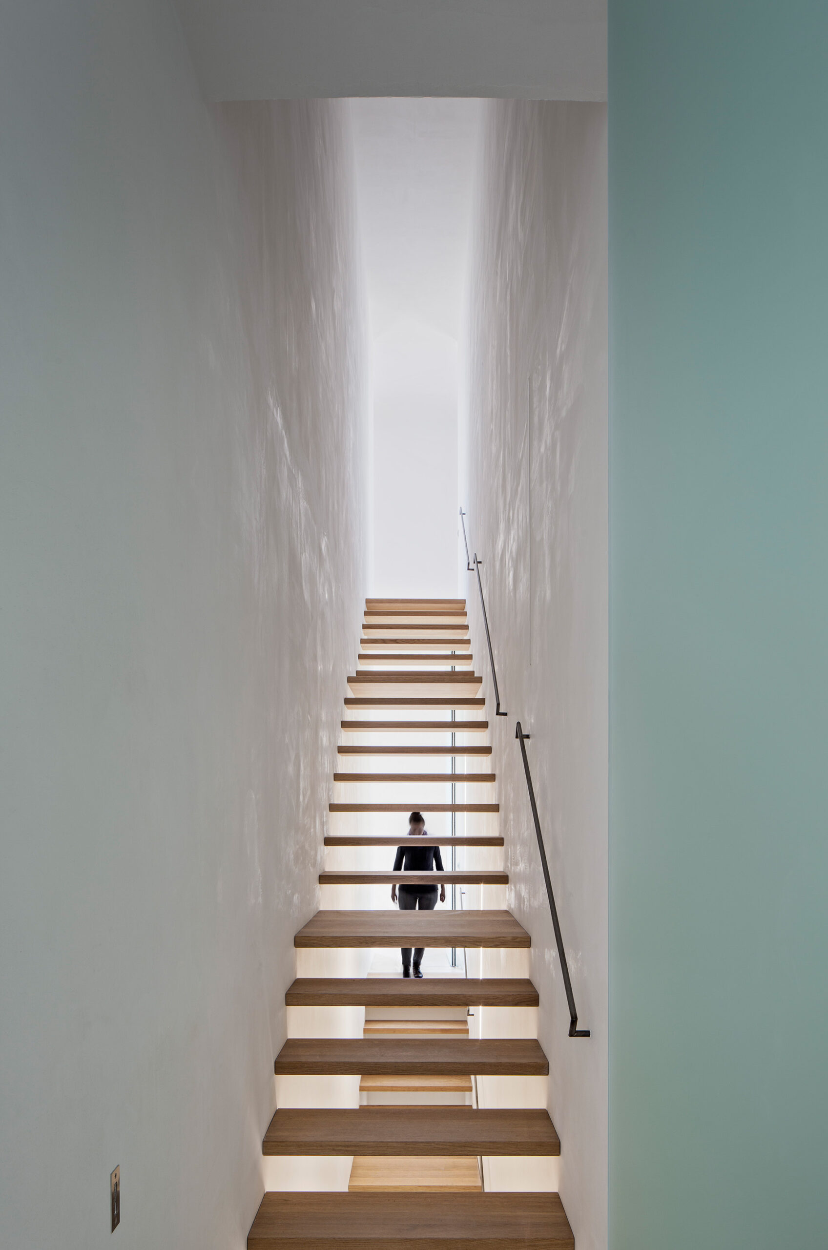 The building has no heating, ventilation or cooling system, the flow of energy being controlled by human hand. Above all, however, this is a stone building with walls, doors and high-ceilinged rooms. It needs little grey energy, and elementary architectural means are used to create a sense of well-being that derives from the pleasant proportions and self-explanatory use. The constructional and energy-related foundations needed to achieve this effect illustrate the know-how Baumschlager Eberle have built up over 27 years. The envelope has a cavity wall structure with each wall consisting of 36-centimetre bricks.