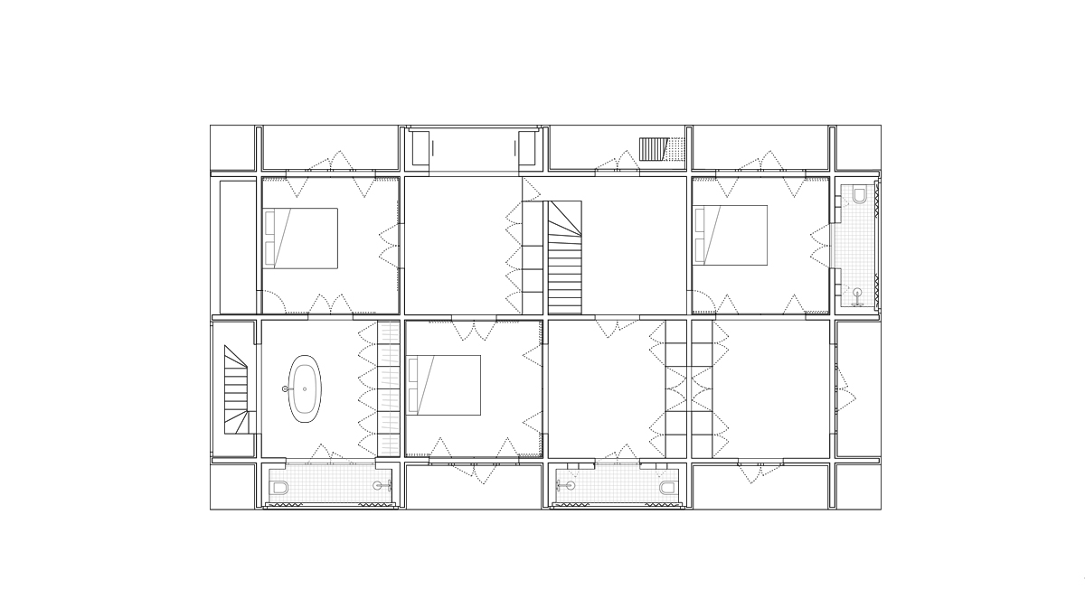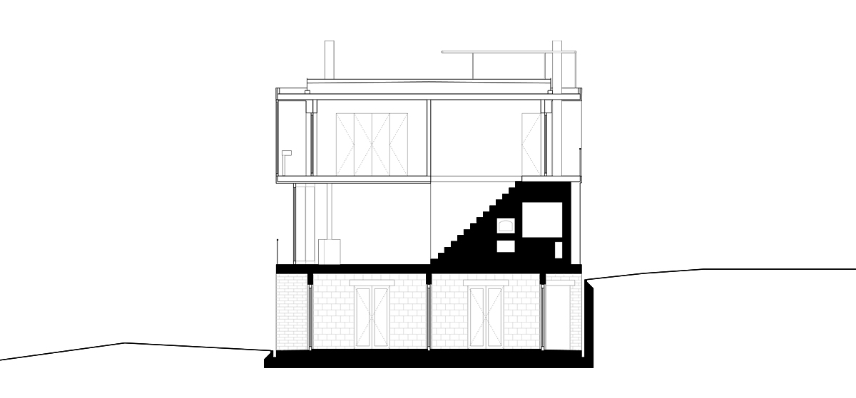 The villa presents itself as a remnant of a house; a set of tectonic elements crating different spatial hierarchies. Sometimes the spaces are open to the sky; sometimes they get their light indirectly. The structure is made of massive concrete beams and columns, measured with maximal tectonic effect. The structure is translated into a spatial idea. Concrete columns become stained wooden columns as soon as one crosses from inside to outside, effectively creating a spatial construct, a spatial sequence of hypothetical places to stay. The villa thus exists in the green island that is maintained by its very existence, a conscious contribution to an urban tissue on the verge of extinction.