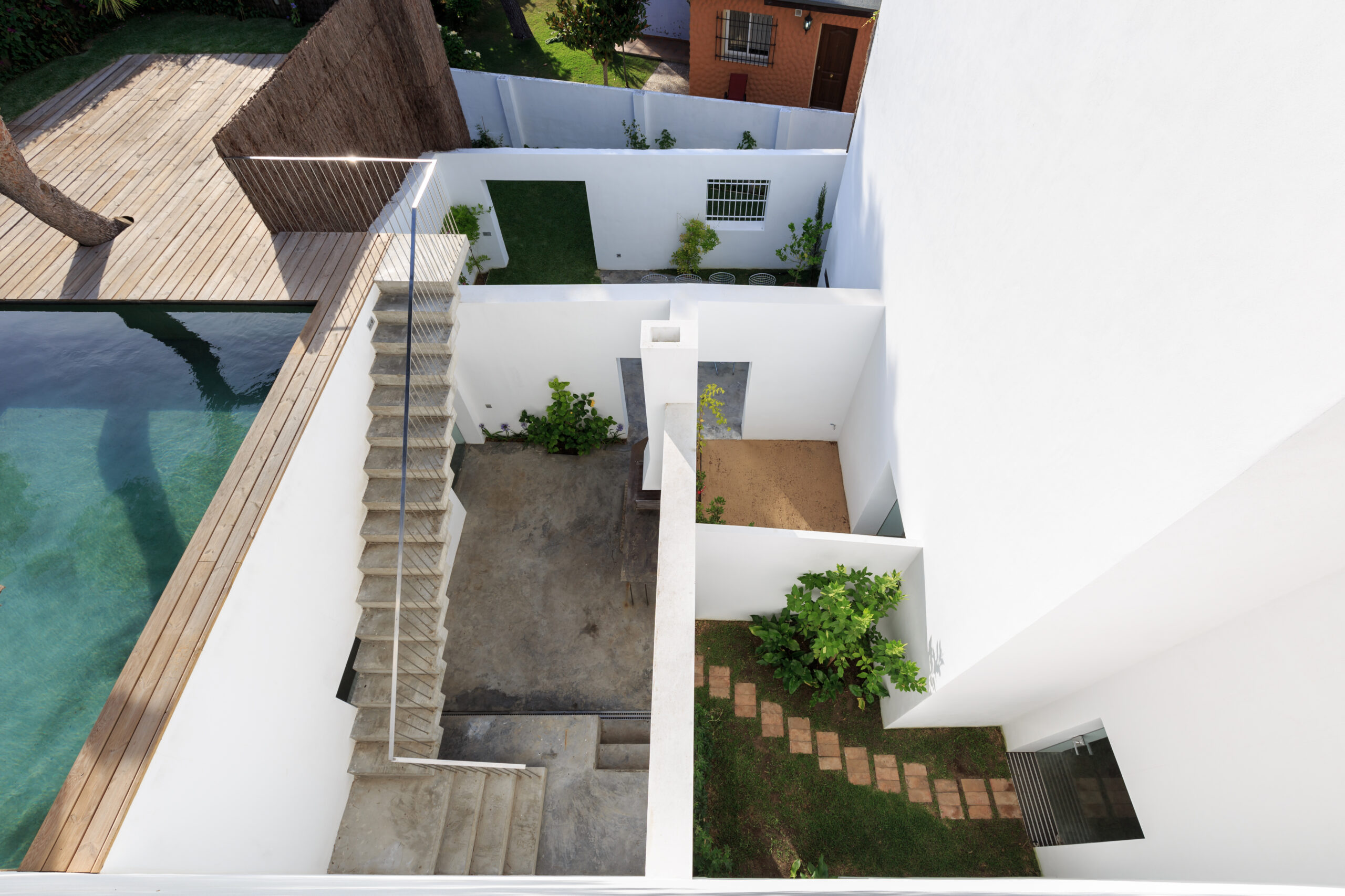 Dos son las razones principales por las que se necesita construir una nueva casa: la primera, porque la primigenia acoge un espacio insuficiente para la actual familia, con tres hijos mayores; la segunda, porque el modo de vida de sus moradores demanda dotarla de la máxima intimidad posible. Hay que pasar, pues, del open garden al jardín cerrado, concepto opuesto que nos transporta a la vida y las costumbres íntimas de las casas solariegas de Andalucía.