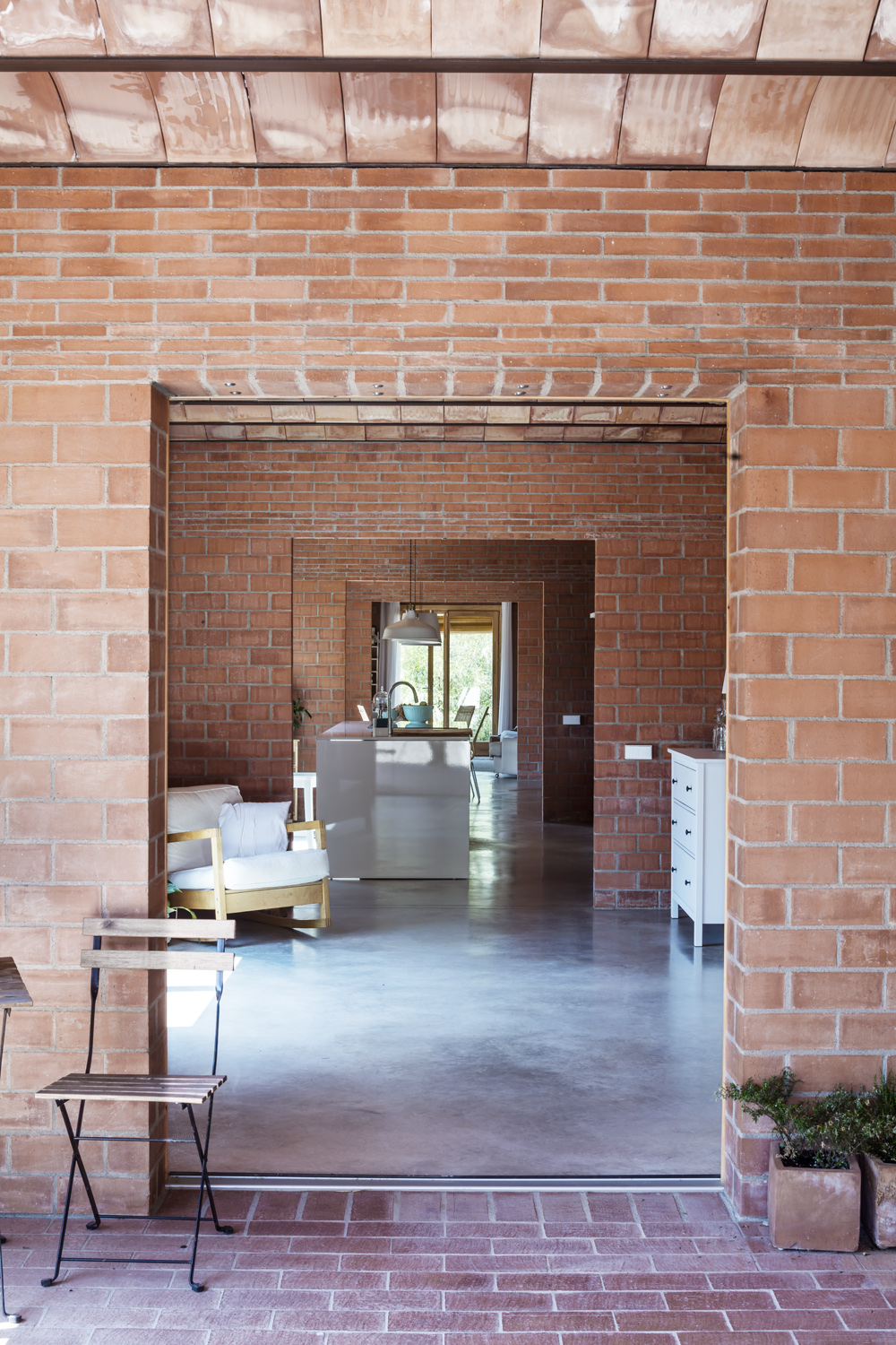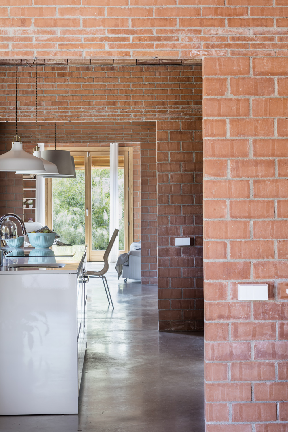 En una parcela sin demasiadas singularidades, el proyecto partió de la restricción que aportaba el estudio geotécnico, que indicaba que los primeros metros de subsuelo tenían una capacidad resistente muy baja. Para evitar una solución de cimentación profunda, poco viable econòmica y ambientalmente, fue necesario replantear la organización de la casa y sus sistemas constructivos. Se necesitaba una construcción muy ligera o alternativamente una construcción que repartiera muy homogéneamente las cargas al terreno. La opción de construcción ligera se descartó porque se creyó necesario tener el máximo de inercia tèrmica interior para garantizar un mejor confort pasivo. La primera decisión fue hacer una casa en planta baja para repartir el peso de la edificación. La segunda, utilizar solera para transmitir el peso de los pavimentos y del uso directamente al terreno. La tercera, utilizar un sistema estructural lineal y en retícula que repartieran al máximo y de manera proporcional las cargas de la cubierta al terreno: llevar el proyecto al límite, ajustando al máximo y sobrecargando el terreno hasta el extremo para conseguir la casa más pesada posible, con la màxima masa (inercia) admisible por el terreno.