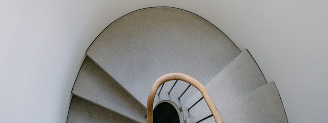 The staggered arrangement of the structure is also visible inside. On the ground floor, the entrance hall assumes a central position, from which all rooms are accessible. An oval-shaped staircase leads to the private rooms on the first floor and the rooftop terrace above. In order to create a clear and calm home, a limited palette of materials was selected: oak floorboards in the living areas and terrazzo for the stairs as well as the floors and surfaces in the kitchen and bathrooms. Grey bricks, laid in a herringbone pattern, are used in the garden, courtyard and rooftop.