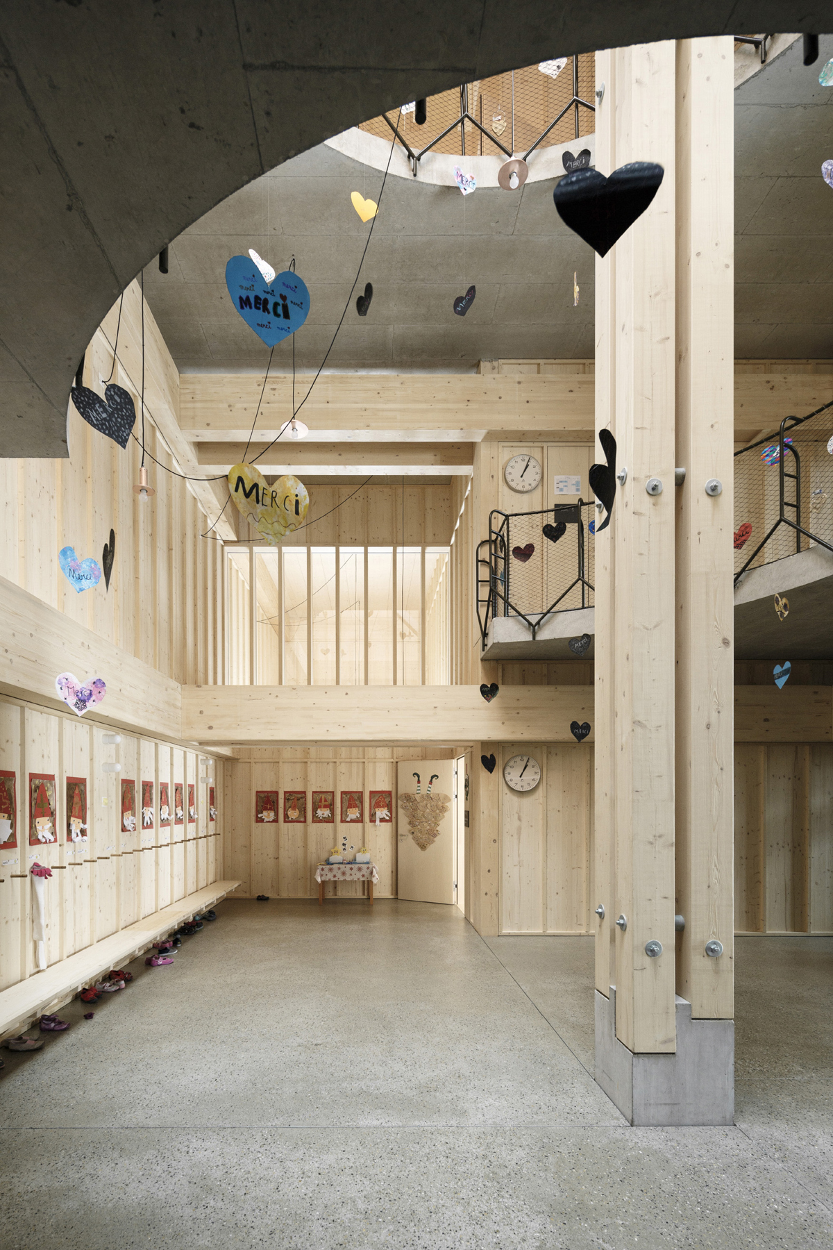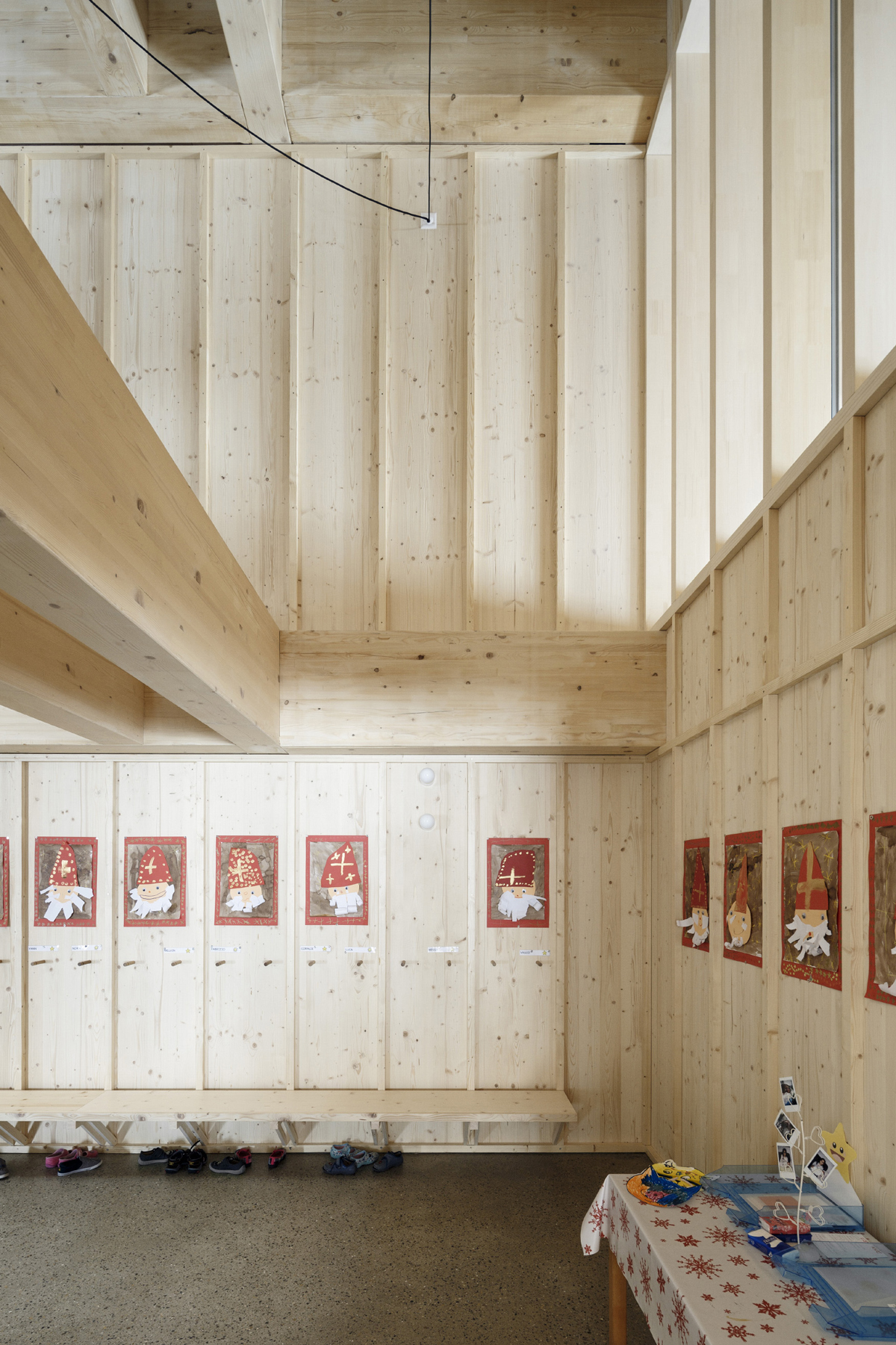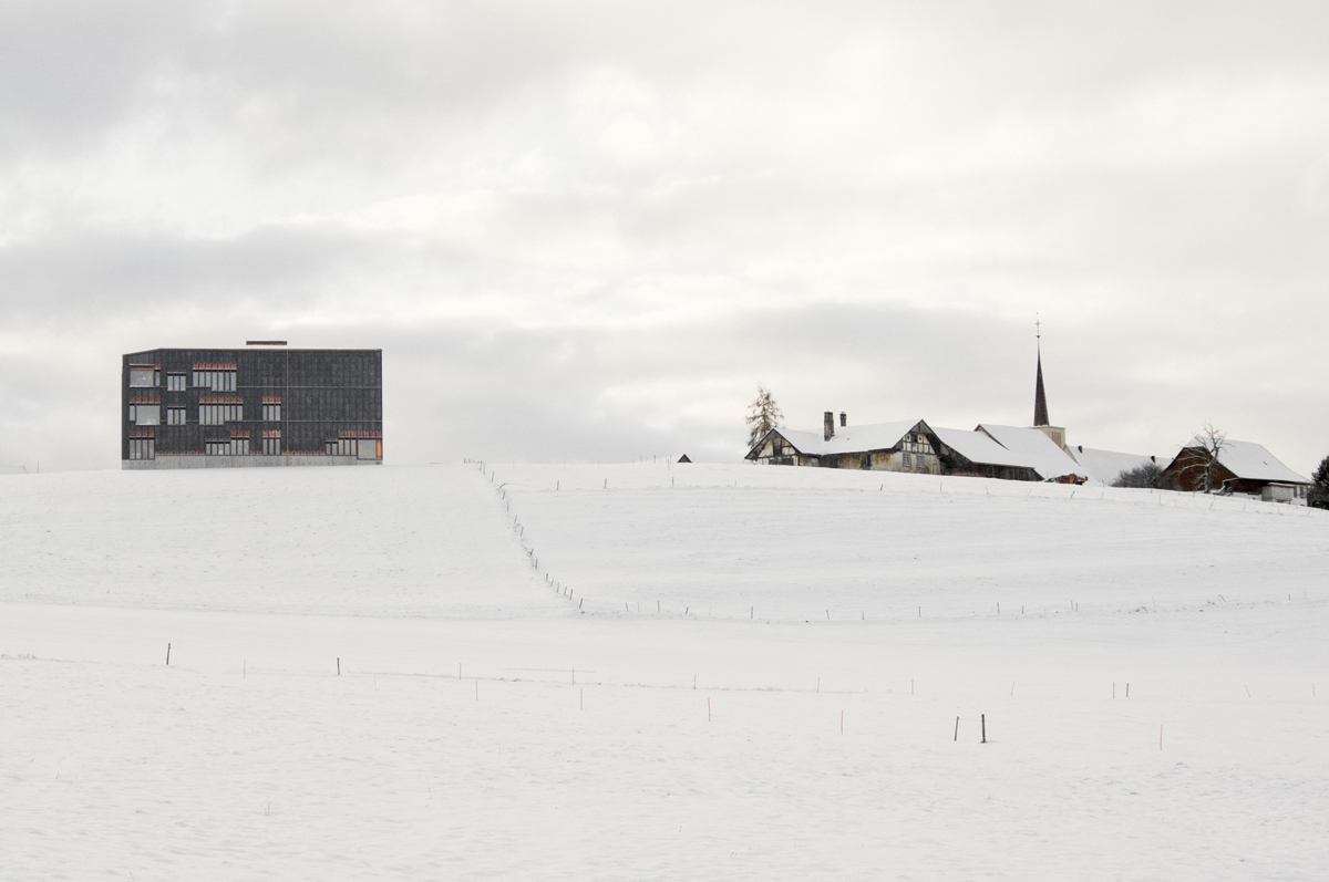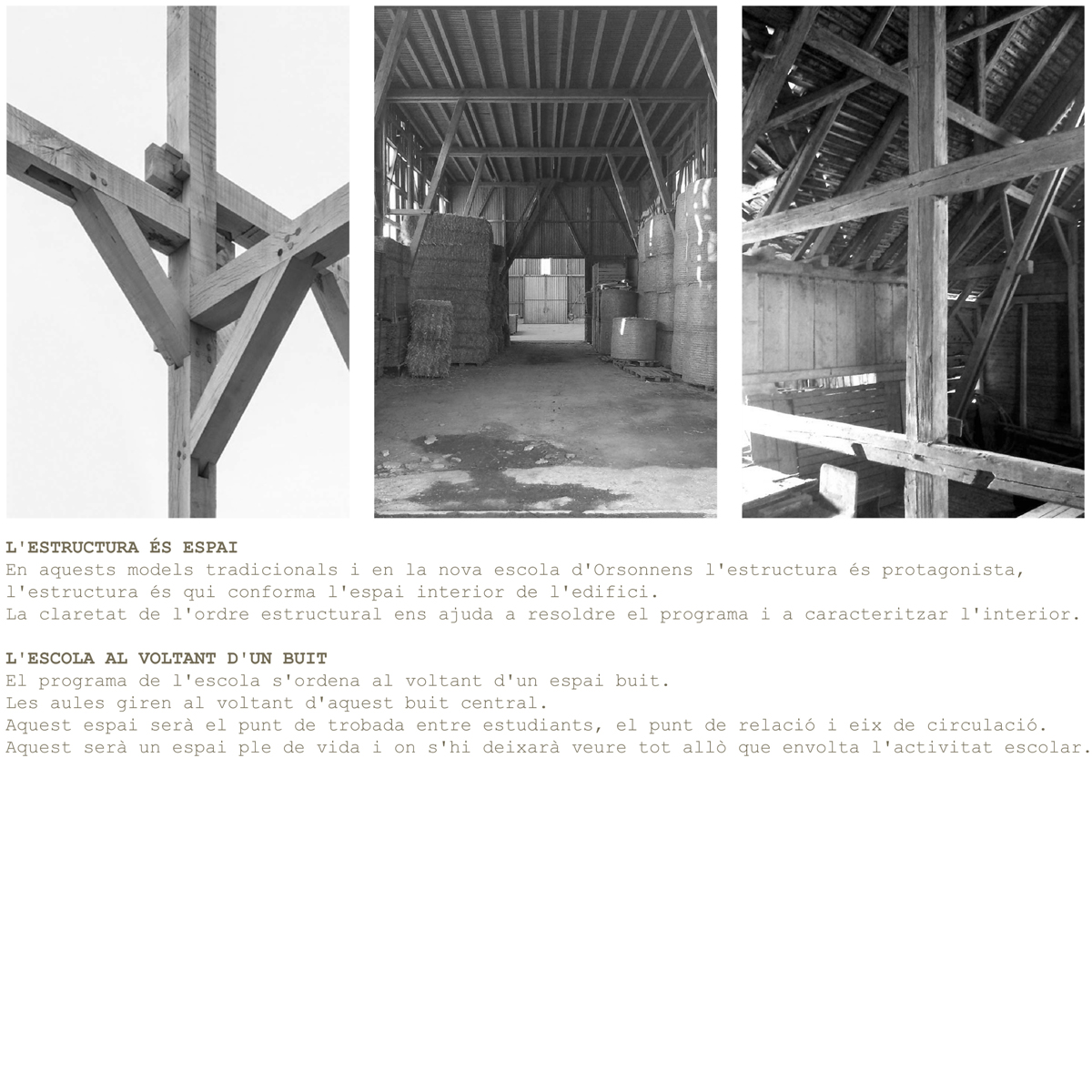 En estos modelos tradicionales y en la nueva escuela de Orsonnens la estructura es protagonista, la estructura es quien conforma el espacio interior del edificio. La claridad del orden estructural nos ayuda a resolver el programa y a caracterizar el interior.
