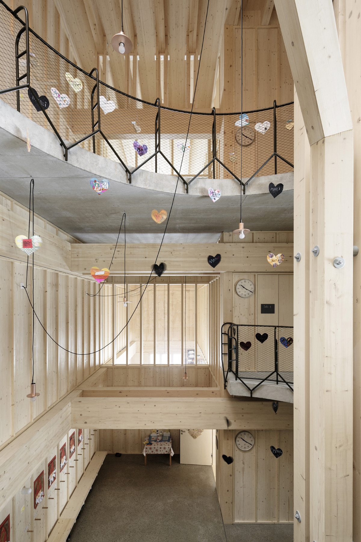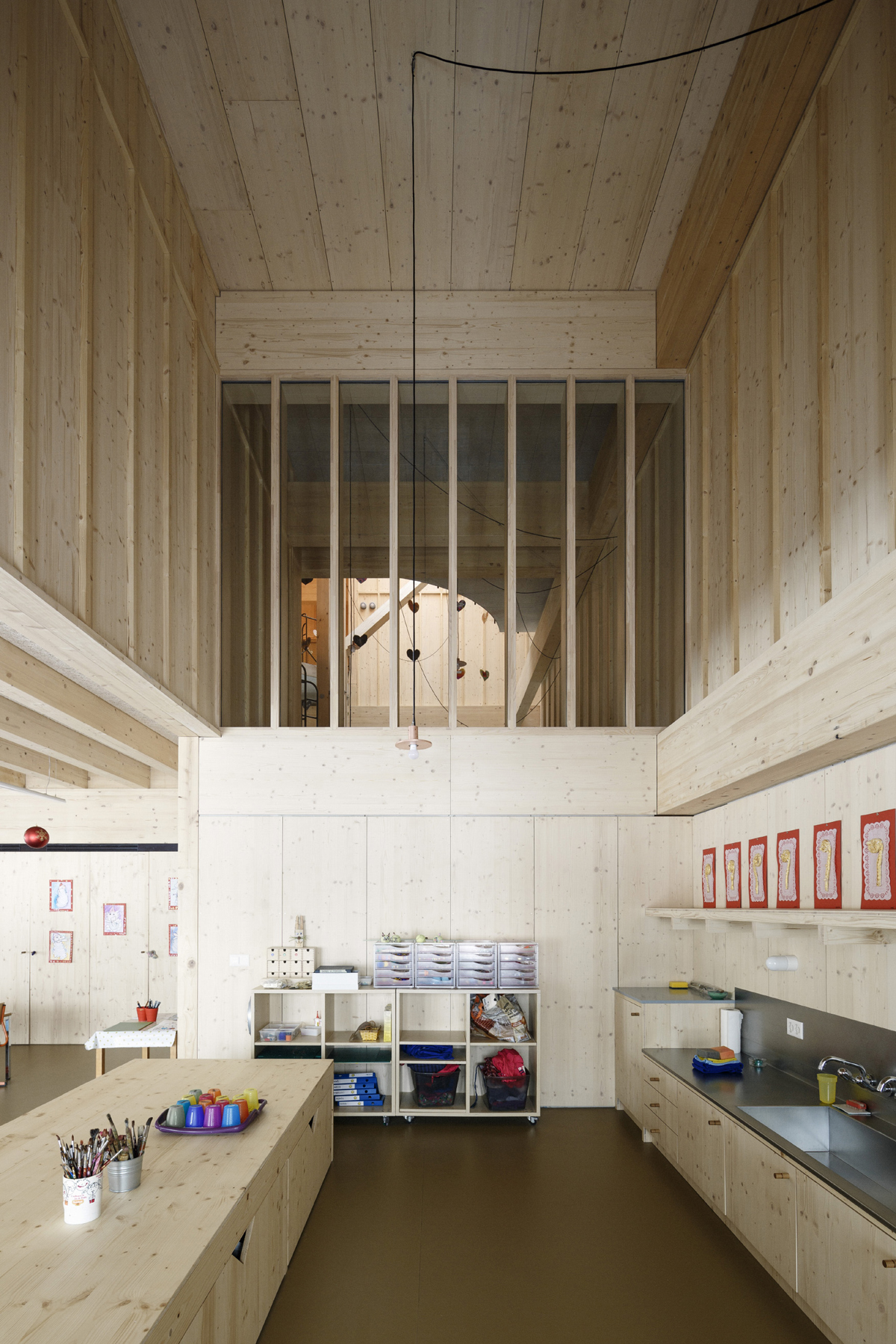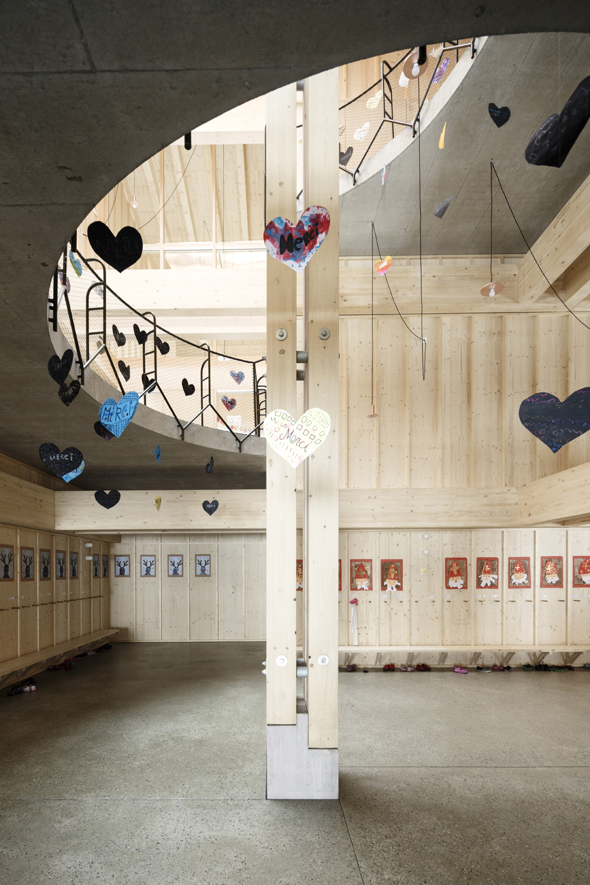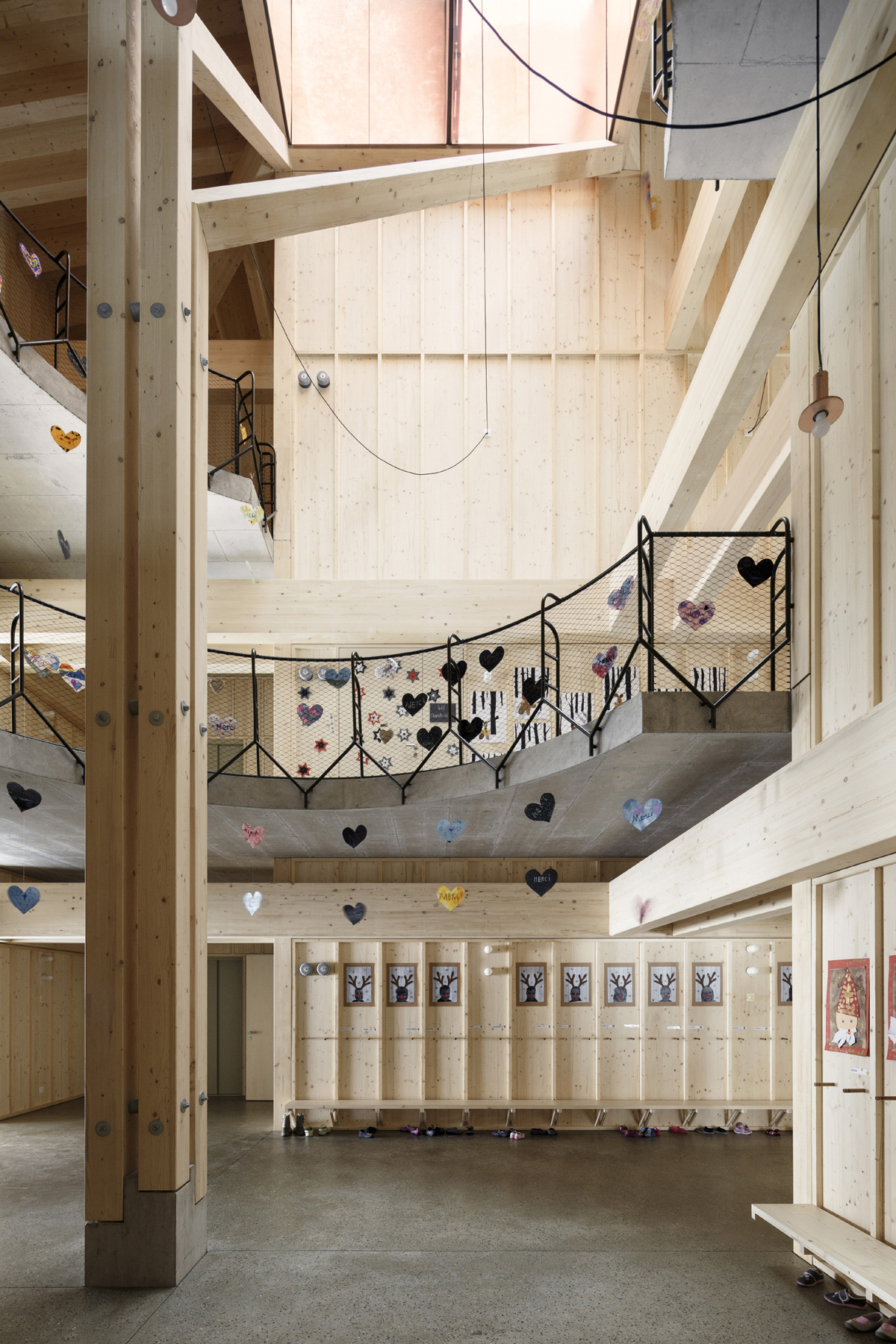 En estos modelos tradicionales y en la nueva escuela de Orsonnens la estructura es protagonista, la estructura es quien conforma el espacio interior del edificio. La claridad del orden estructural nos ayuda a resolver el programa y a caracterizar el interior.