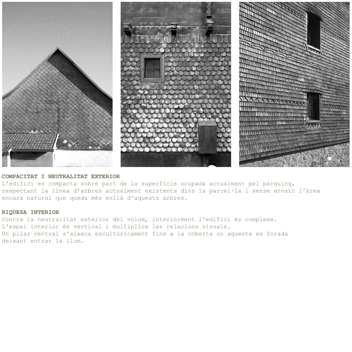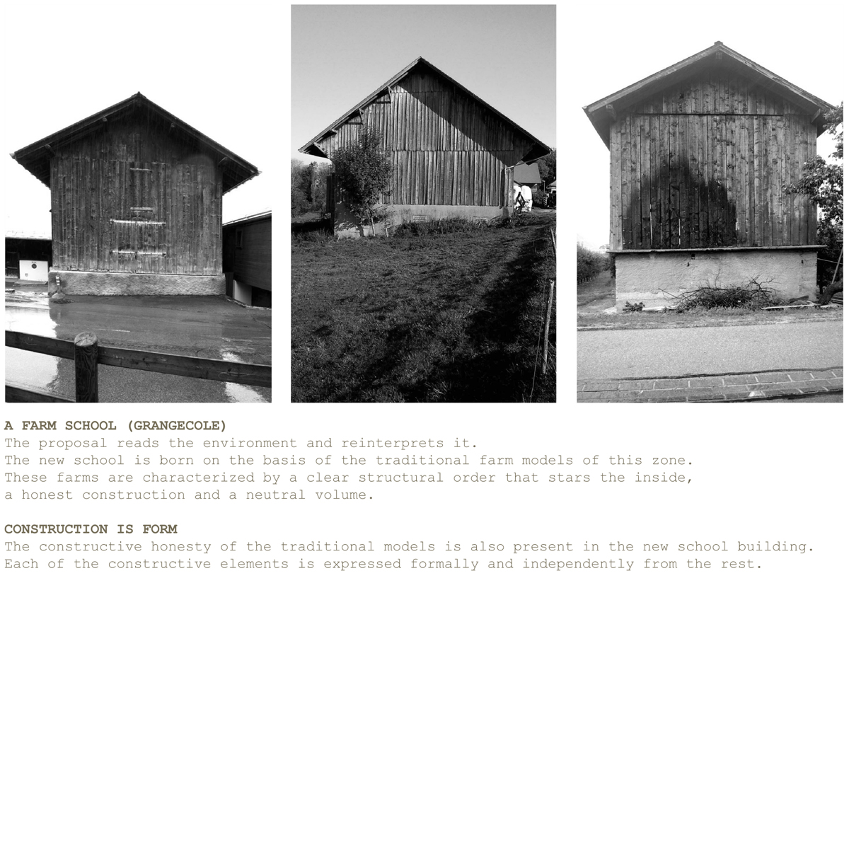 La propuesta lee el entorno y lo reinterpreta. La nueva escuela nace a partir de los modelos de granjas tradicionales de esta zona. Estas granjas se caracterizan por un claro orden estructural que protagoniza el interior, una construcción sincera y una volumetría neutra.