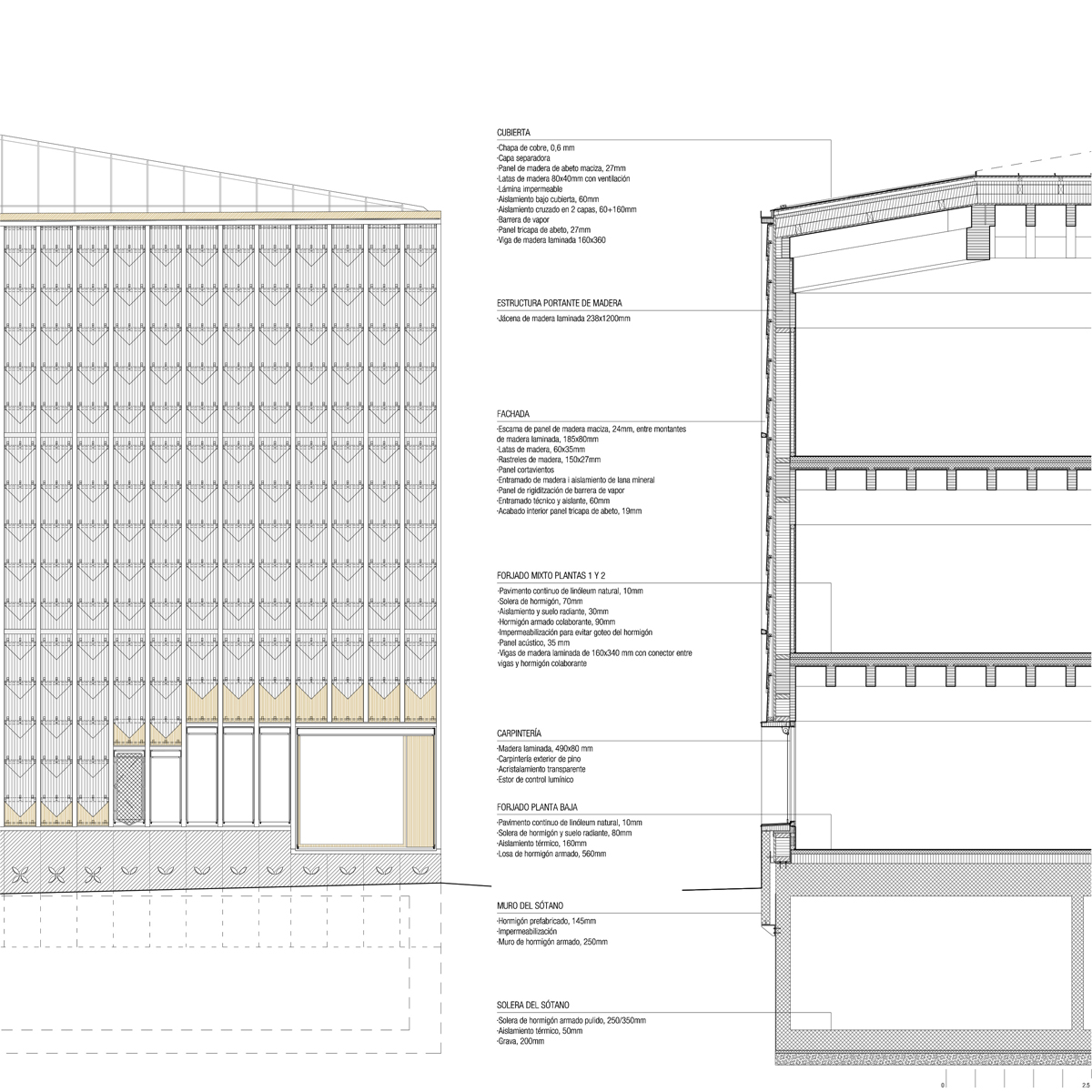La sinceridad constructiva de los modelos tradicionales también está presente en el nuevo edificio escolar. Cada uno de los elementos constructivos se manifiesta formalmente y con independecia del resto.