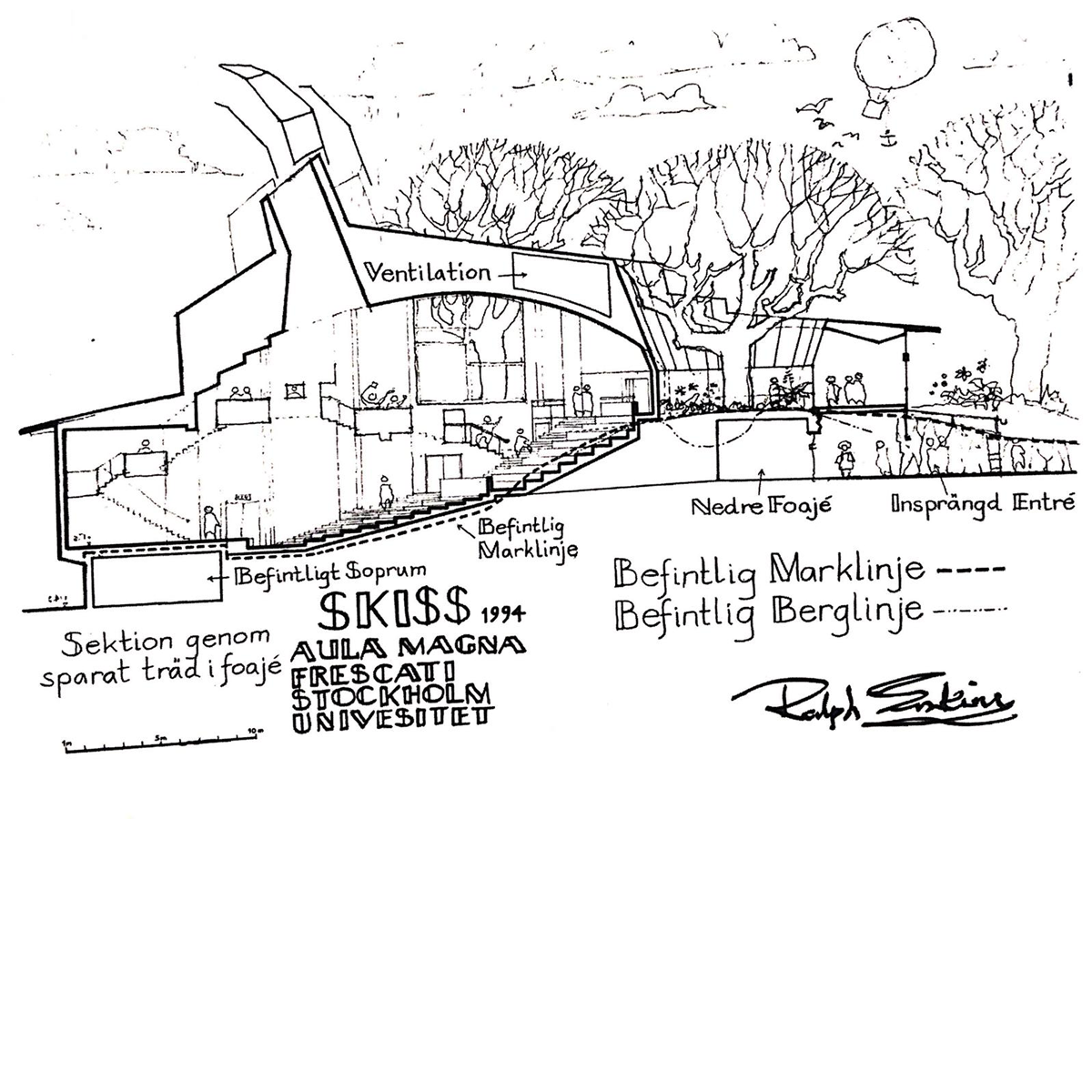 Erskine was asked to compete in a parallel sketching competition with four other Stockholm architects for a new library at Frescati University. The competition process involved design development with university staff and students. The outcome was that Erskine’s design won approval.