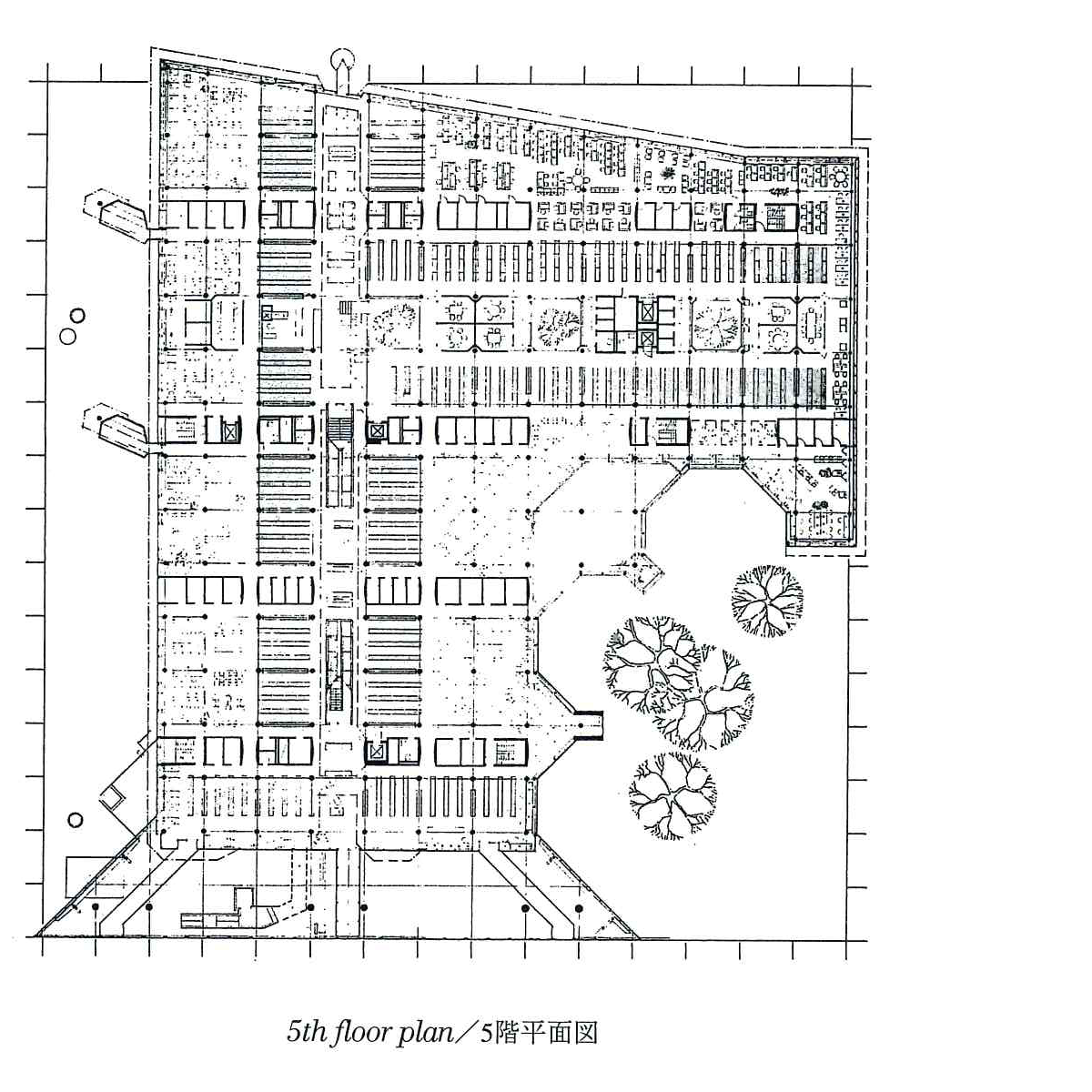 The library building represents a more modernist approach, the mass of the building placed to form a balance with the buildings on the other side of the campus, thereby creating a park vista. At the same time the library building deliberately collides with the existing sixties slab blocks and creates a more human scale as it respects the oak trees to the east and the vernacular buildings to the west. The curved roof form of the entrance lobby is an unexpected juxtaposition that gives a relaxed expression. There is a central light well into the deep plan building while perimeter glazing is angled to reduce the effect of low seasonal sun angle. This feature, together with the raised external seating shelters, gives the individual an opportunity to identify with the institutional building.
