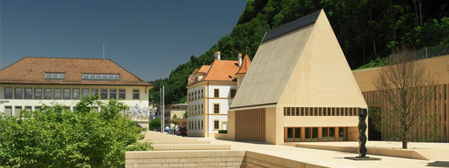 A spacious rooftop patio concludes this by providing framed views over the city, the forum, the river, the massifs and up to the castle. Here its seclusion will serve for inhabiting a growing sculpture collection as well as for summer banqueting receptions for Liechtenstein’s international guests of state.