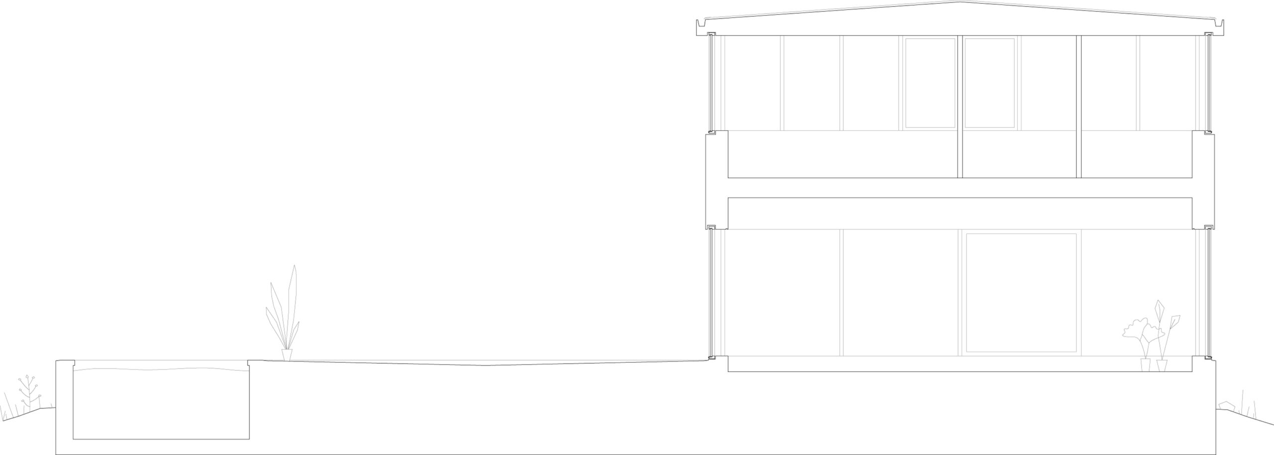 A concrete plinth was cast directly to the bedrock, following the topography of the site, to contain a sequence of spaces – the summer house, a open terrace of equal size, and a pool. A structural
