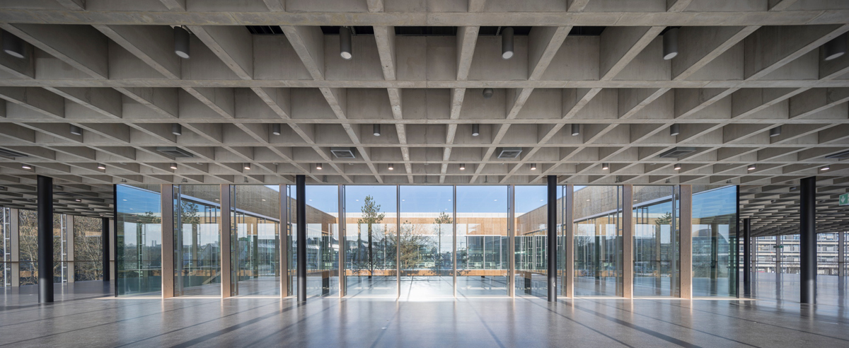 Neue Mensa como el nuevo corazón del campus. Como un cuerpo ligero, un recipiente envuelto por un filtro, que absorbe y libera humanos y materia en una interacción.
