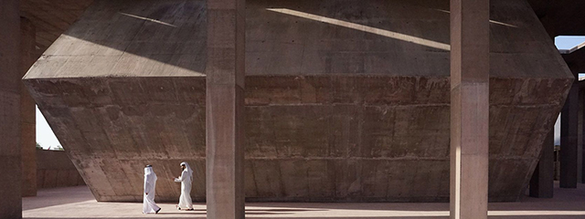 A large space is created in which a forest of columns and wind towers hold a horizontal plate 10 meters above ground. A roof, understood as an archaic gesture, donates vital shadows for the people of Muharraq in this very hot climate and produces a new and unique situation through its different scale. Slightly set back in the shadow is an enigmatic house in which the museum of the UNESCO World Cultural Heritage is located. As a totality the building creates a universe in itself that is the entrance for the Pearling Path and the city beyond.