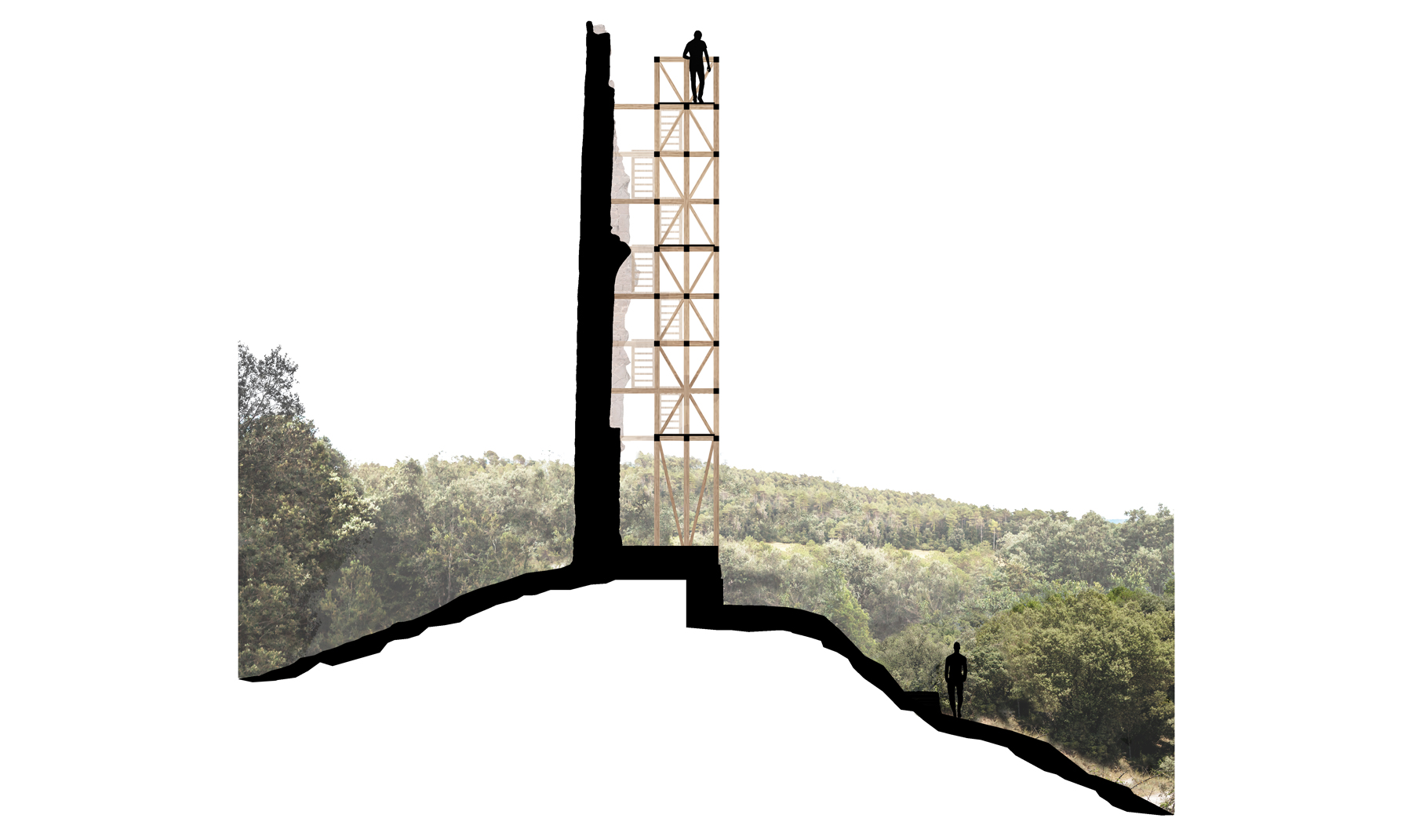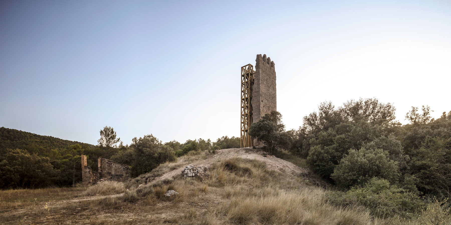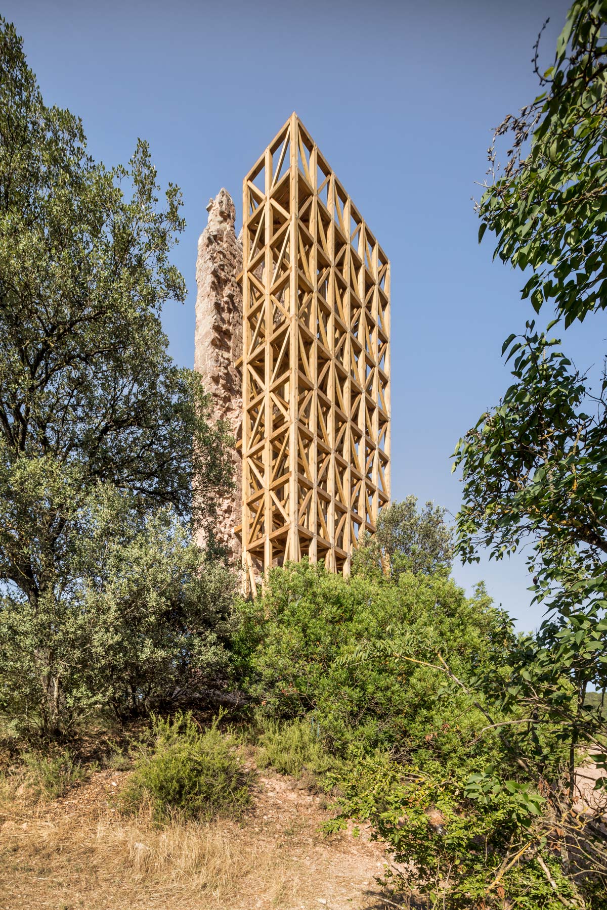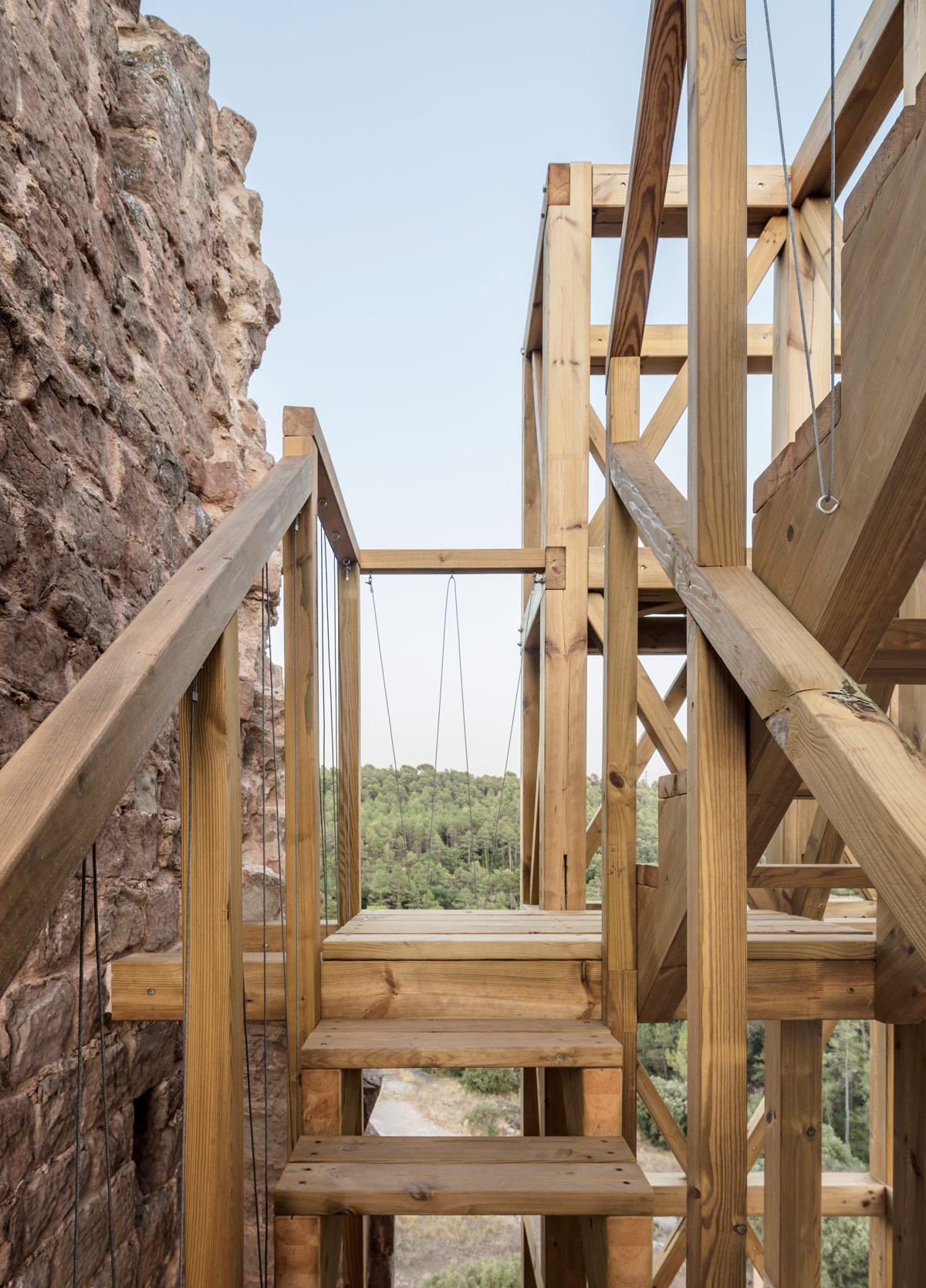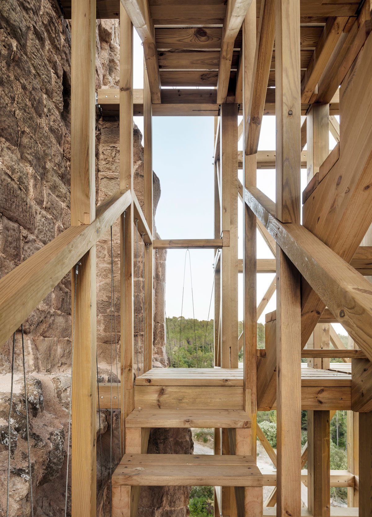 Una intervenció tant potent com simple, amb una qüestió interessant: la pedra inerta, és el patrimoni a mantenir i la fusta viva, la nova intervenció.