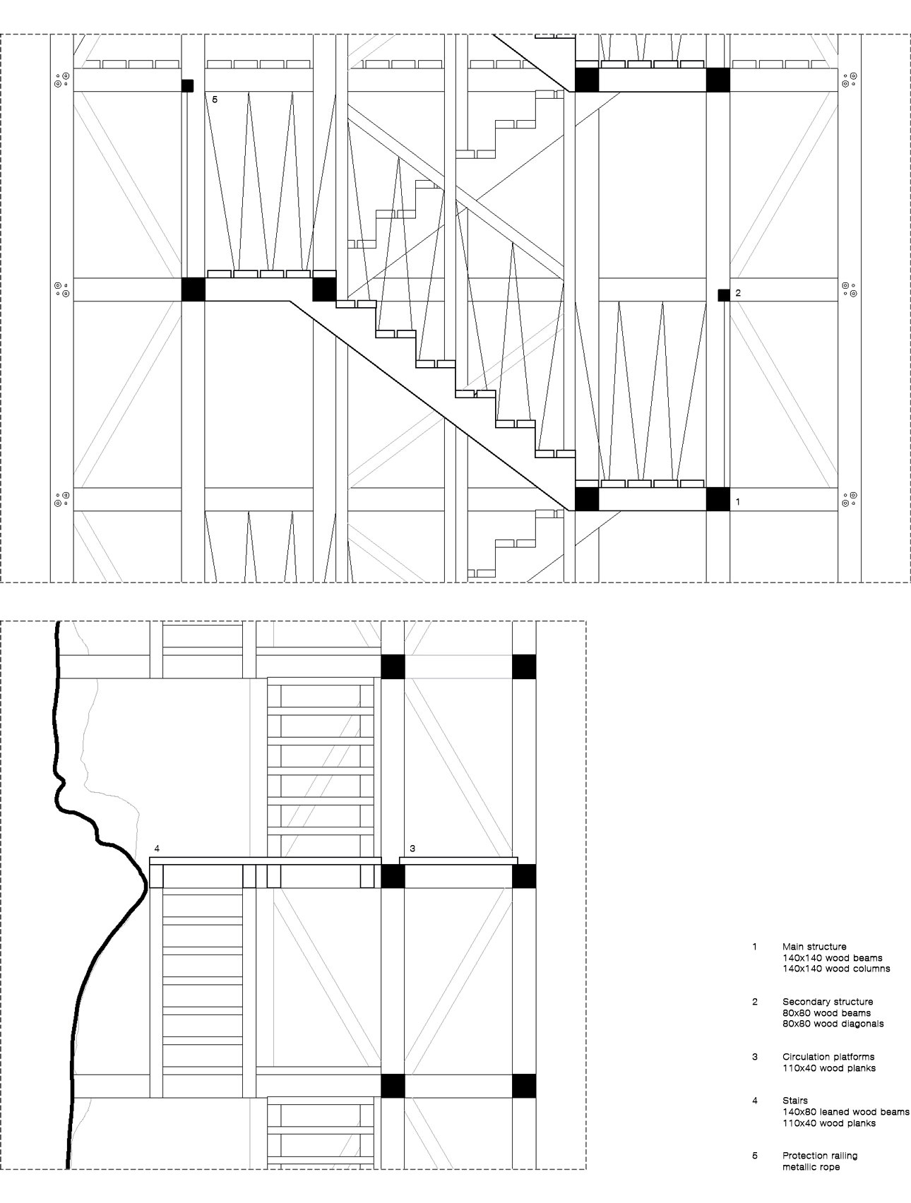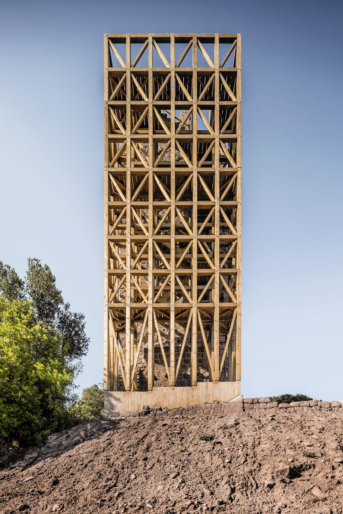 form of a timber structure comprising 18 sections of 14-cm square that follow the original