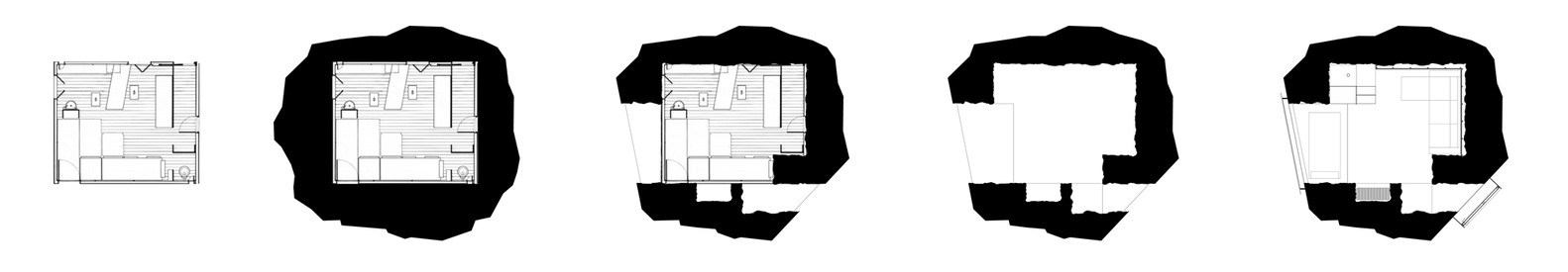 Para dotar al espacio de todo el confort y habitabilidad necesaria en la arquitectura, tomamos como motivo el “cabanon” de Le Corbusier, recreando su programa y dimensiones. Es el “cabanon de Beton” la referencia que hace de la trufa un espacio habitable y disfrutable en la naturaleza, que nos ha inspirado y sometido. Y la lección que recibimos es la incertidumbre que nos guió, en el deseo de construir con nuestras propias manos, un fragmento de naturaleza, un espacio contemplativo, un pequeño poema.