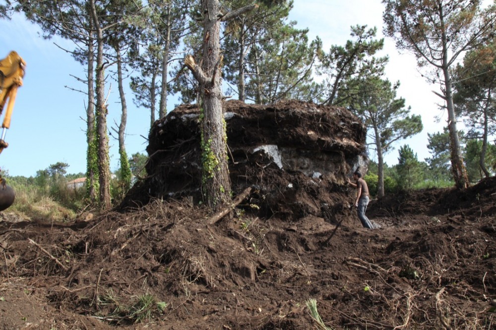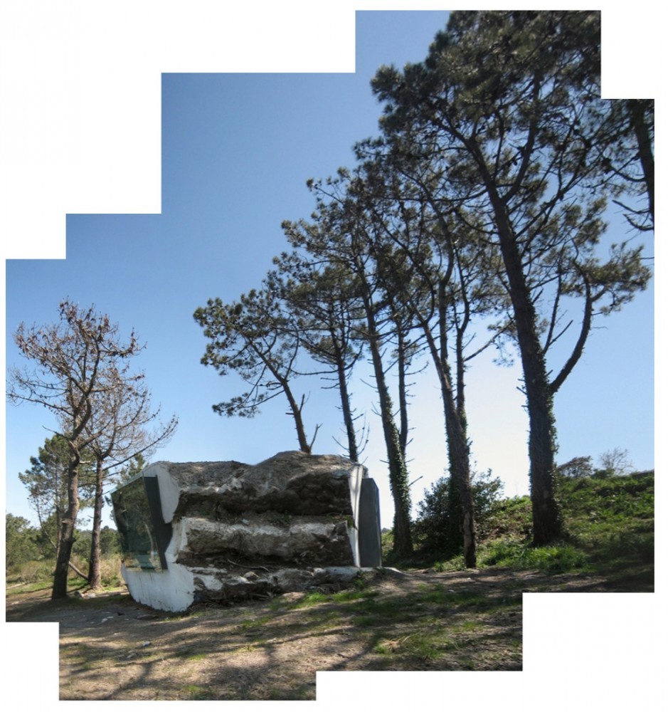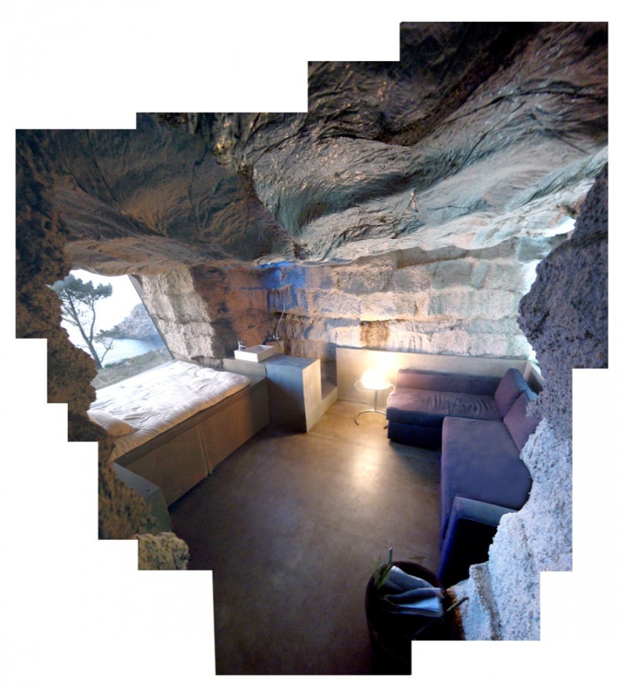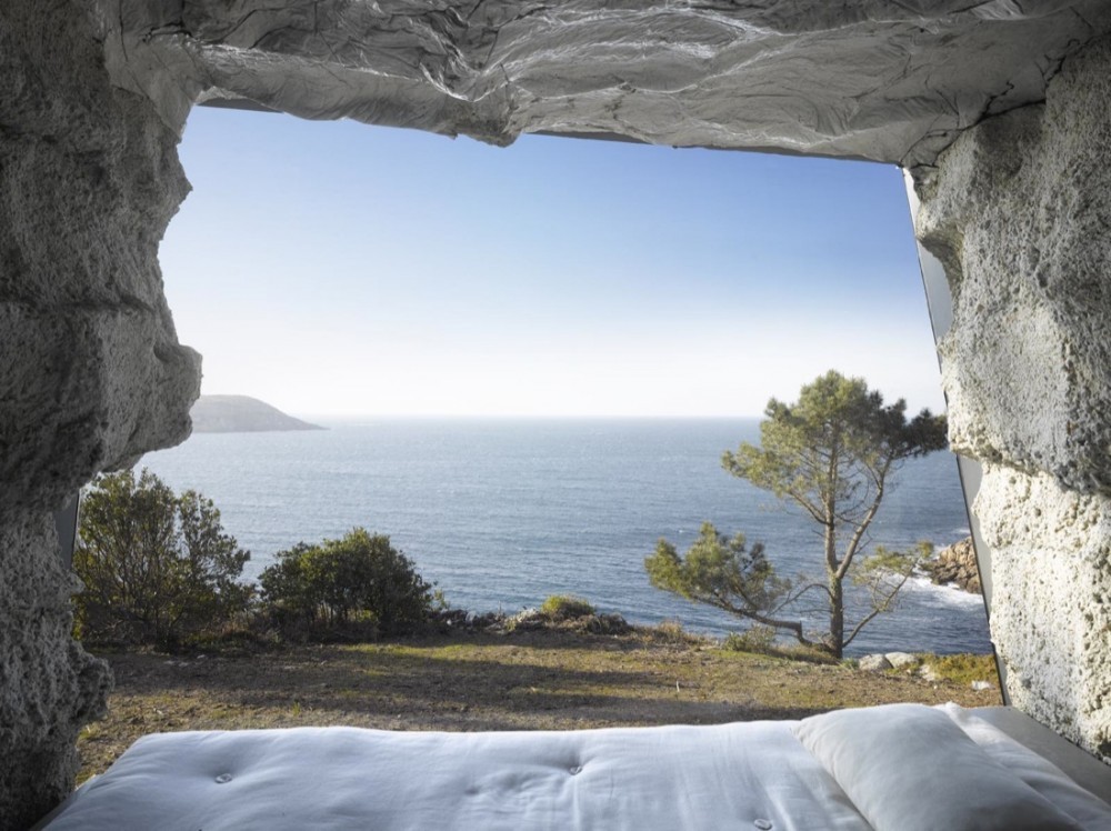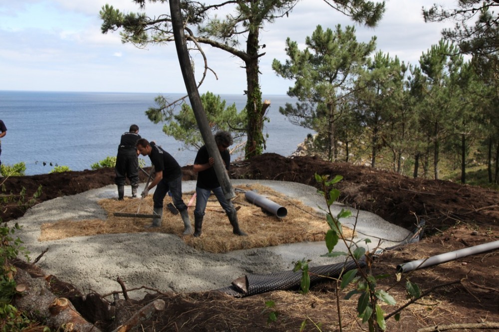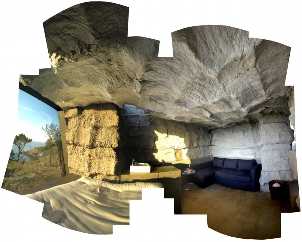 La arquitectura nos sorprendió. Su ambigüedad entre lo natural y lo construido, la compleja materialidad que un mismo elemento constructivo, el hormigón en masa sin refuerzo armado, podía dotar al pequeño espacio arquitectónico de distintas escalas. Desde la textura informe de su exterior, hasta la violenta incisión de un corte que revela su vocación arquitectónica, llegando a la expresión fluida de la solidificación interior del hormigón. Esta materialidad espesa, que dota a las paredes verticales de una escala almohadillada proviene de la dimensión de los fardos, y contrasta con la liquidez continua del techo que evoca al mar, petrificado en el dintel del marco espacial que mira de modo sublime al océano Atlántico, resaltando el horizonte como única línea tensa de todo el espacio interior.