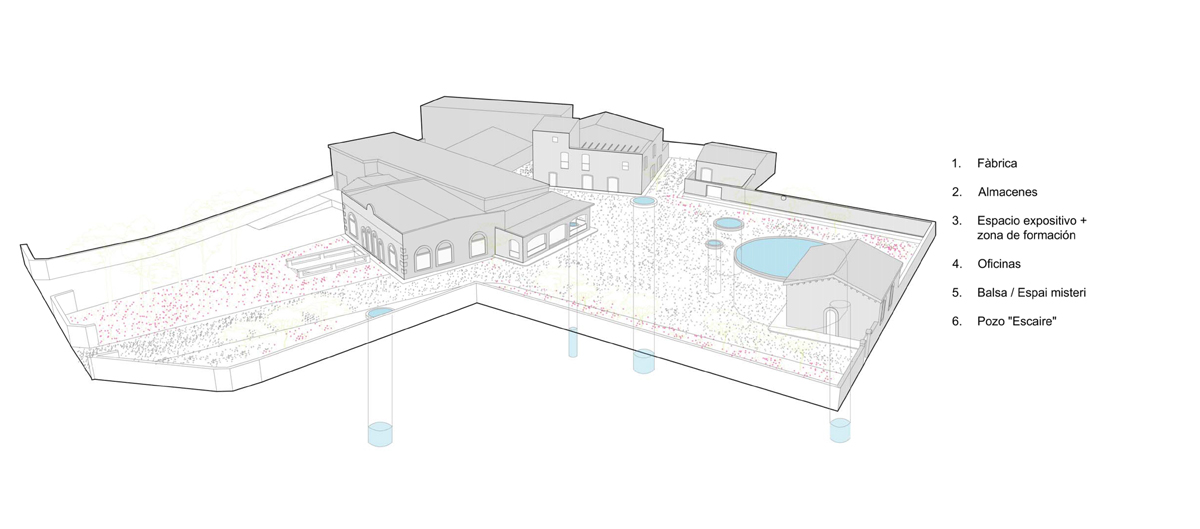 El encargo preveía la puesta a punto de las instalaciones de la fábrica, los pozos, y los almacenes, así como la adición de nuevos usos: aulas de formación, espacios expositivos y oficinas.