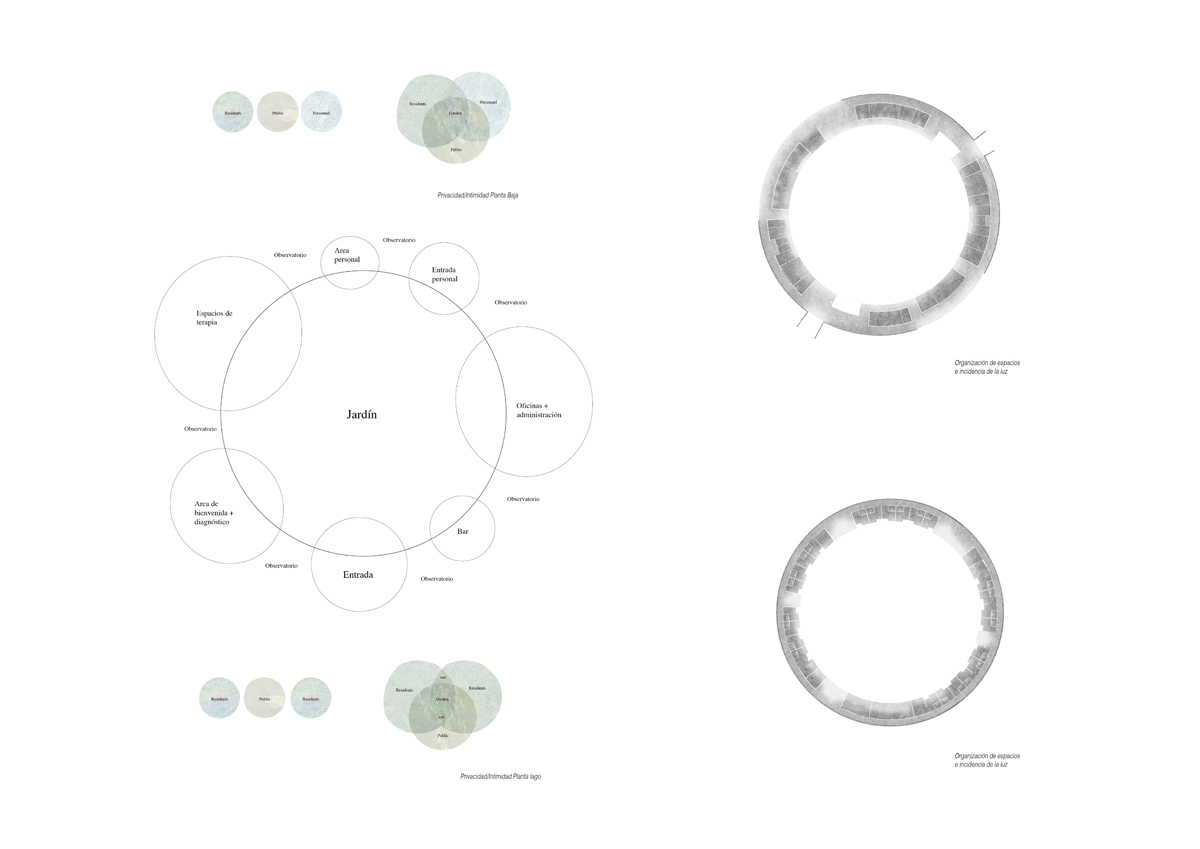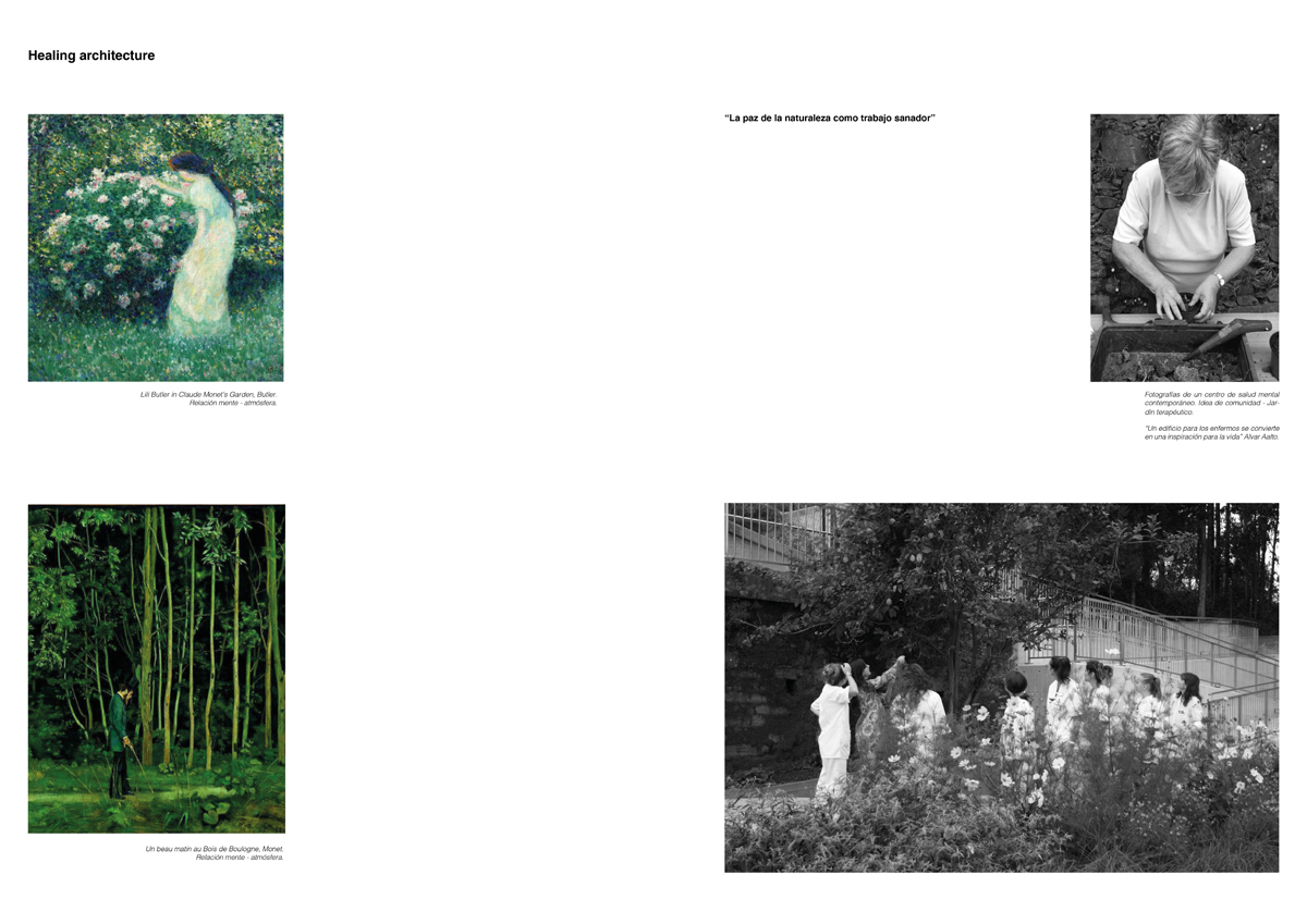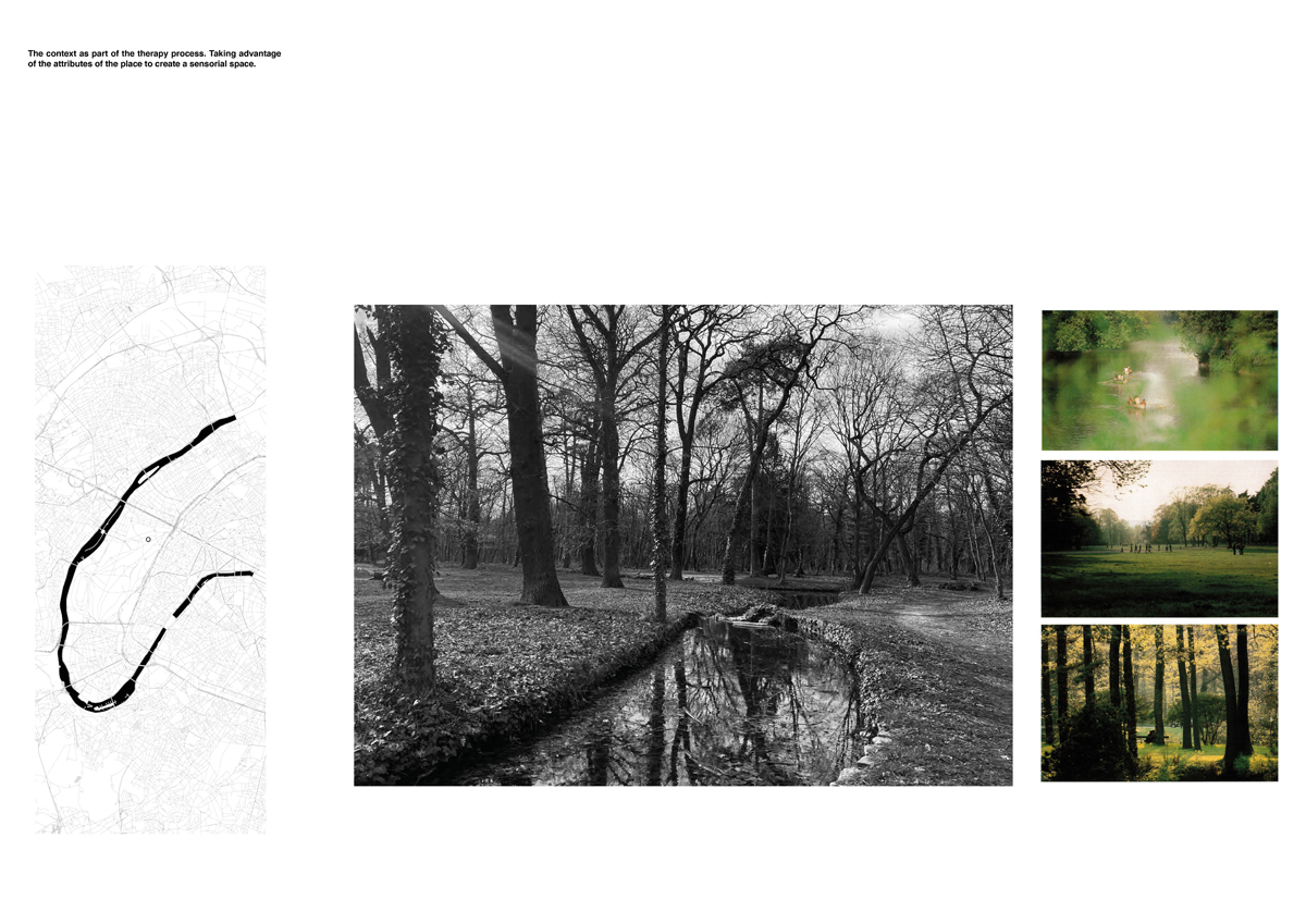 The proposal is a day and night centre, which attends and protects all ages patients’ mental health, and which is defined as an alternative to a hospitalized institution. The research carried out for the design therefore focuses on the interest and relevance of using body and mind therapies, both as a form of prevention of the episodes suffered by contemporary society and the individual, and as part of any particular treatment.