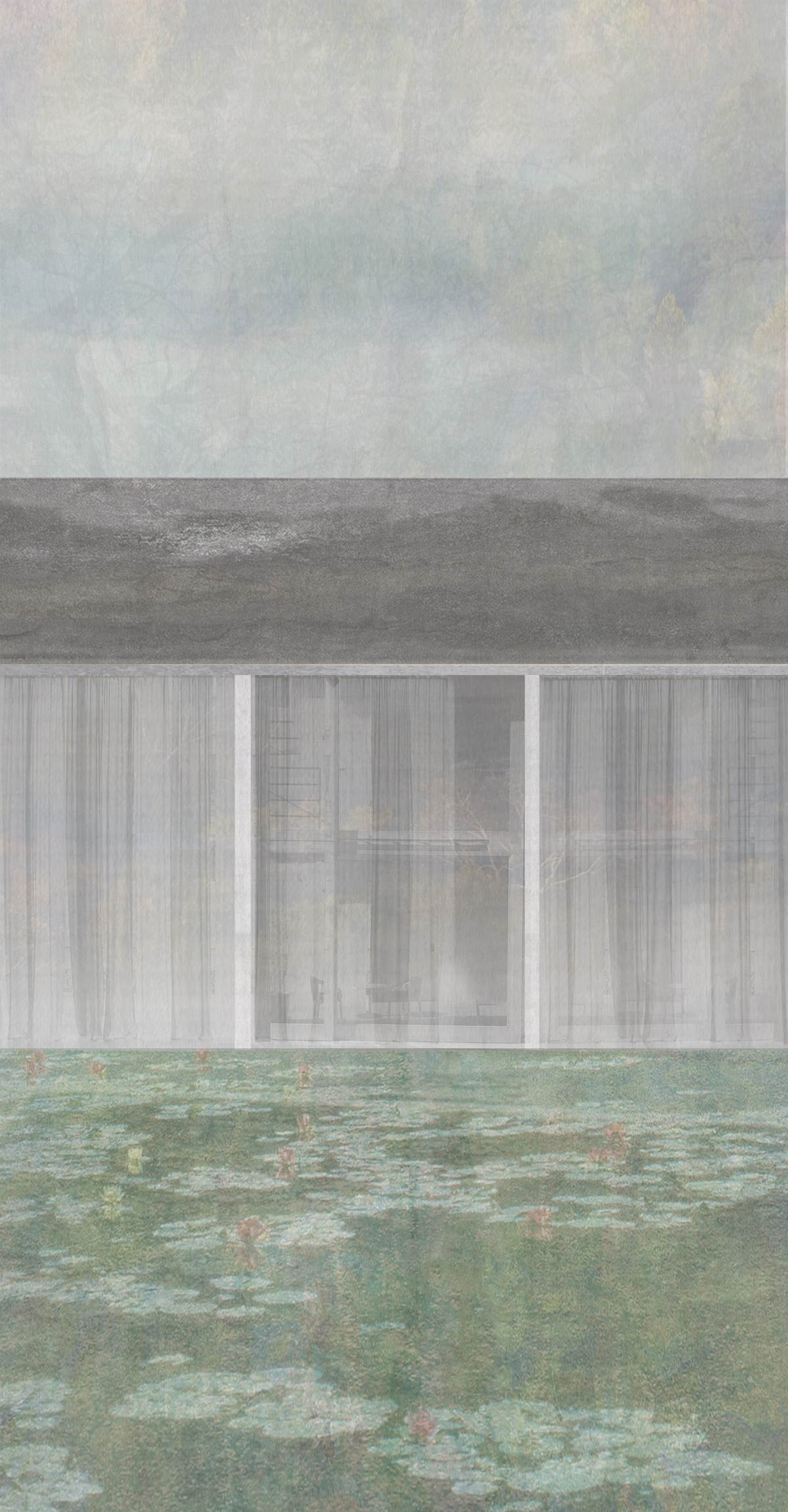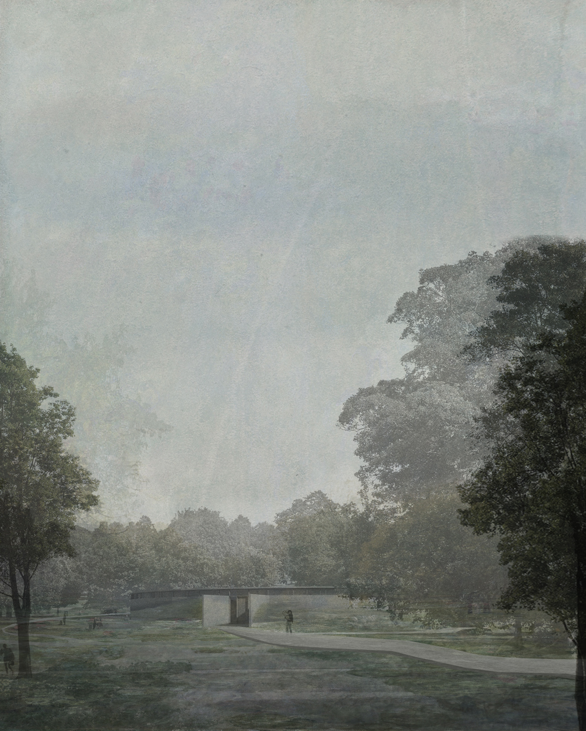 - Exterior view: Neutralize the elevation facing the park. Let the landscape envelop the architecture and abstraction characterize the exterior perimeter.