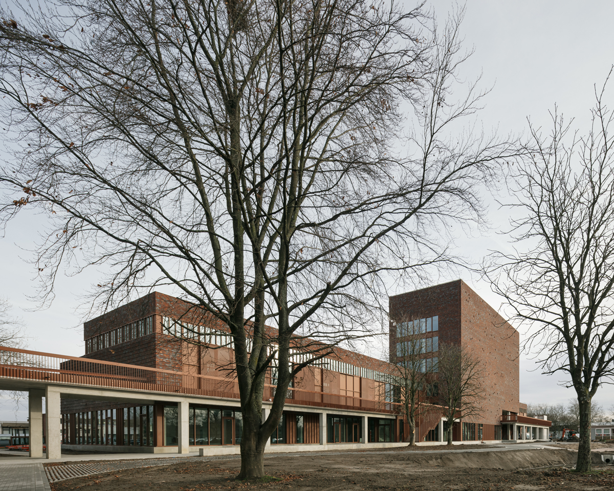 The new art school on the Gouverneur Verwilghensingel in Hasselt (Belgium) does not present itself as one would expect from a typical institute on a city circular road. A fairly closed façade on the road side exchanges the characteristic glass case architecture for room for mystery. After all, the arts should not be displayed as vulgar merchandise. With a deliberate contrariness, the art school prefers to address itself to the challenging environment of the urban campus rather than to the domain of the passing cars.
