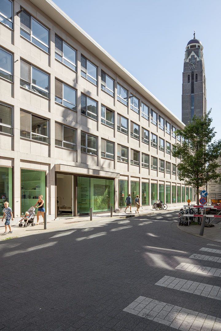 In 2016 Atelier Kempe Thill won the European competition for the transformation and extension of the new arts campus of the Karel de Grote Hogeschool in Antwerp. The new university building in the Van Schoonbekestraat provides space for 600 students and staff for three academic masters courses in visual arts (graphic design, jewelry design – goldsmith, and autonomous arts) and a professional bachelor education in photography. Since the nineties, contemporary architecture is being confronted more and more with a contradictory phenomenon that appears on all scales and working fields. Architects are asked on one hand to produce very neutral and anonymous buildings that can be changed easily, are able to react on changing economic situations and are adaptable to different programs. On the other hand at the same time, they are asked to create very specific buildings that are easy to identify, possessing pleasant form with unique spaces and can be enjoyed by the users. Atelier Kempe Thill takes this modern paradox very consciously as the point of departure of the work. The office is by this able to create structures that are neutral and economic as well as being enjoyable and innovative. By doing so, architecture is free to express the hidden vitality of our time.