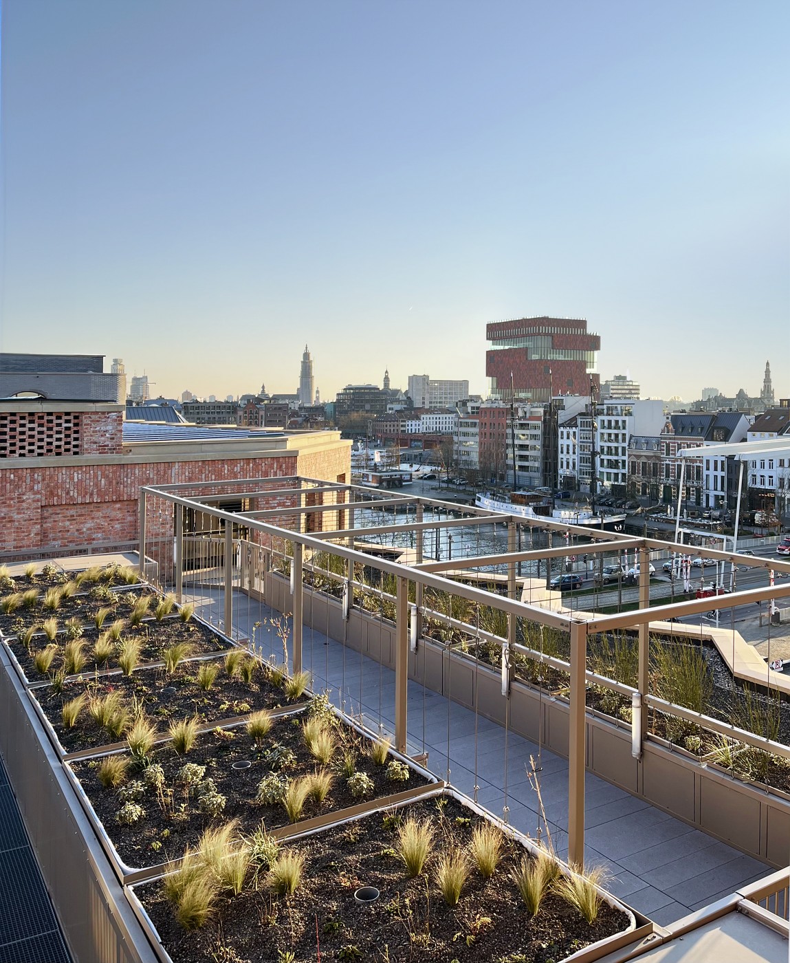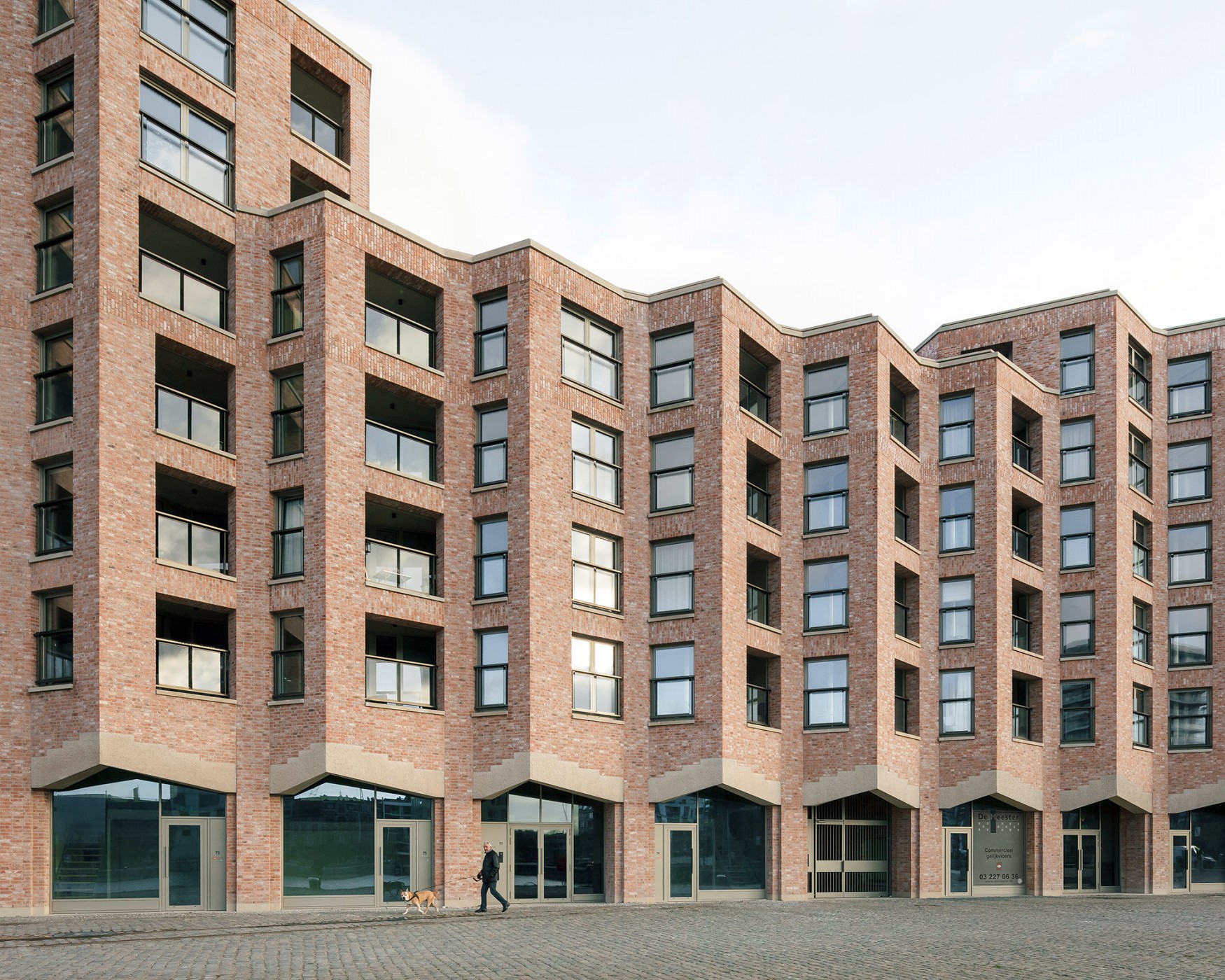 The site is part of the Cadix regeneration area in the former dockland district of Antwerp. A large-scale residential building of 80 apartments is part of a coherent, but varied and diverse city block of approximately 25,000m2 in total designed in collaboration with Bovenbouw and Bulk Architecten.