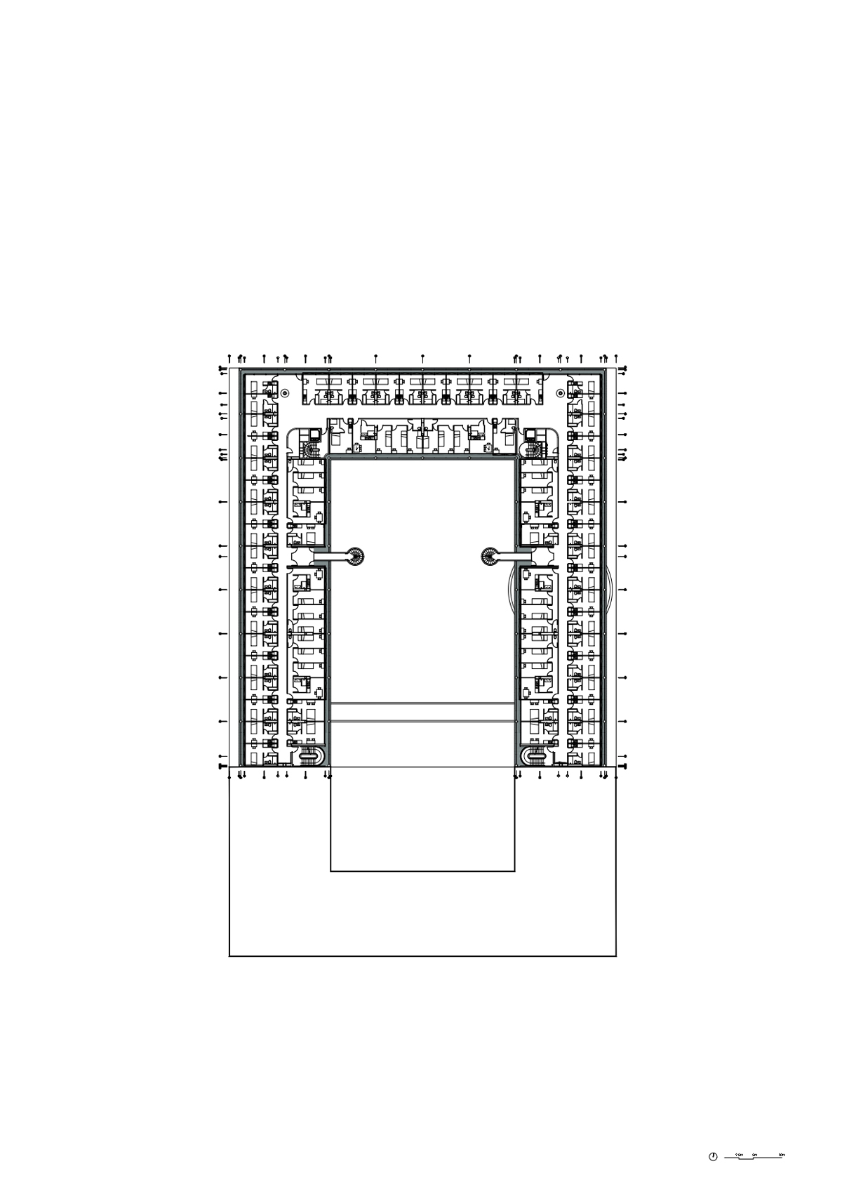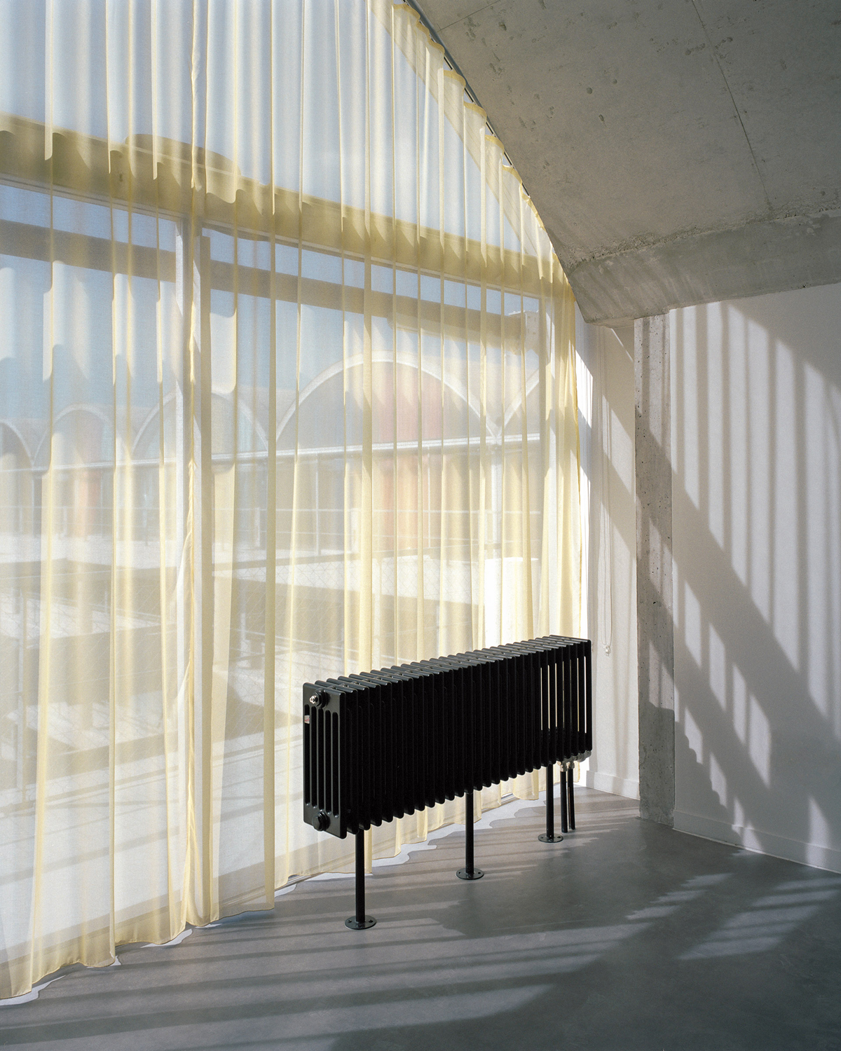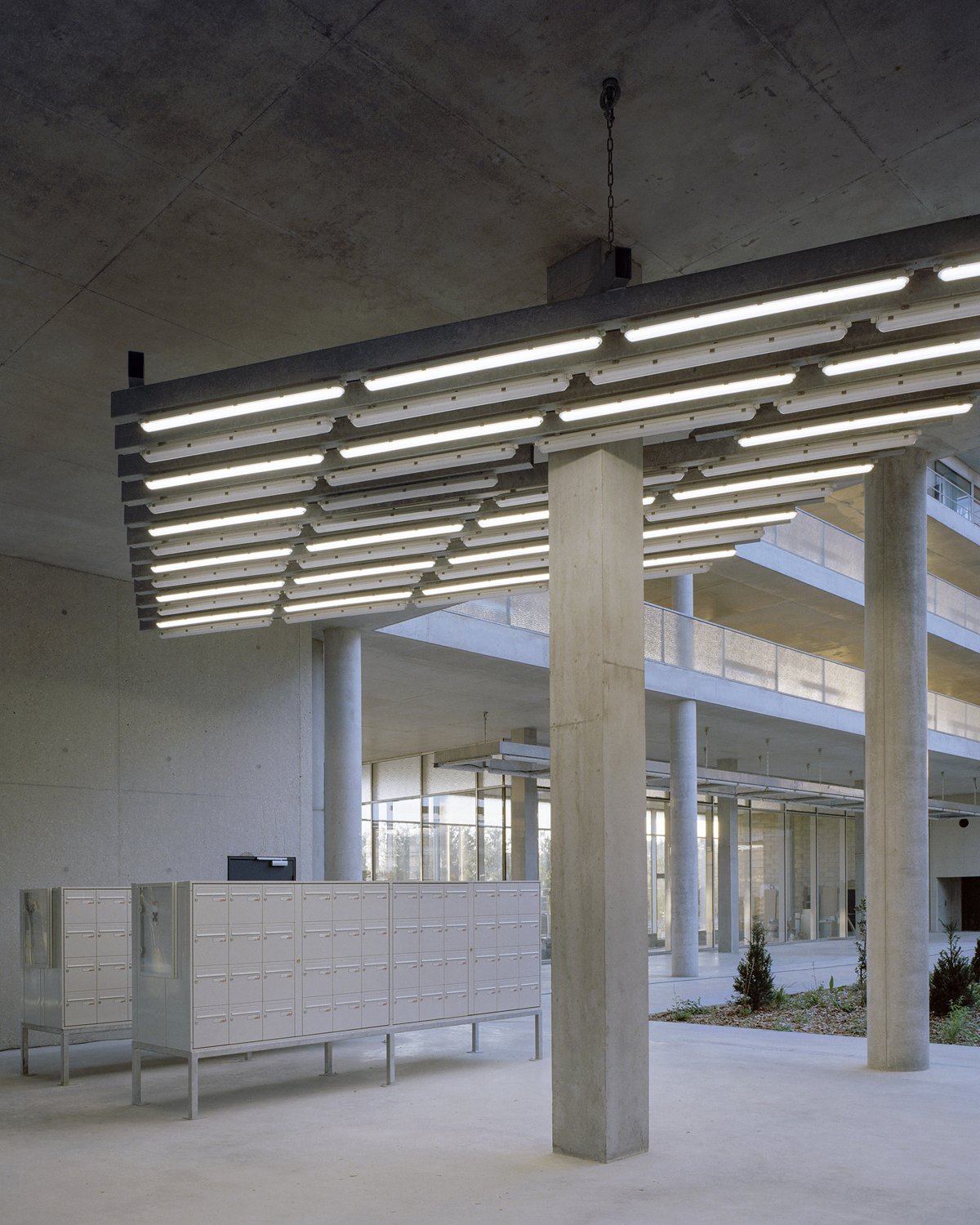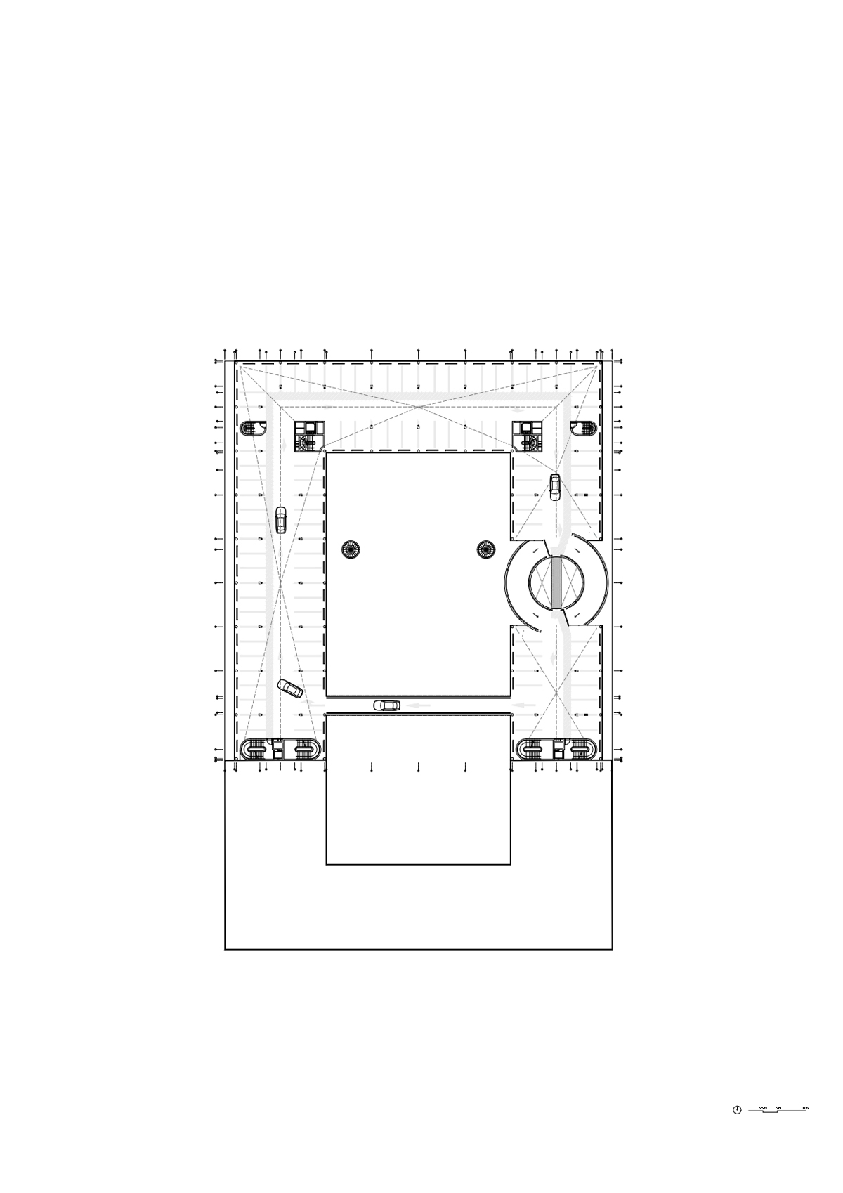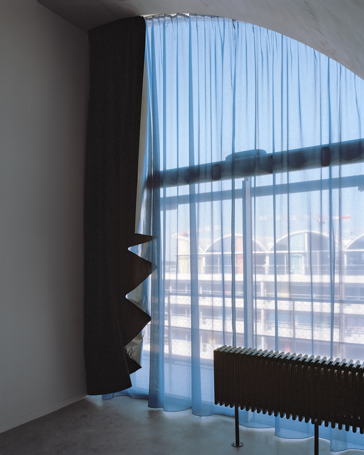 Thought out on the scale of the car as well as that of the individual, the building seeks a path between a strictly functionalist approach and that constrained by domestic norms. Domesticity is however very present in the scansion of the roof vaults. The attic even appears as a rereading of the typology of strip houses, laid out on the terrace. The regularity of the architectural vocabulary, even its monumentality, does not, however, stem from formal a priori, but rather asserts itself as a strict and sober resolution of the complex requirements of the program. The sharpness of these structural responses also allows the building to express a plasticity, almost brutalist, where the materials (concrete structure, glass panels removable from the dwellings) are returned to a constructive necessity and a plastic expressiveness as pure as each other.