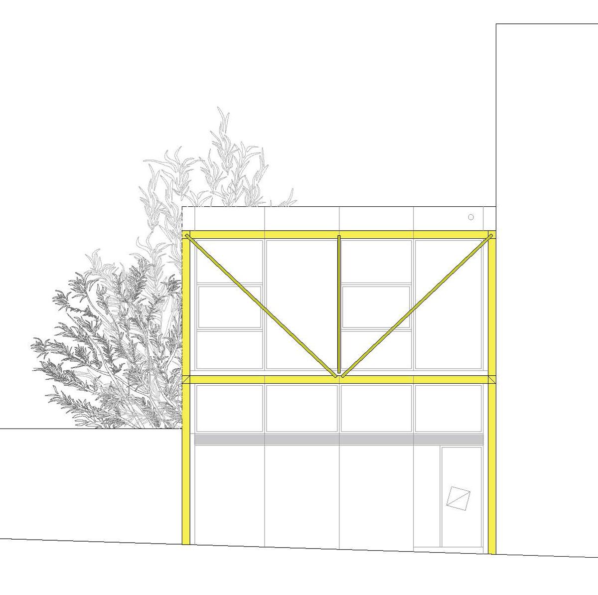 The house aims to frame and close off a piece of air at this area in Barcelona and emphasizes its main construction elements. A heavy plinth is built, in relation to the garden and the earth, on which rests a light metal framework structure open to the landscape and the Sun.