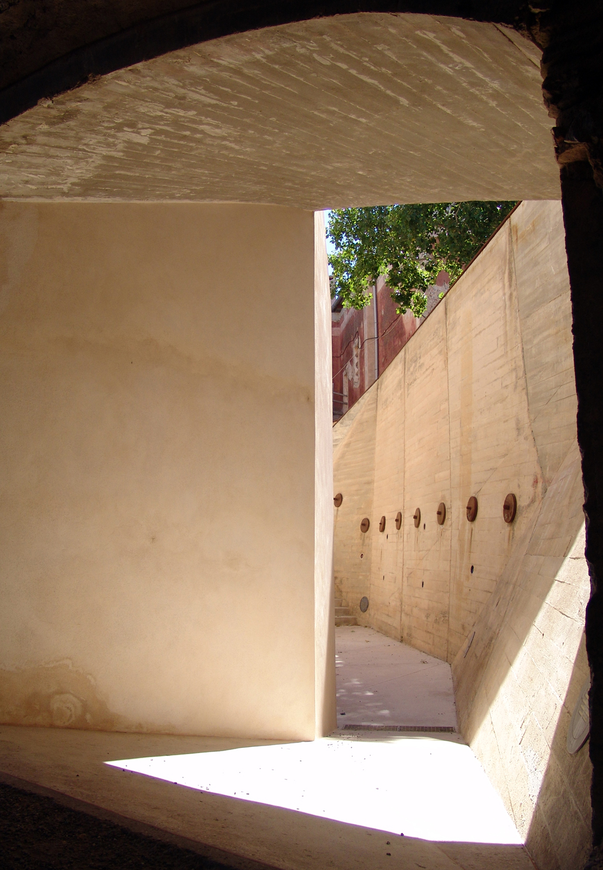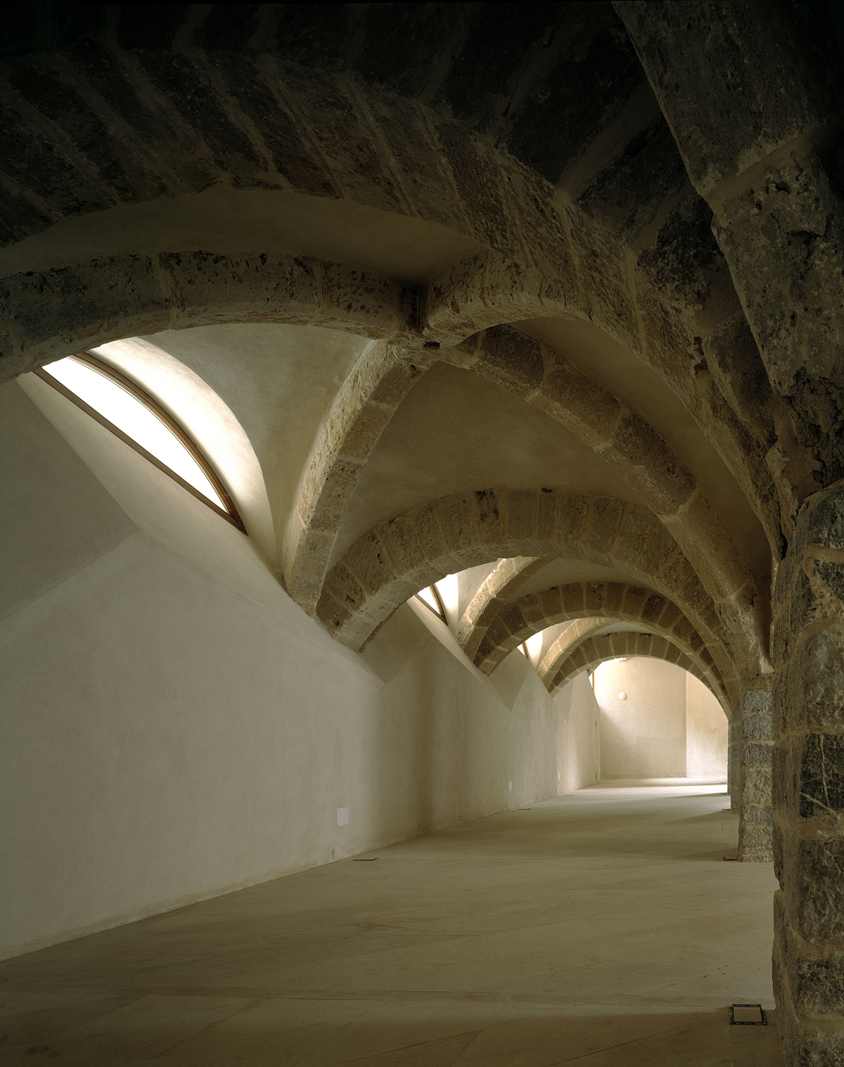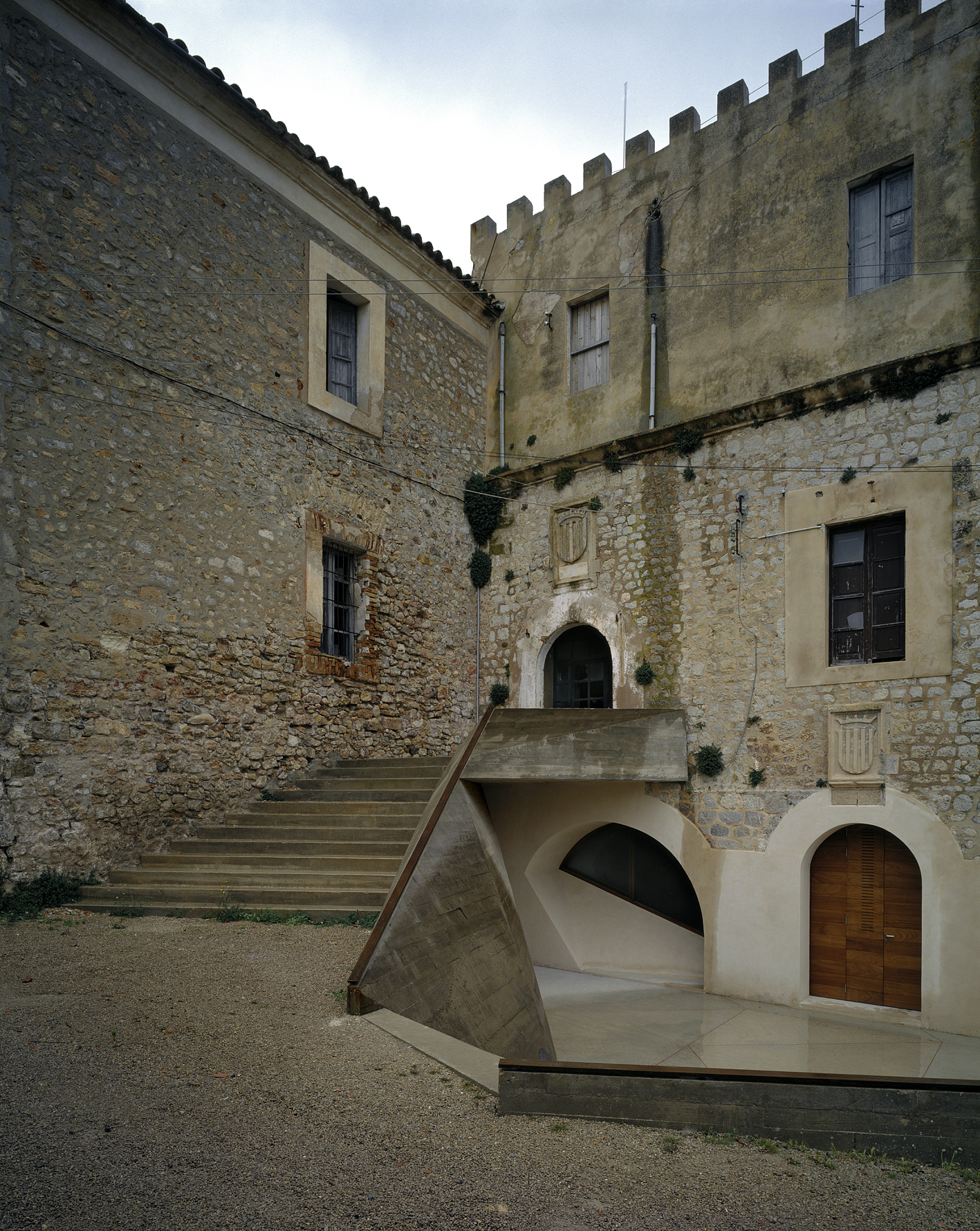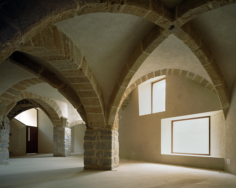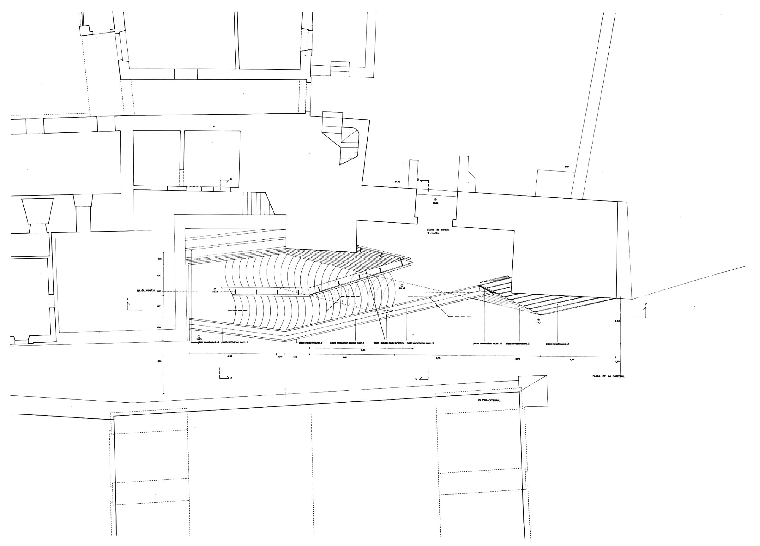 Para sanear la sala de la Antigua Casa de la Ciudad, la mejor dependencia del castillo, se han excavado patios tallados con muros de hormigón para permitir que la luz entre por los lunetos, que son la proyección geométrica hacia el exterior de los arcos interiores. La sala de la planta superior se restaura posteriormente, se limpia y mejora su accesibilidad.