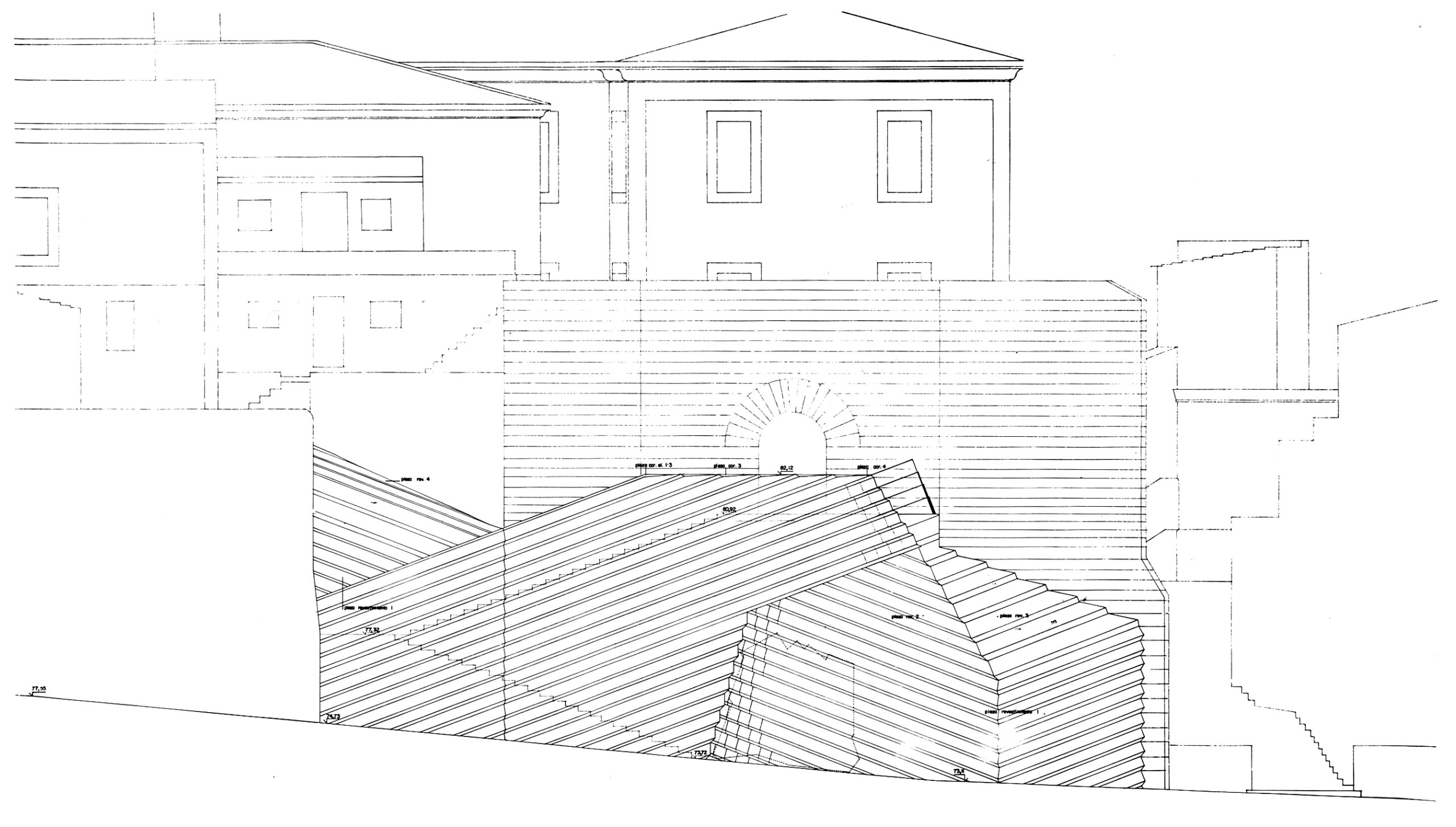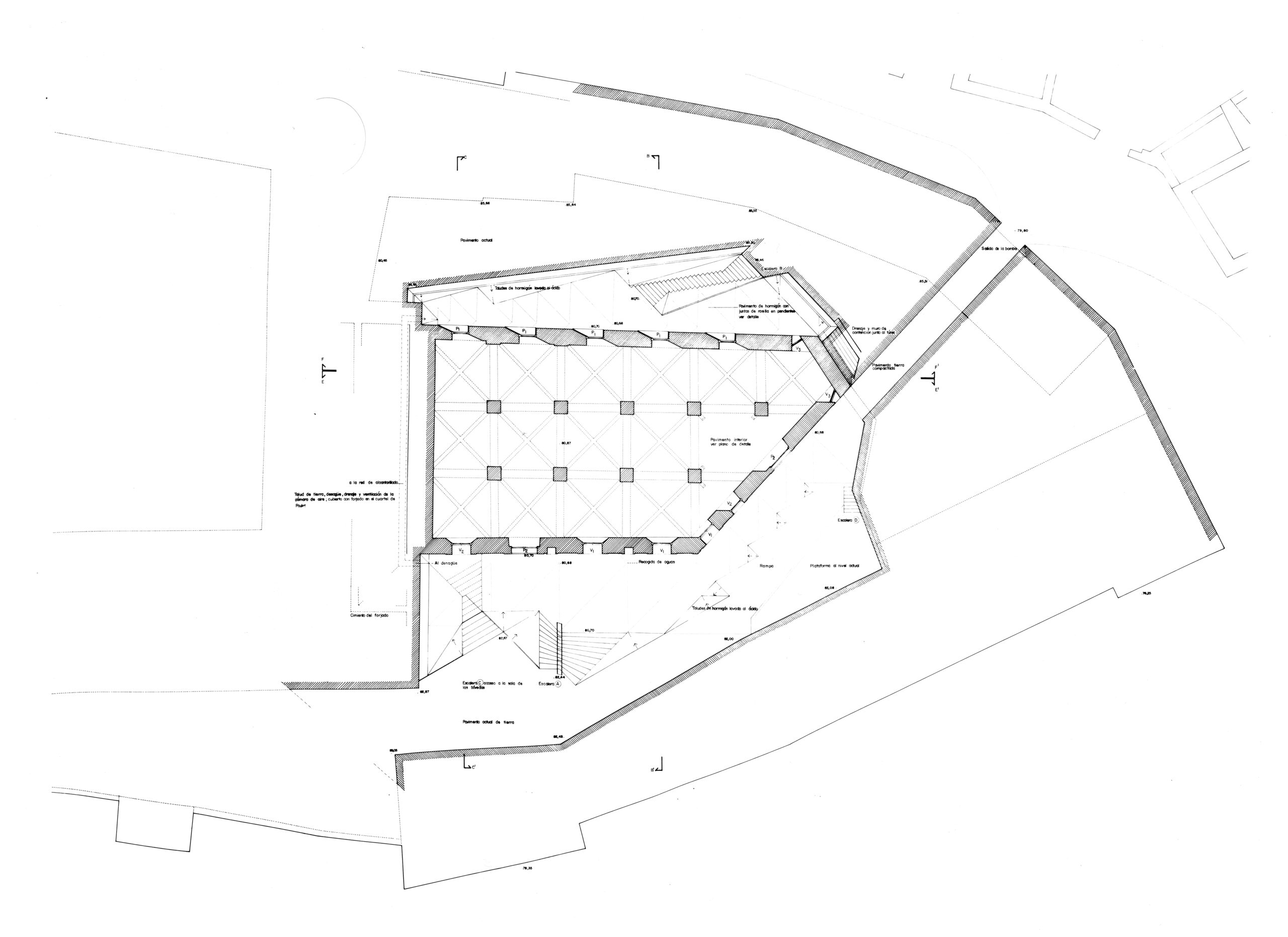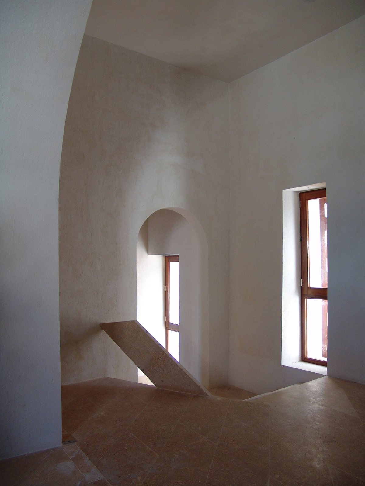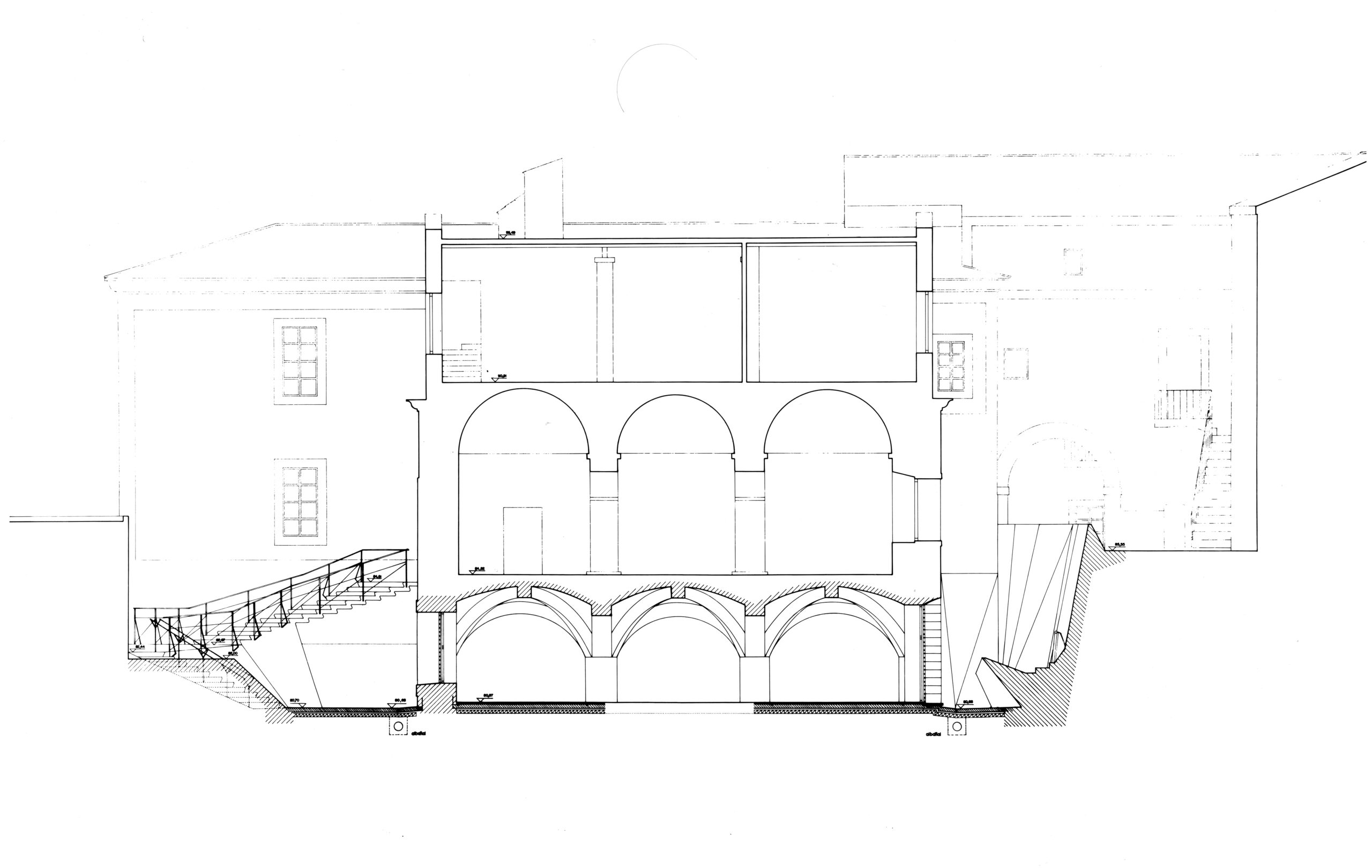 Para sanear la sala de la Antigua Casa de la Ciudad, la mejor dependencia del castillo, se han excavado patios tallados con muros de hormigón para permitir que la luz entre por los lunetos, que son la proyección geométrica hacia el exterior de los arcos interiores. La sala de la planta superior se restaura posteriormente, se limpia y mejora su accesibilidad.