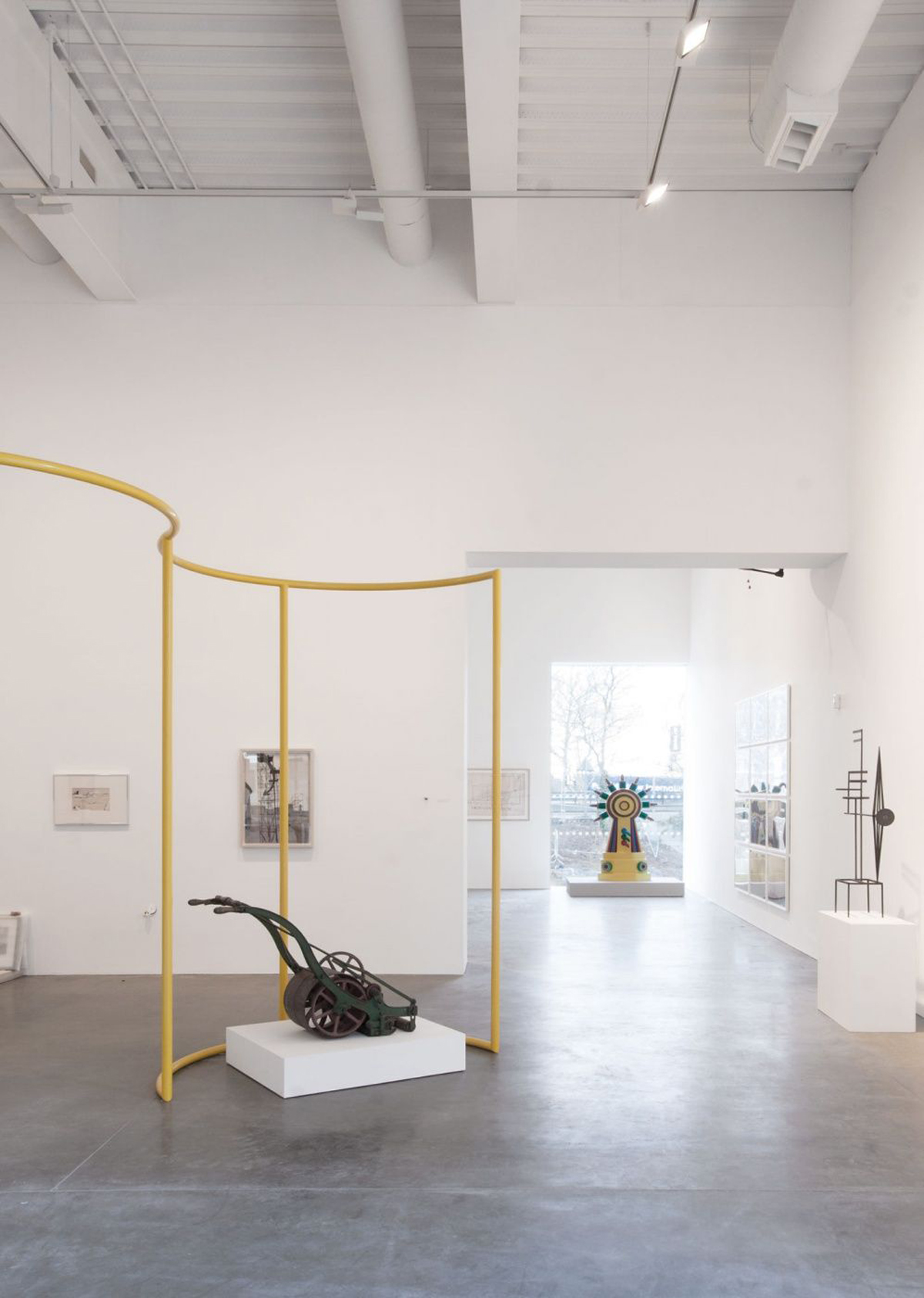 A new wing consisting of a simple rectangular form wrapped in corrugated stainless steel recalls the rigorous grid that underpins the city, once a playground for British modernists and the early pioneers of High-Tech. Its polished facade shifts ambiguously between reflection and opacity, while a circular window frames views over the orbital landforms and belvedere of Campbell Park. The city grid is suggested the walls and the landscape in the window. The gridded rectangle houses an assembly of new gallery spaces and an education studio below an auditorium. The axial arrangement of galleries, with windows aligned on either end, recalls the layout of the city.