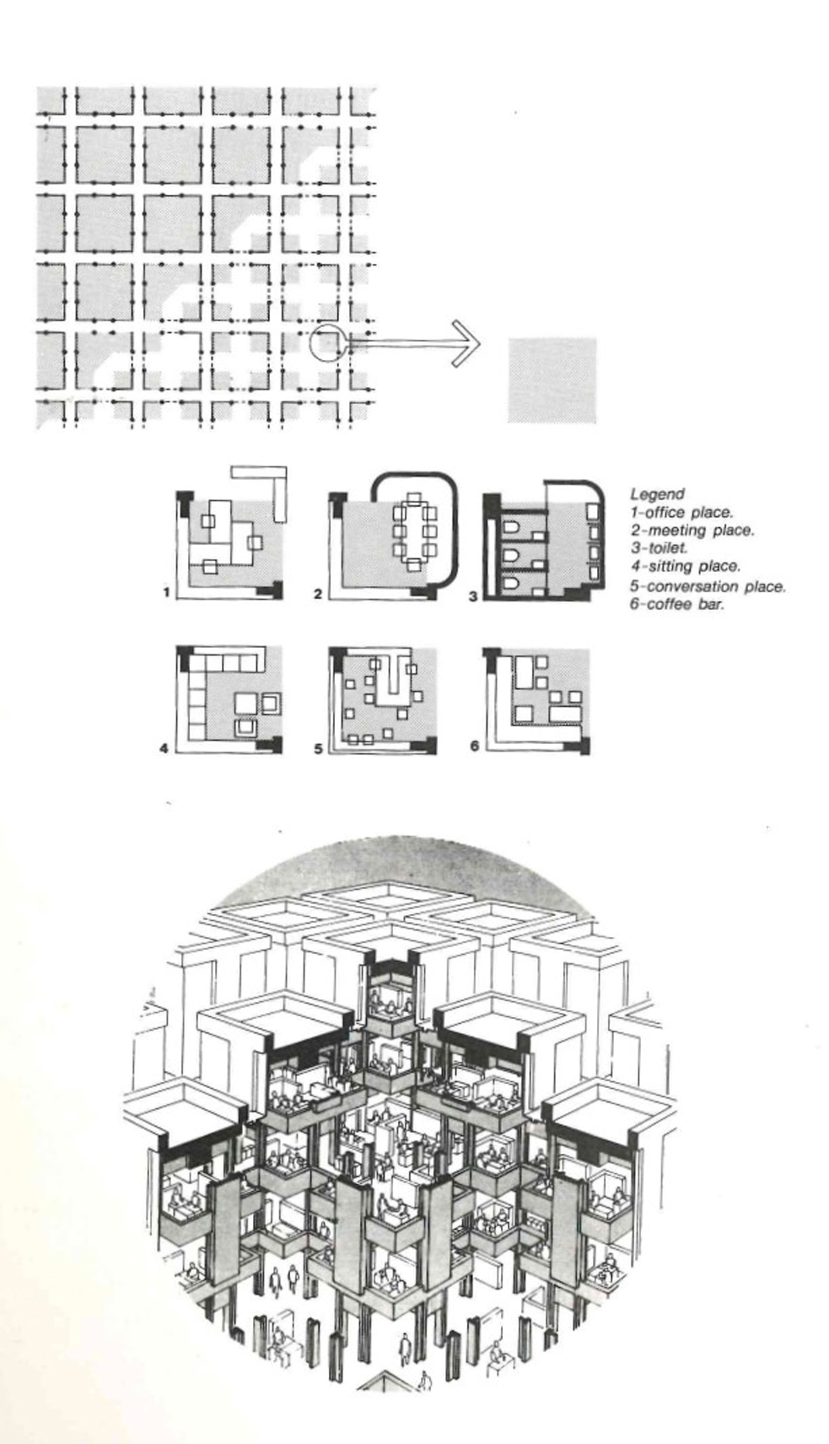 The “Central Beheer” building went into use in 1972. Since then there have been a few minor adaptations as well as several alterations and extentions of a more radical nature. The structure’s inherent changeability enable most of them to be incorporated without difficulty.