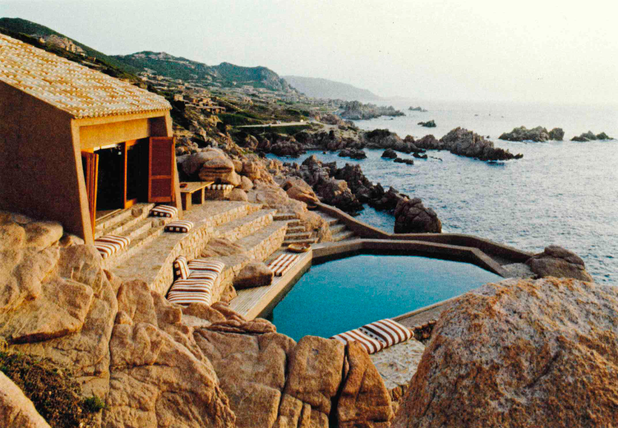I did not have to wait for Juan’s arrival from Argentina to feel certain that this was the house he wanted, and that’s the way it turned out. The construction clings to the slope and is almost wedged into it, so that arriving from higher up you see only its roof. The tortuous trench separating it from its rocky ground contains its entries and protects it from the summer heat. In the early days of the Costa Paradiso, there were very few architects about. And the only building contractor was a Gallurese from the region, though not from Trinità d’Agultu itself, where the site lay. When Mr T. asked us to employ small local firms and to distribute the contracts fairly among them, we did have doubts, because it was tedious to have to start all over again with the giving of instructions and advice. And also because we were afraid it might lead to friction and rivalry. These concerns proved unfounded, because the craftsmen of Trinità turned out to be both highly skilled and docile. One of them, Salvatore Nattivi, wrought miracles by constructing free forms in a masterly fashion, a feat that was all the more audacious for the precariousness of the site.