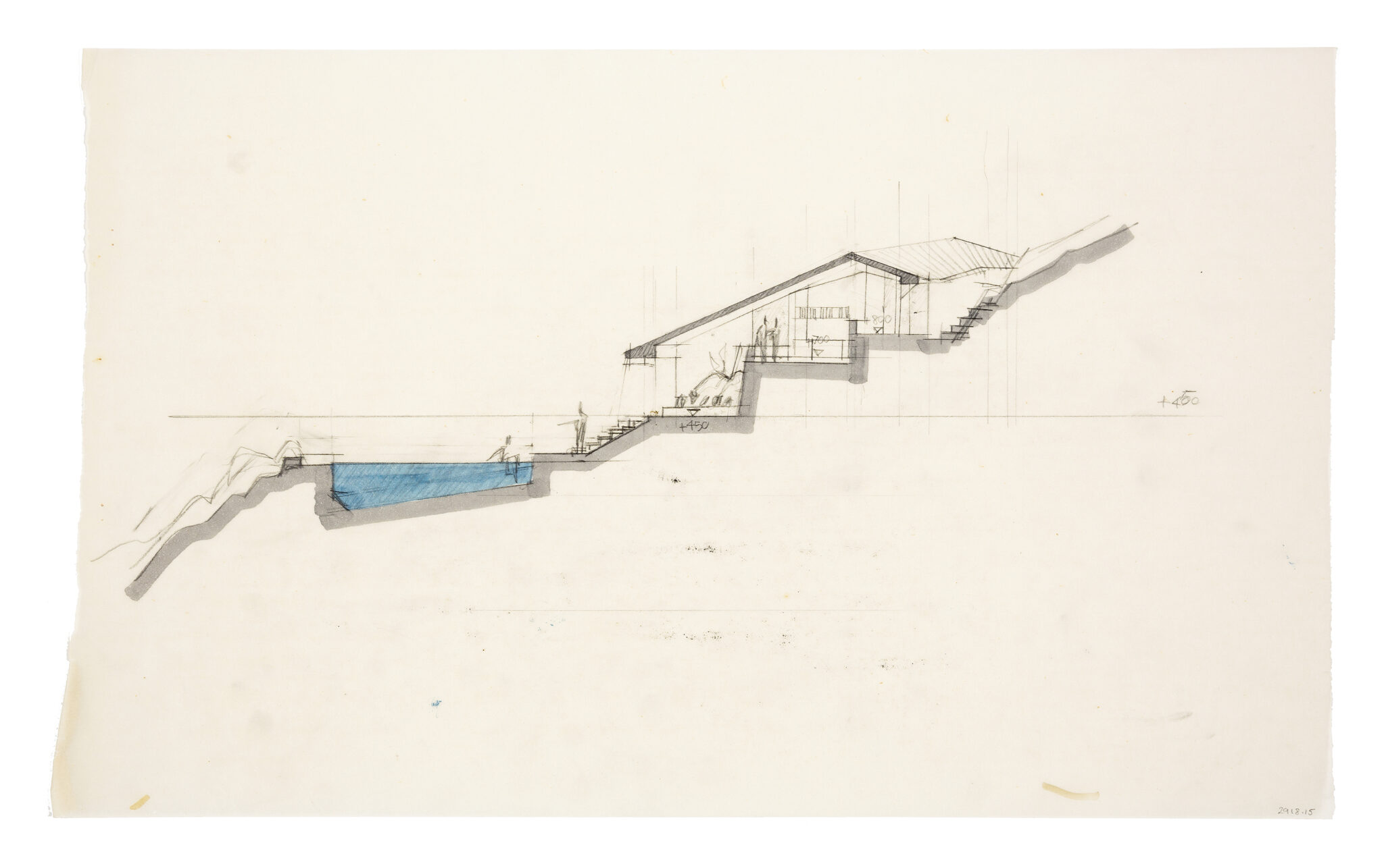 Alberto Ponis (1933), section, Casa Scalesciani, 1977. Pencil, blue and grey wash on tracing, 330 × 540 mm. DMC 2918.15.