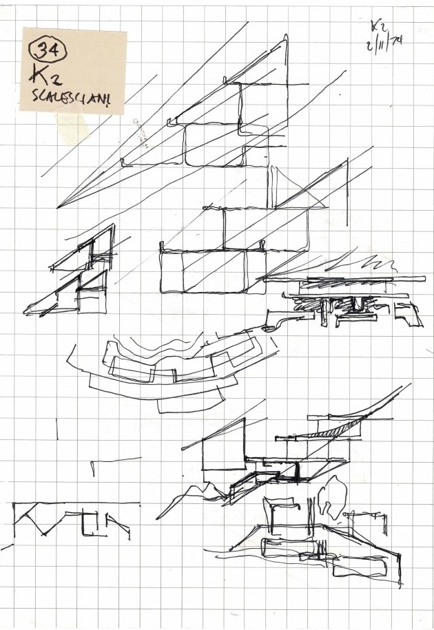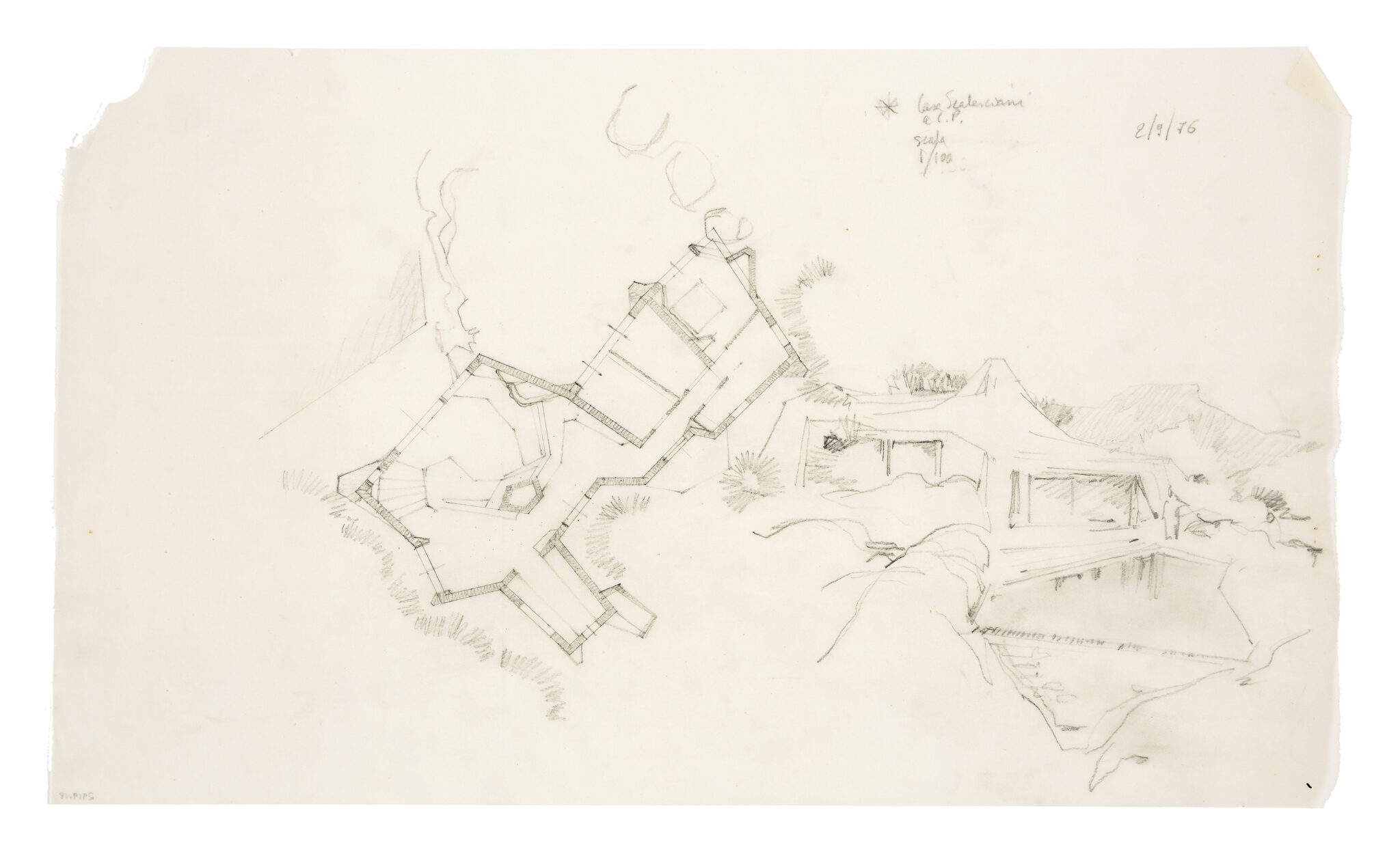 Alberto Ponis (1933), Casa Scalesciani, 1974. Pencil, pen and ink on squared paper, 296 x 210 mm. DMC 2918.29v.
