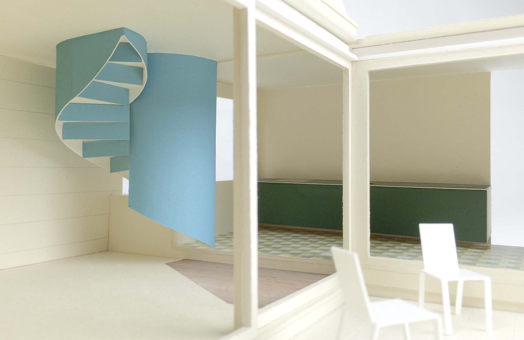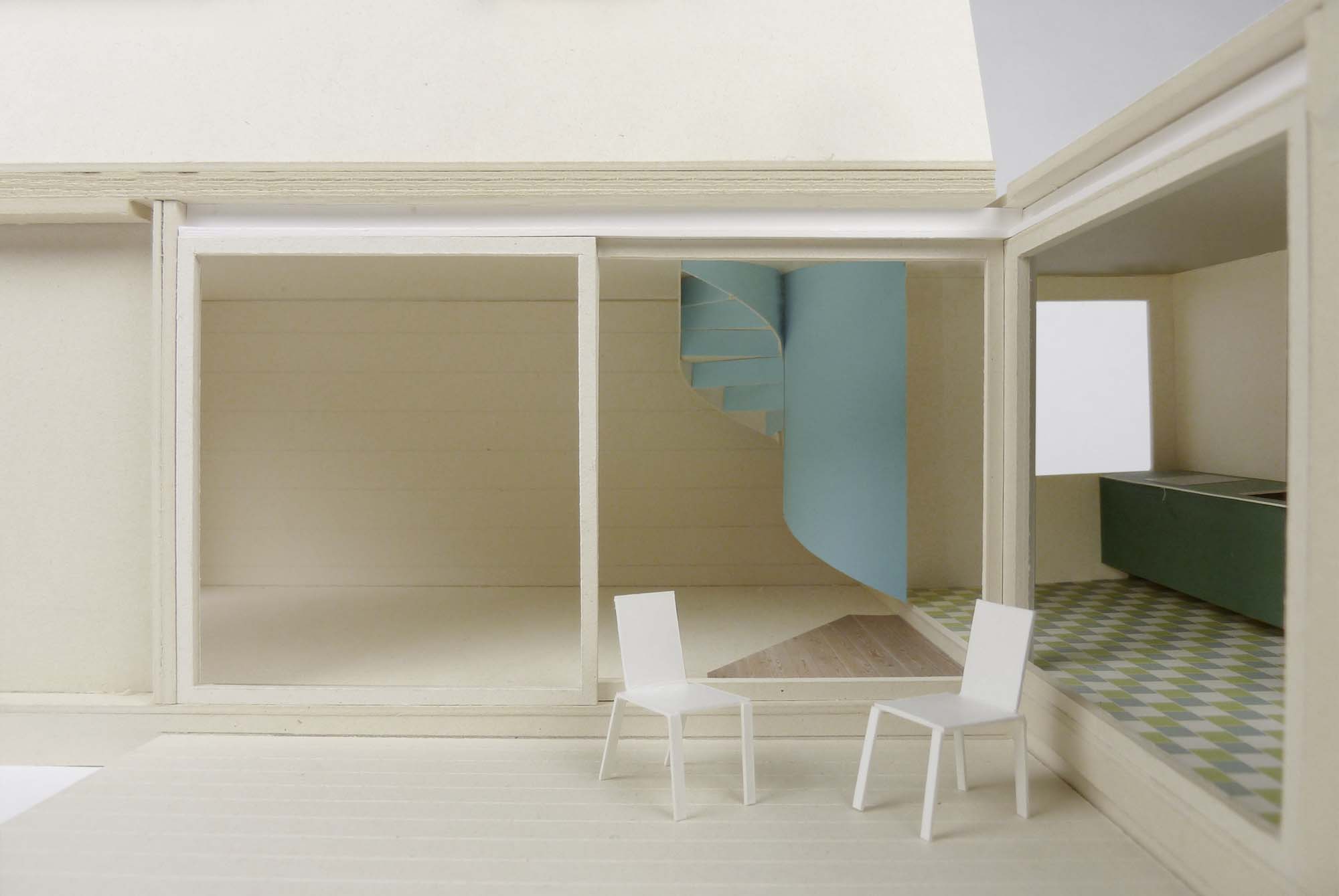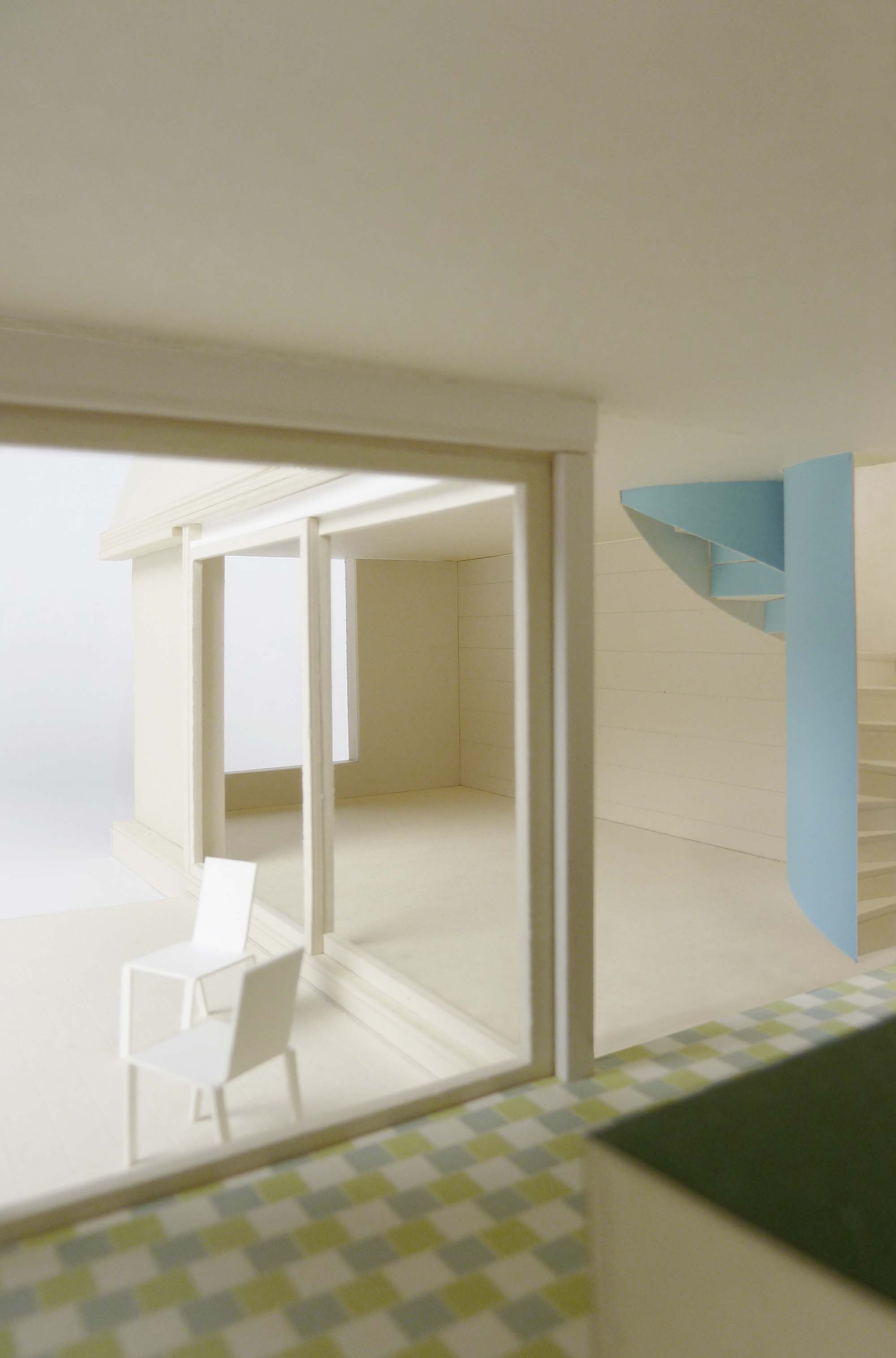 The autonomy that is already suggested by the overall form is also feasible in functional and spatial terms. An offset between the original house and the new construction enables an entry door to be retrofitted in the addition, thus allowing it to later become an independently accessible dwelling. The design takes a cue from the common rural practice of providing a secondary home on a farmstead: when a successor takes over the property, its former owner lives out his or her retirement in a smaller version of the farmhouse. Inspired by this tradition, the Auwaerter House addition can later be separated and rented as an accessory dwelling or passed on to the children.