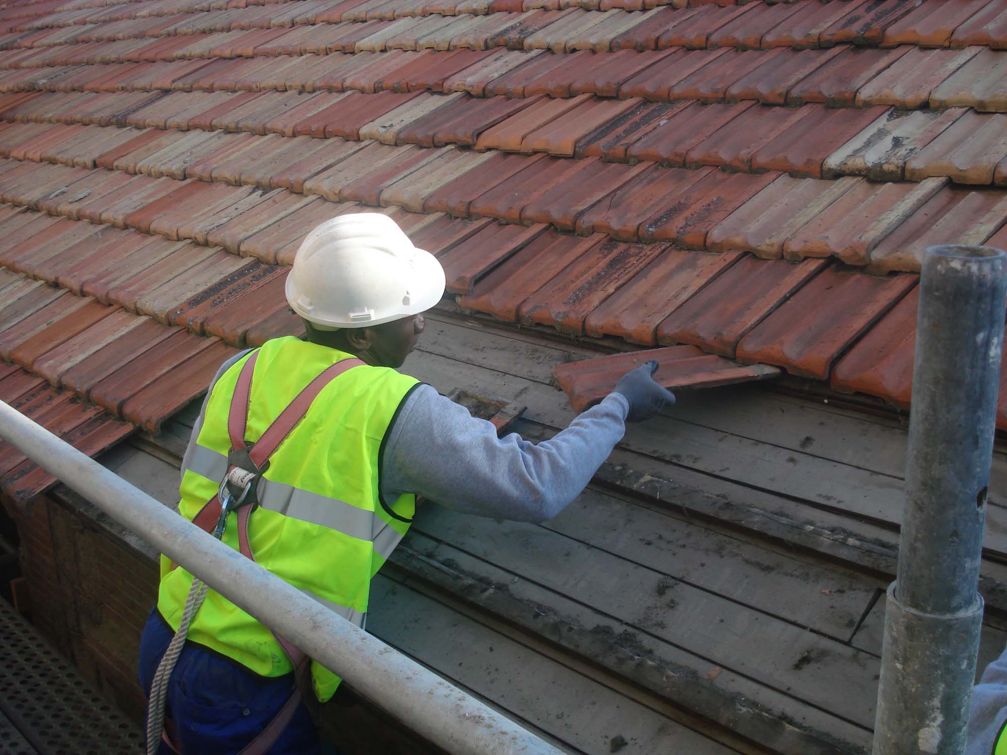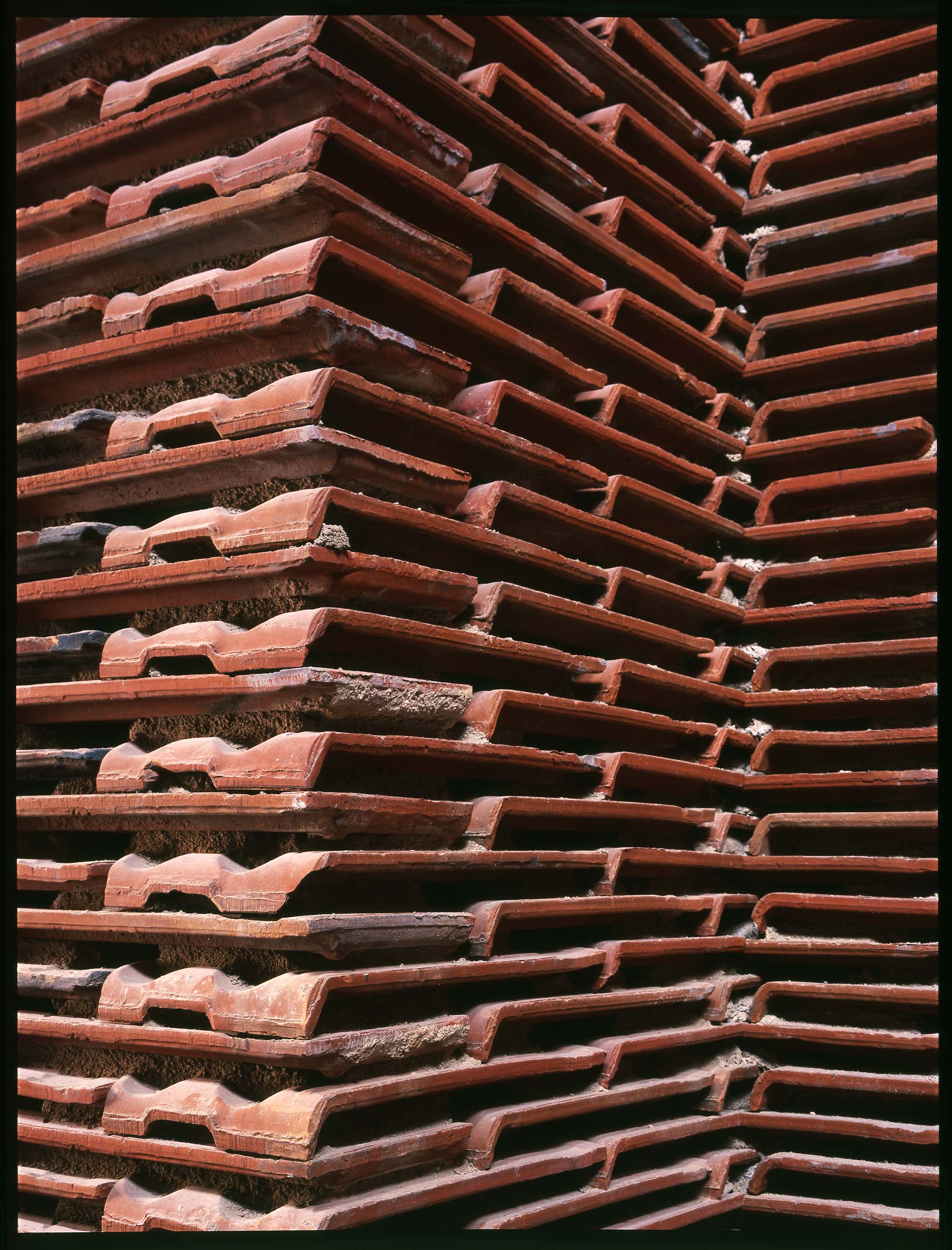 In a small warehouse of the old slaughterhouse of Madrid, warehouse 8B, the tiles in bad condition have been removed from the roof, been stacked and been put inside to solve a problem. This could be the summary of the intervention.
