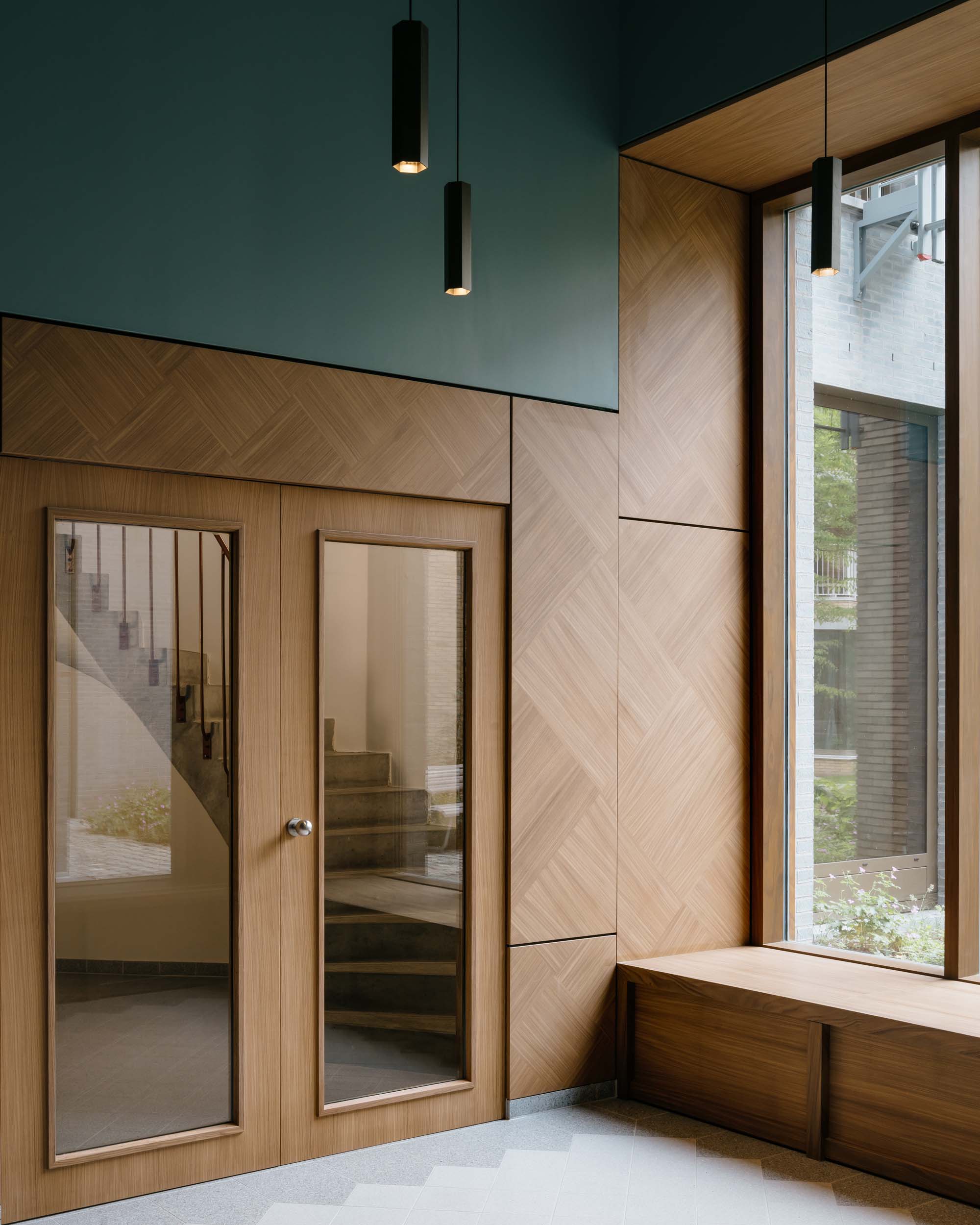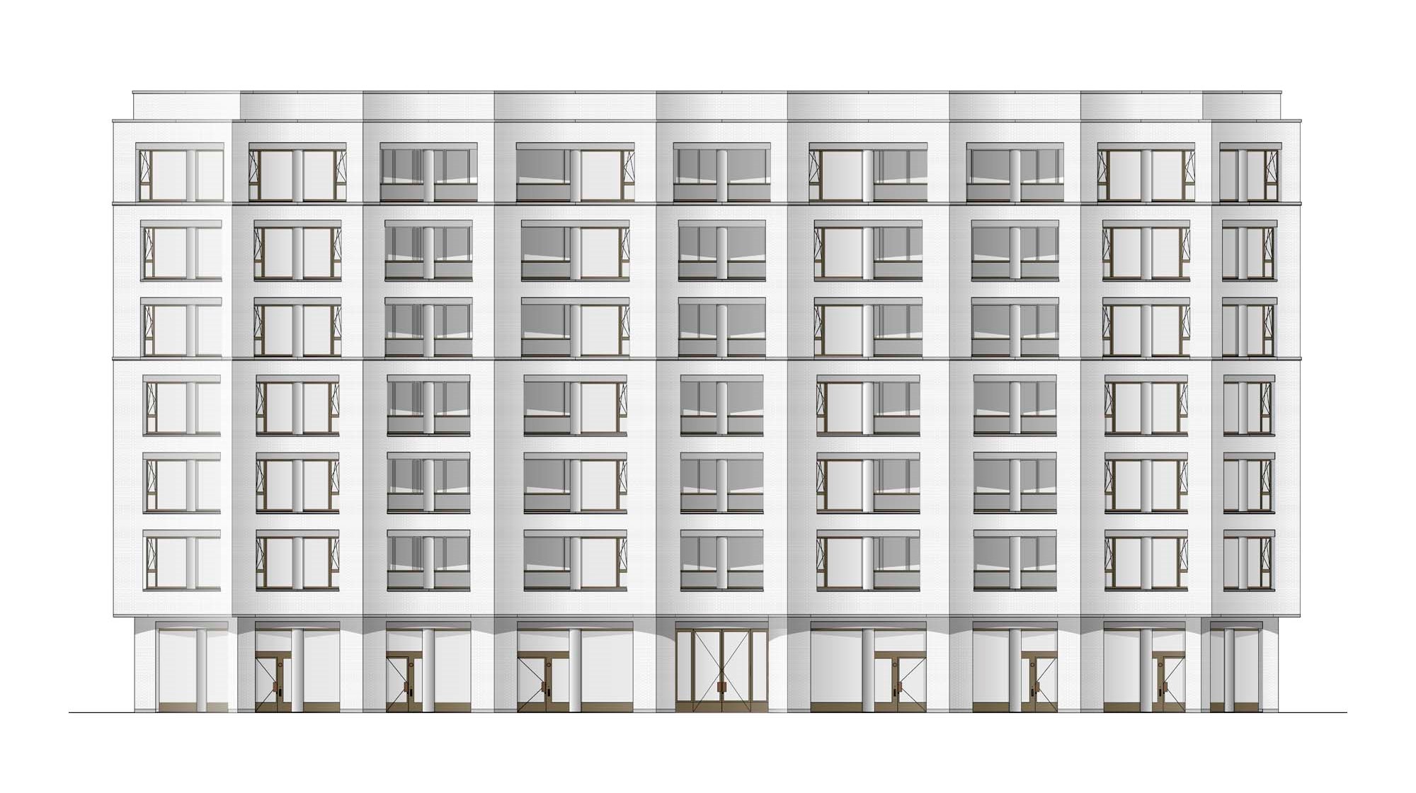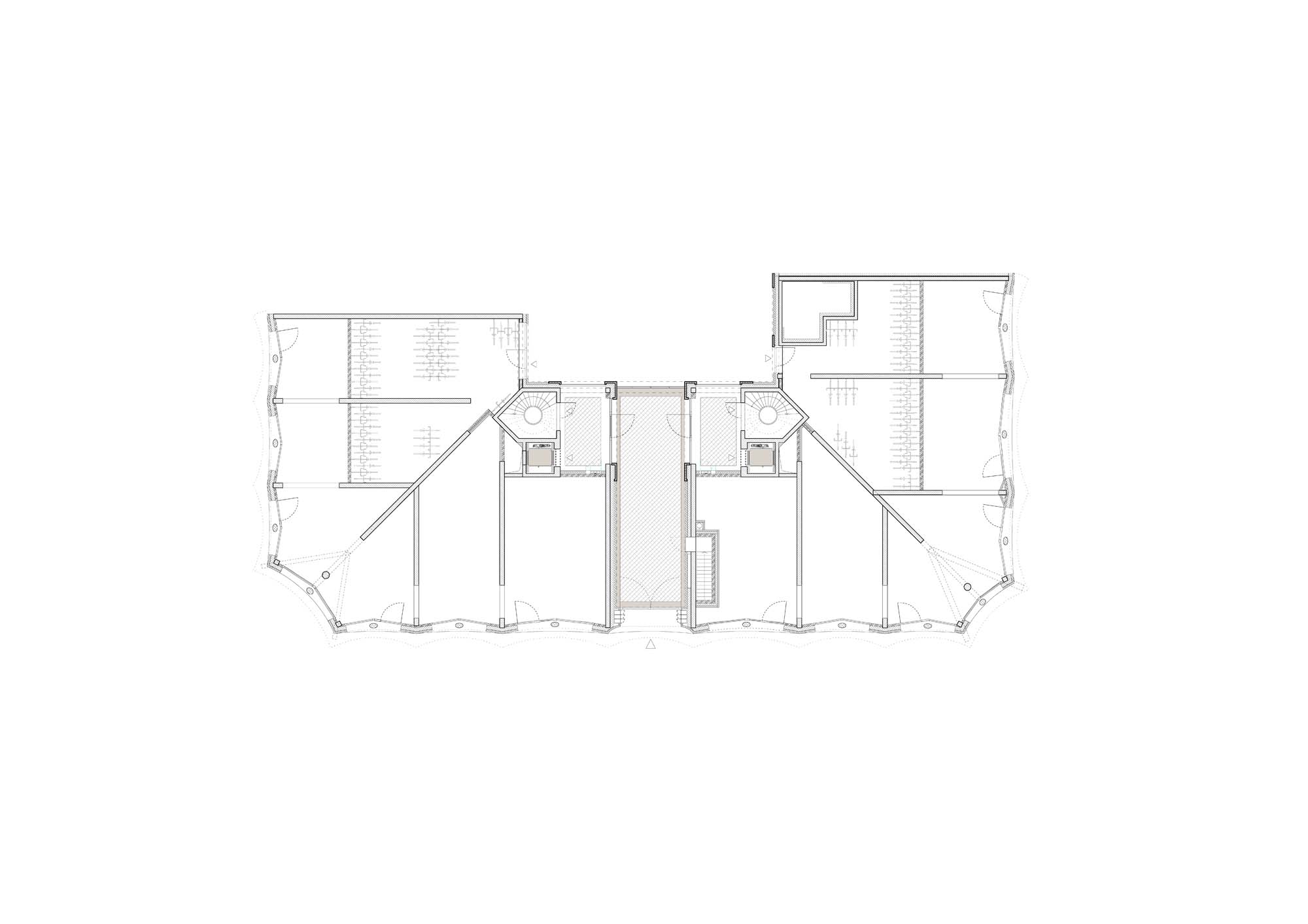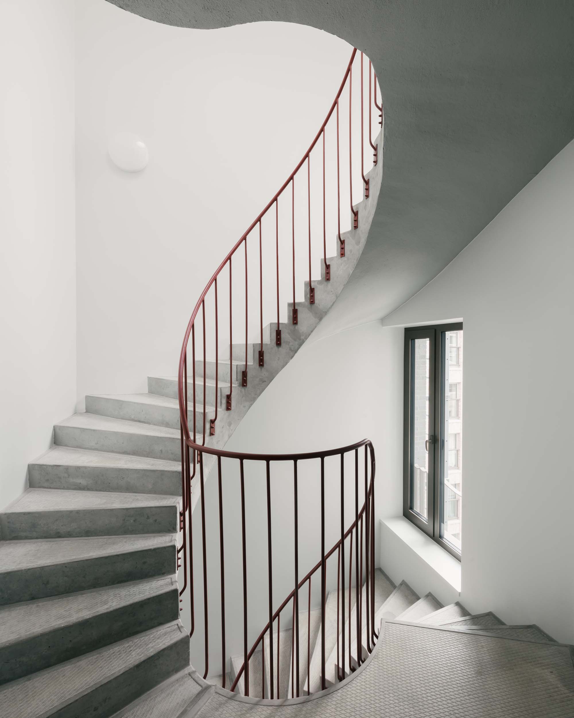 On a prominent site in the old port of Antwerp, next to the Kattendijkdok, we have constructed a stately residential building on the Londenstraat: an urban ‘palazzo’. The building is draped in a rhythmic, undulating facade, the order of which is both monumental and layered. The rhythm accommodates living spaces and large indoor terraces, which brings an air of domesticity and dynamism to the imposing volume. A shallow cantilever along the commercial spaces in the plinth creates intimacy for the pedestrians on the boulevard. A central passage, which bisects the palazzo, connects the Londenstraat with the courtyard. Glass facades lead the eye through the passage towards the interior. Two entrance areas provide access to nine apartments per floor. The route from pavement to front door is suffused with light and offers fine views. Sergison Bates Architects and Bulk Architecten designed the other four buildings in this city block.