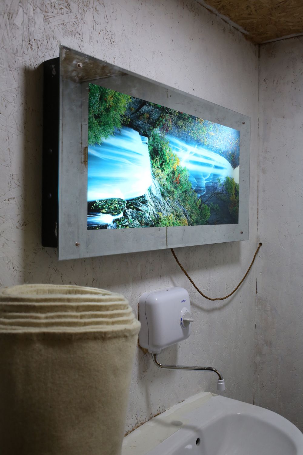 The mirrored plan reflects the rationale of the structure and provides a flexible layout for the open plan twin studios. Building elements are rationalised to the essential minimum to meet statutory requirements, most clearly expressed through the exposed breather membrane within the interior. This was a major cost saving and a key aspect of the design, allowing us to use the reflective properties of the material to fill the space with natural light. Two large openings made out of Polycarbonate and Double Glazing are fixed, while natural ventilation is provided through lockable openings in the external doors.