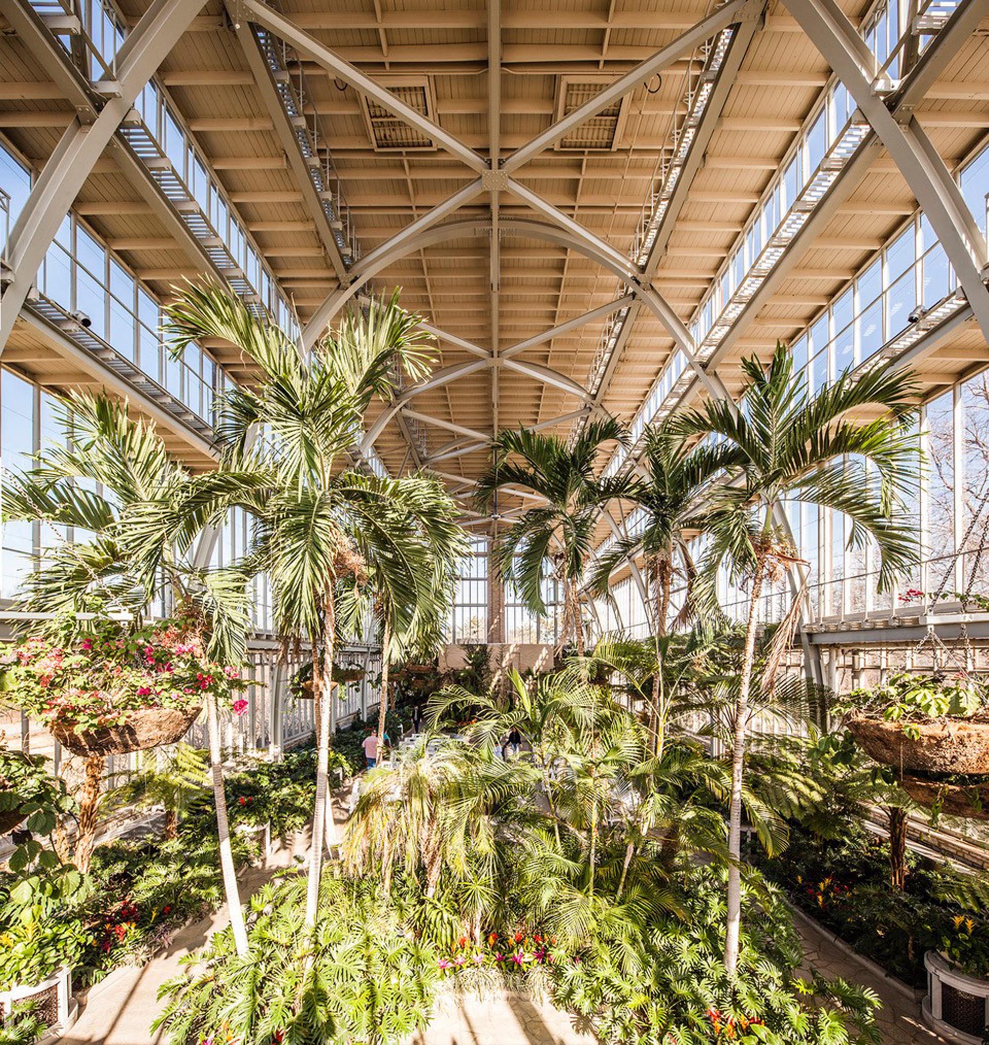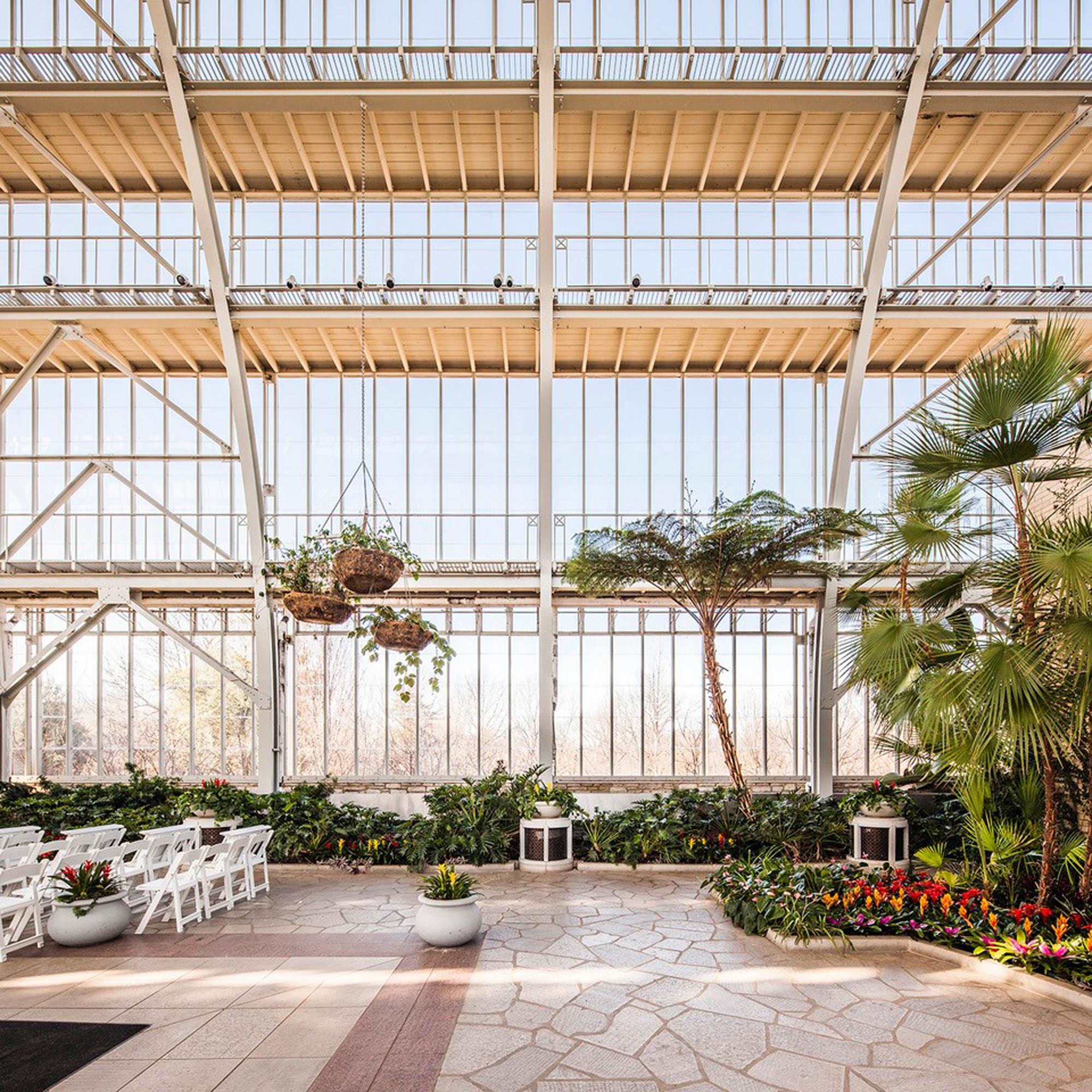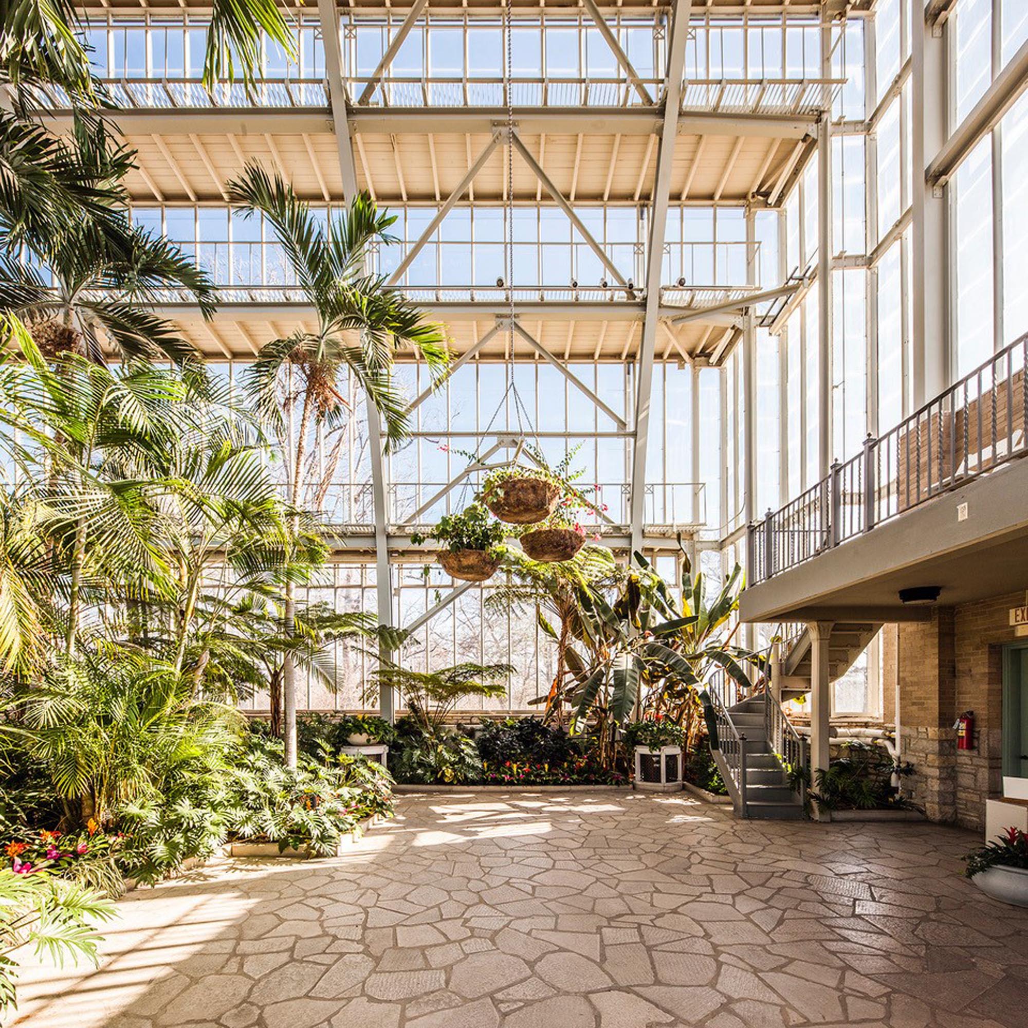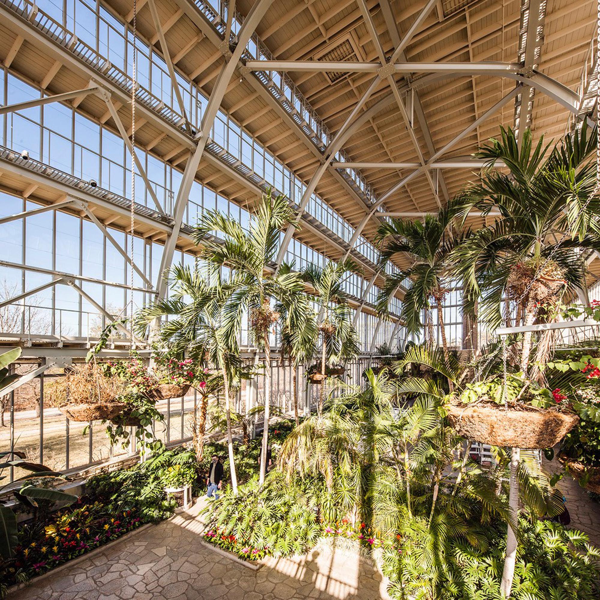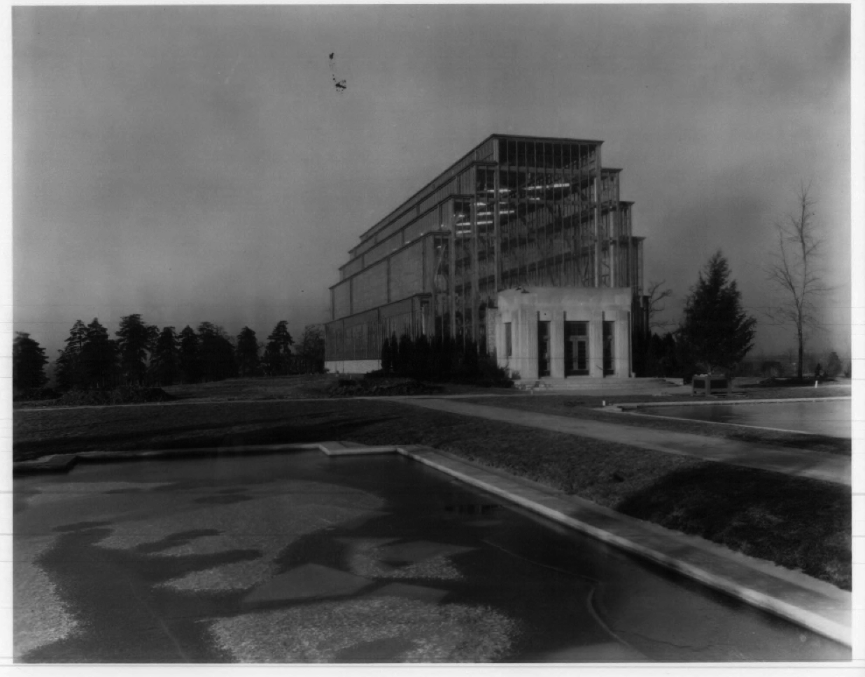 Constructed 1936-37, the Art Deco building is an outstanding example of greenhouse design. A distinct and controversial departure from conventional greenhouse design, the plan by engineer William C. E. Becker was in part a result of months of extensive testing to determine appropriate light levels.