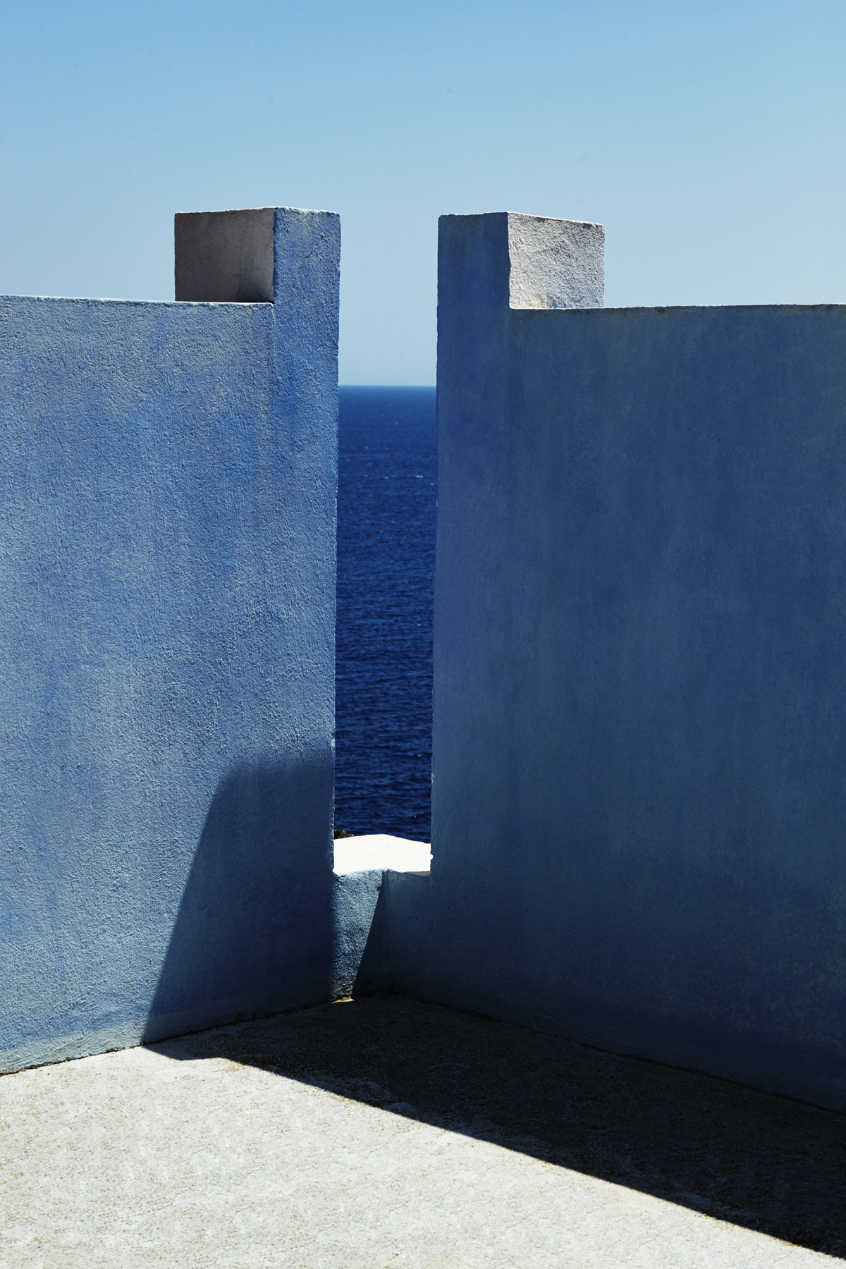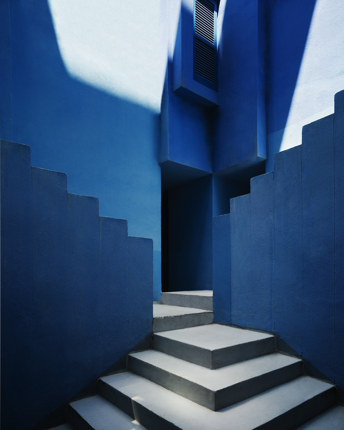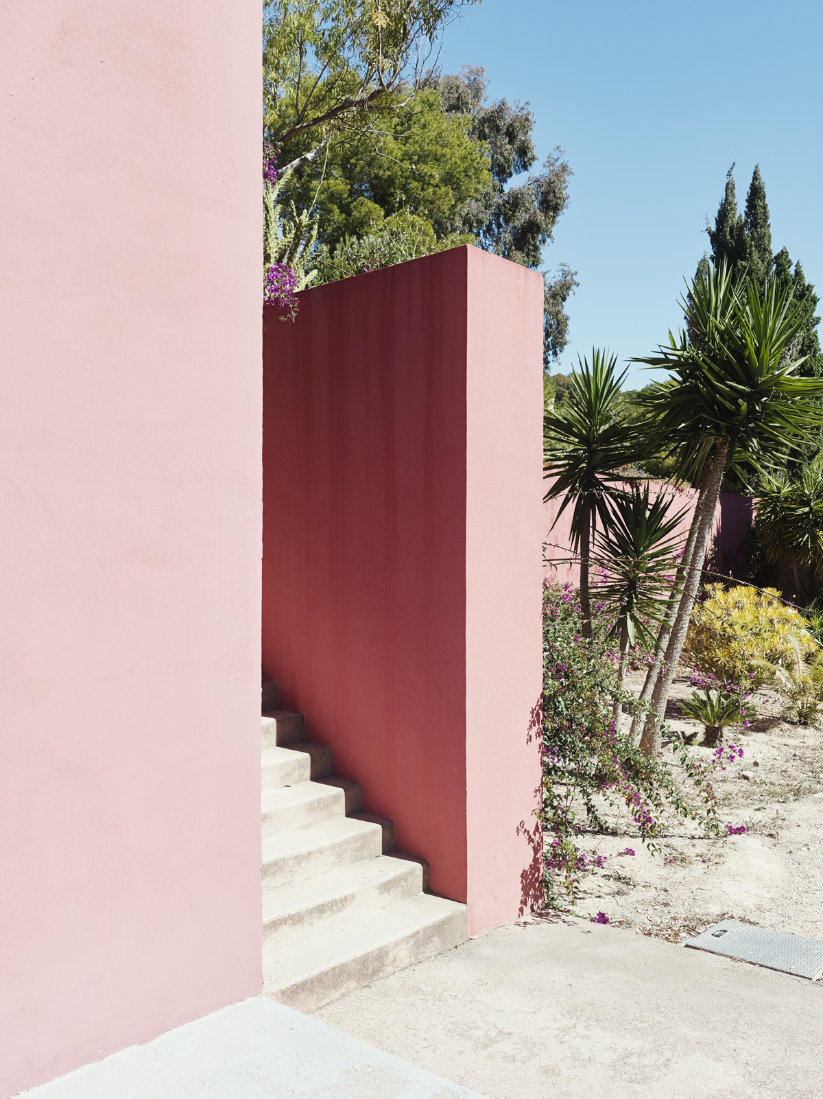Las superficies exteriores están pintados en varios tonos de rojo para acentuar el contraste con el paisaje; los patios y las escaleras, sin embargo, están tratados con tonos azules, como el cielo azul, índigo, violeta, con el objetivo de producir un contraste más o menos pronunciado con el cielo o, por el contrario, un efecto óptico de fusión con el mismo. La intensidad de los colores también está relacionada con la luz, demostrando como la combinación de estos elementos puede ayudar a crear una mayor ilusión del espacio.