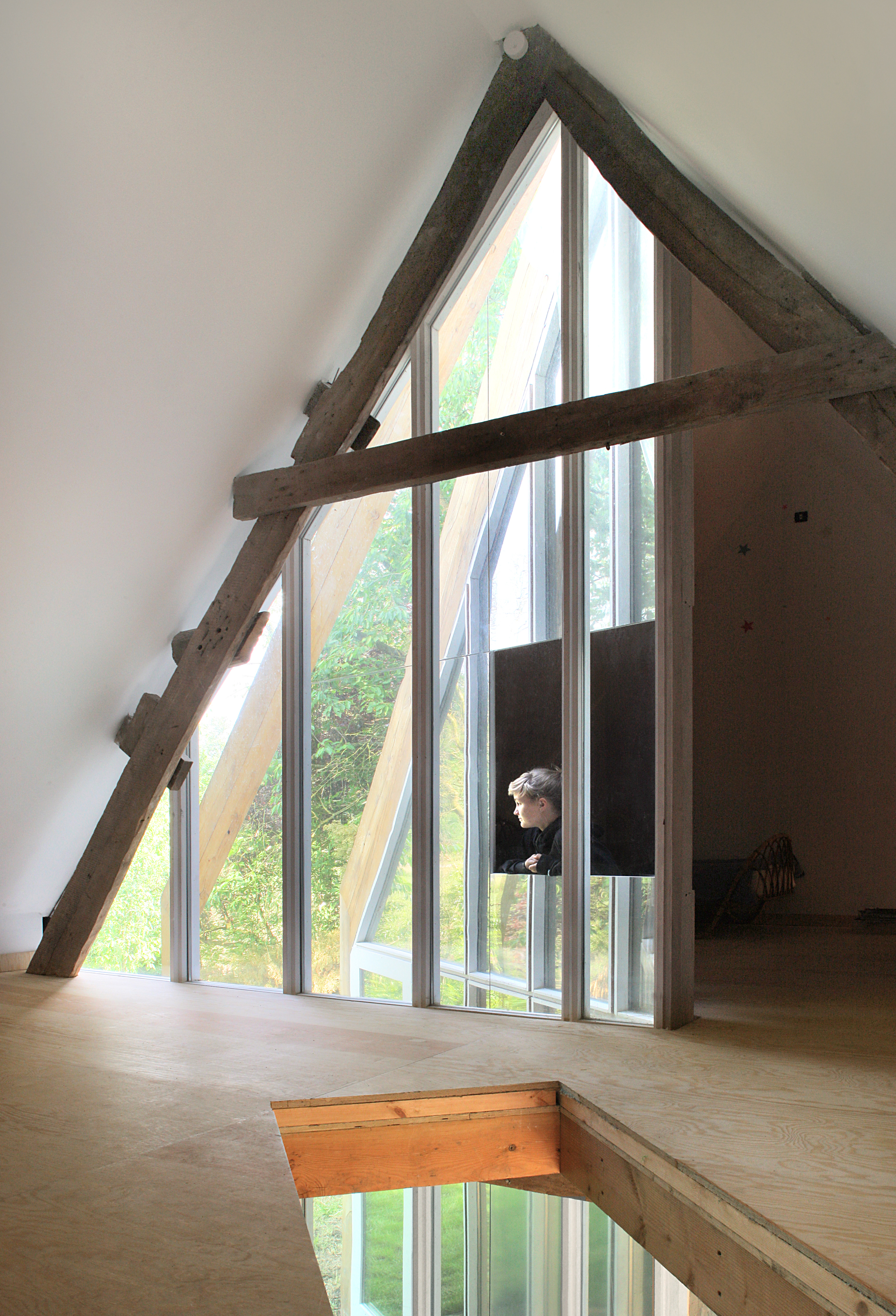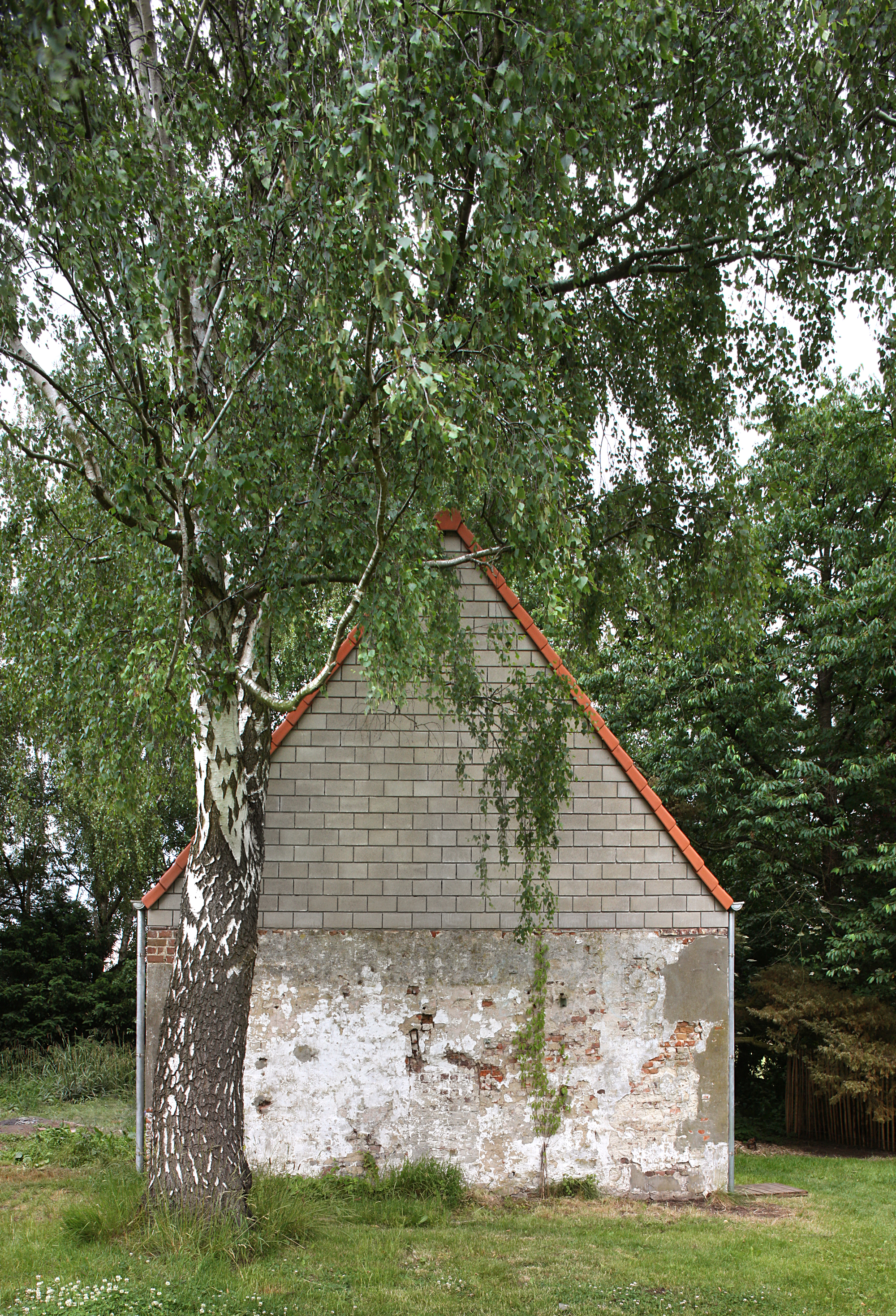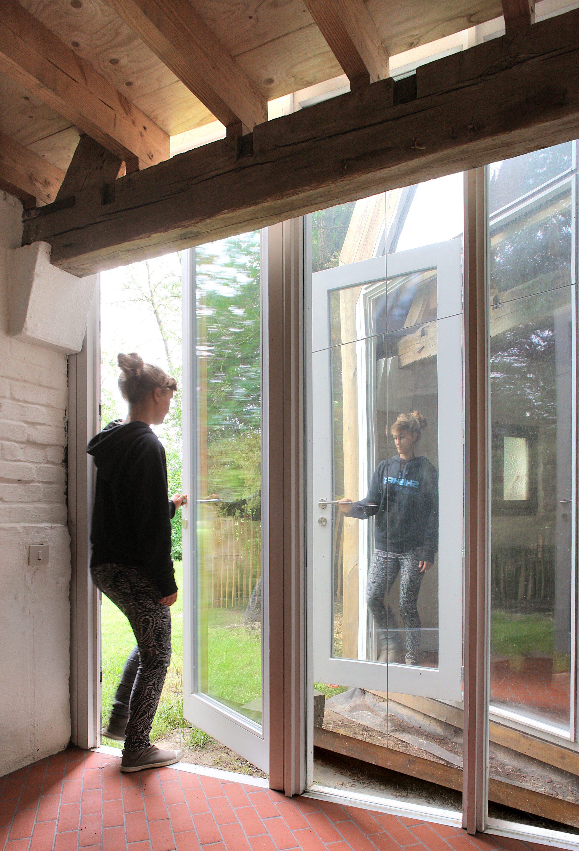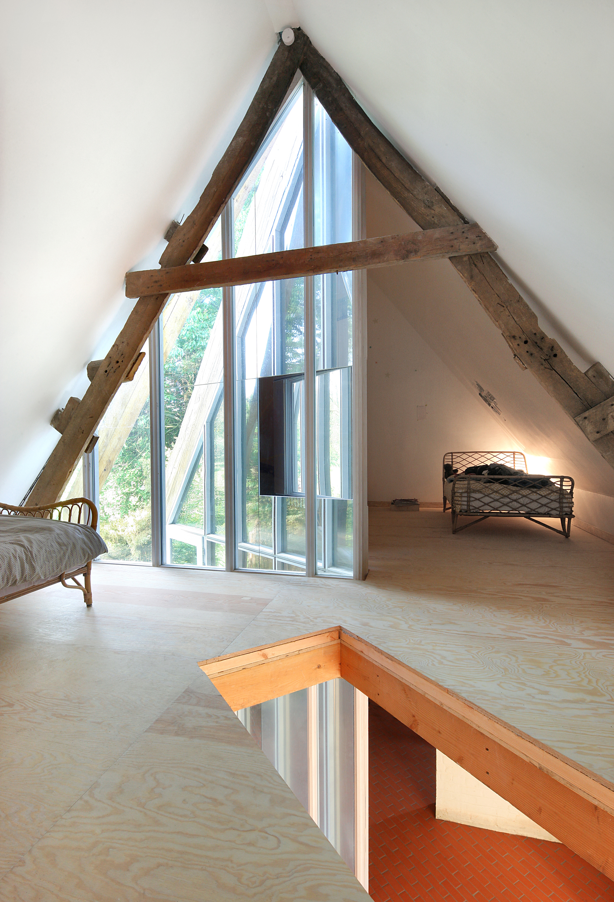 The barn at Kouter is cut through. In the cut, a window and a door appear. On one side. On the other side, a mirror. The cut is a purely functional wish. Light, access. The cut is probably also a dichotomy. For nothing needed to be added, yet it must happen nonetheless. The mirror immediately heals the wound, or, at least, it turns the cut into something different.