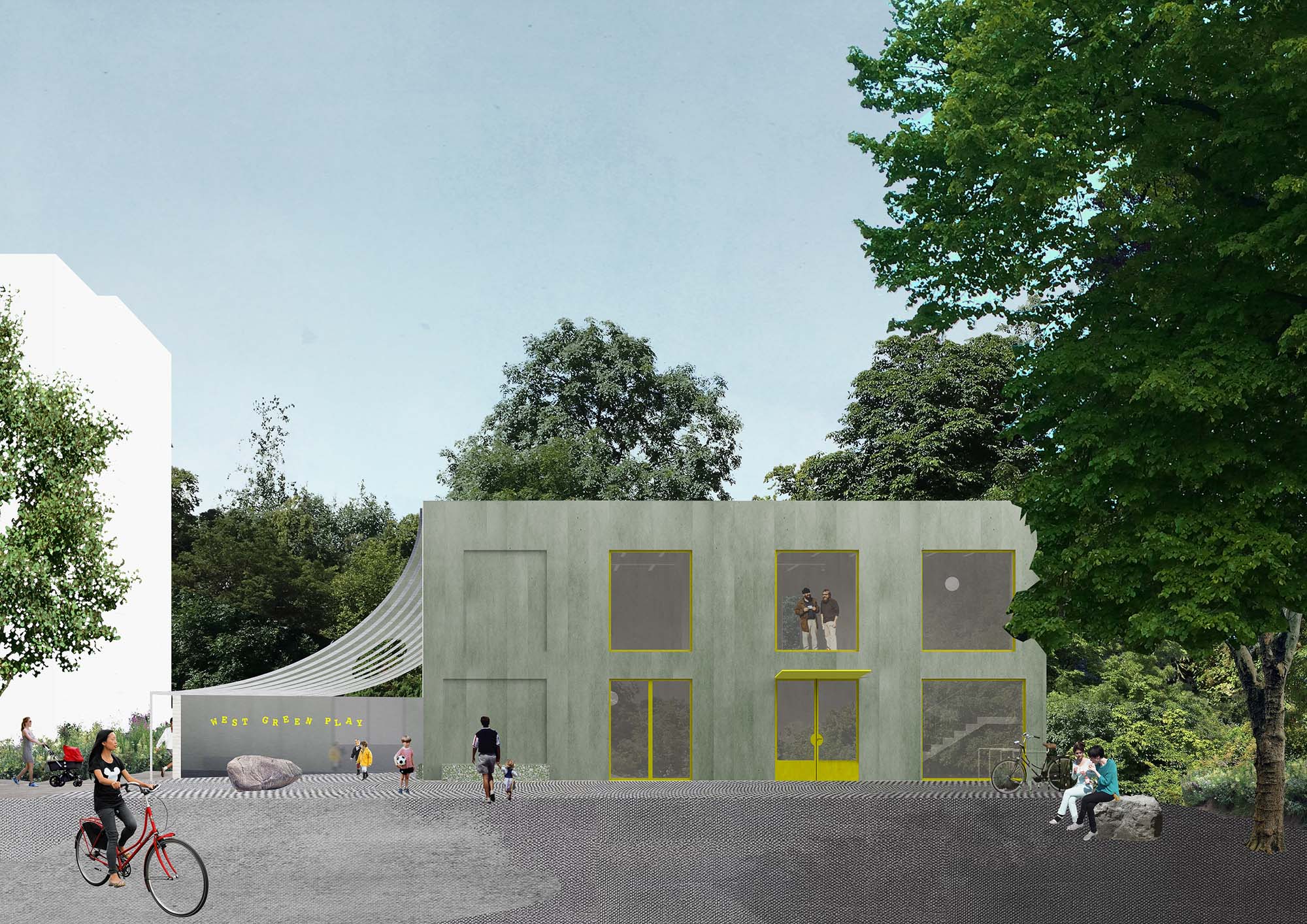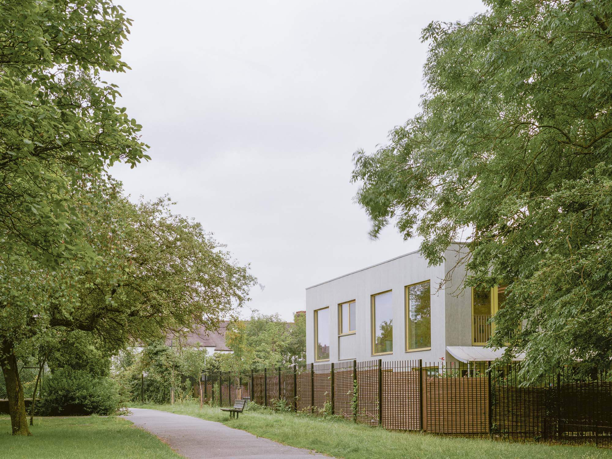 The Nursery & Community Centre marks the entrance to the West Green Place housing community in Haringey, London, developed by Pocket Living. The building forms a link between the entrance square to the community on the east side, the end of the terraced housing on the south and Downhill Park on the west and north side.