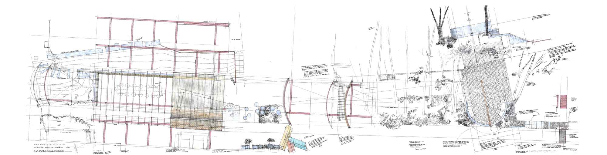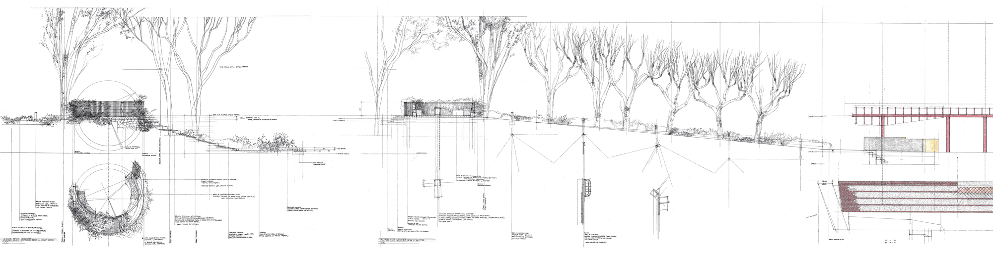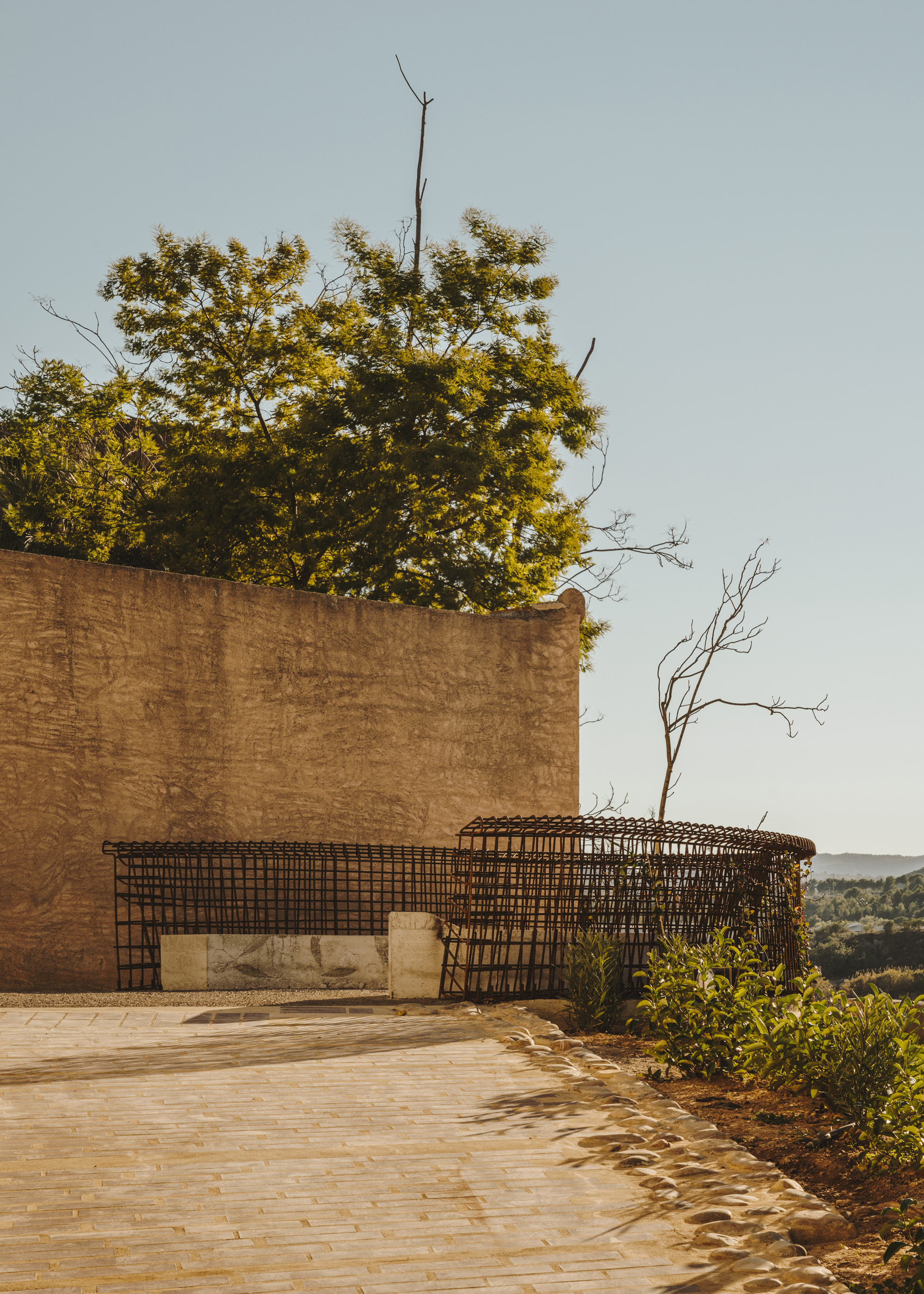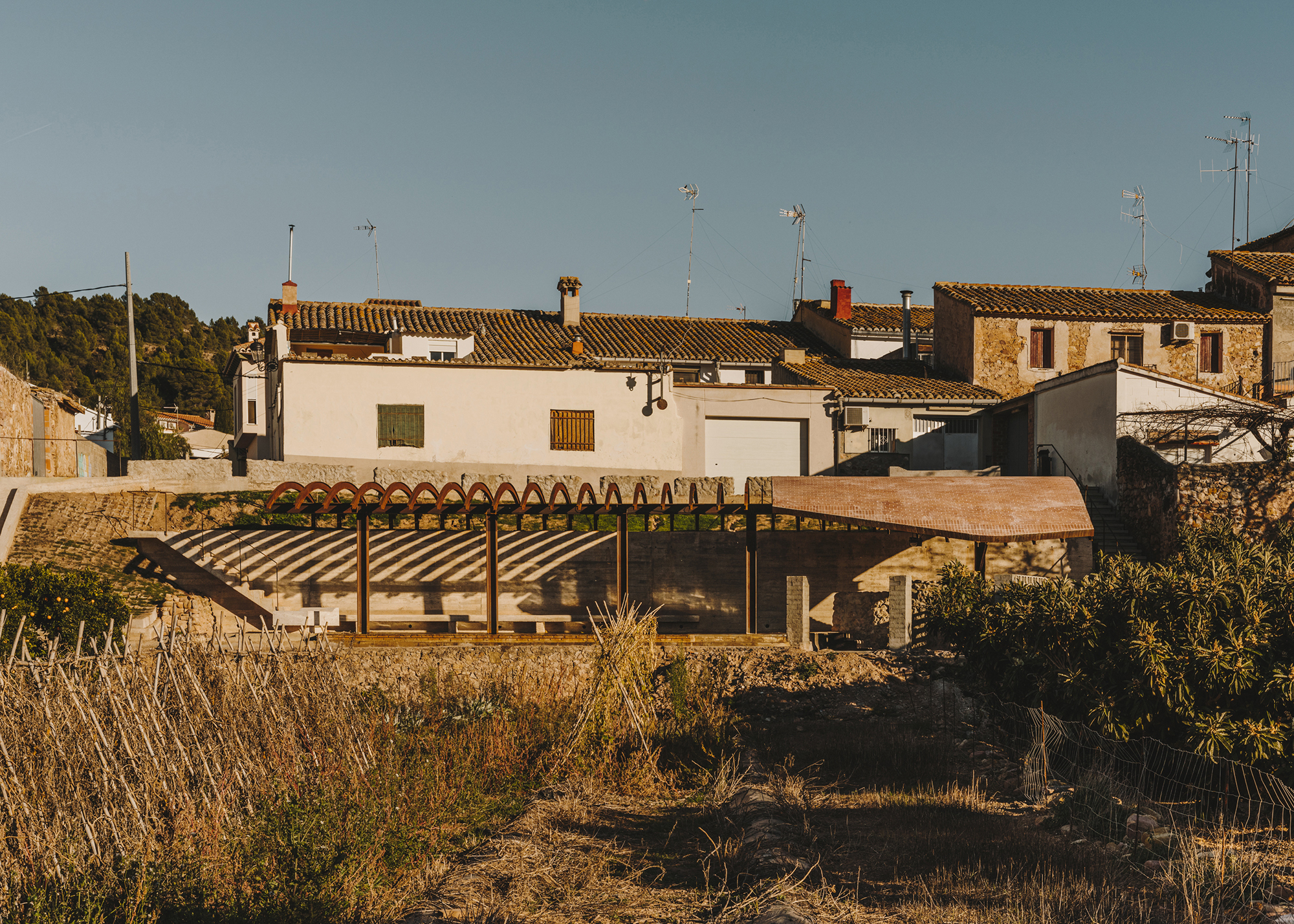 The pergola gathers all the space under its curved vault, soon to be covered by Virginia creeper vine, red in Autumn.