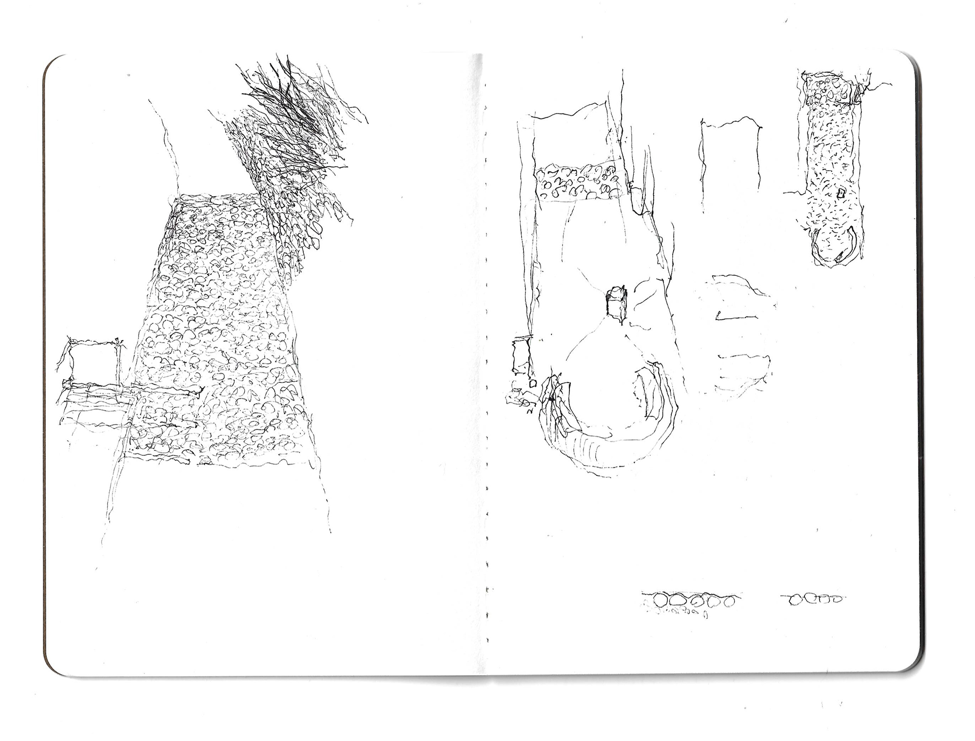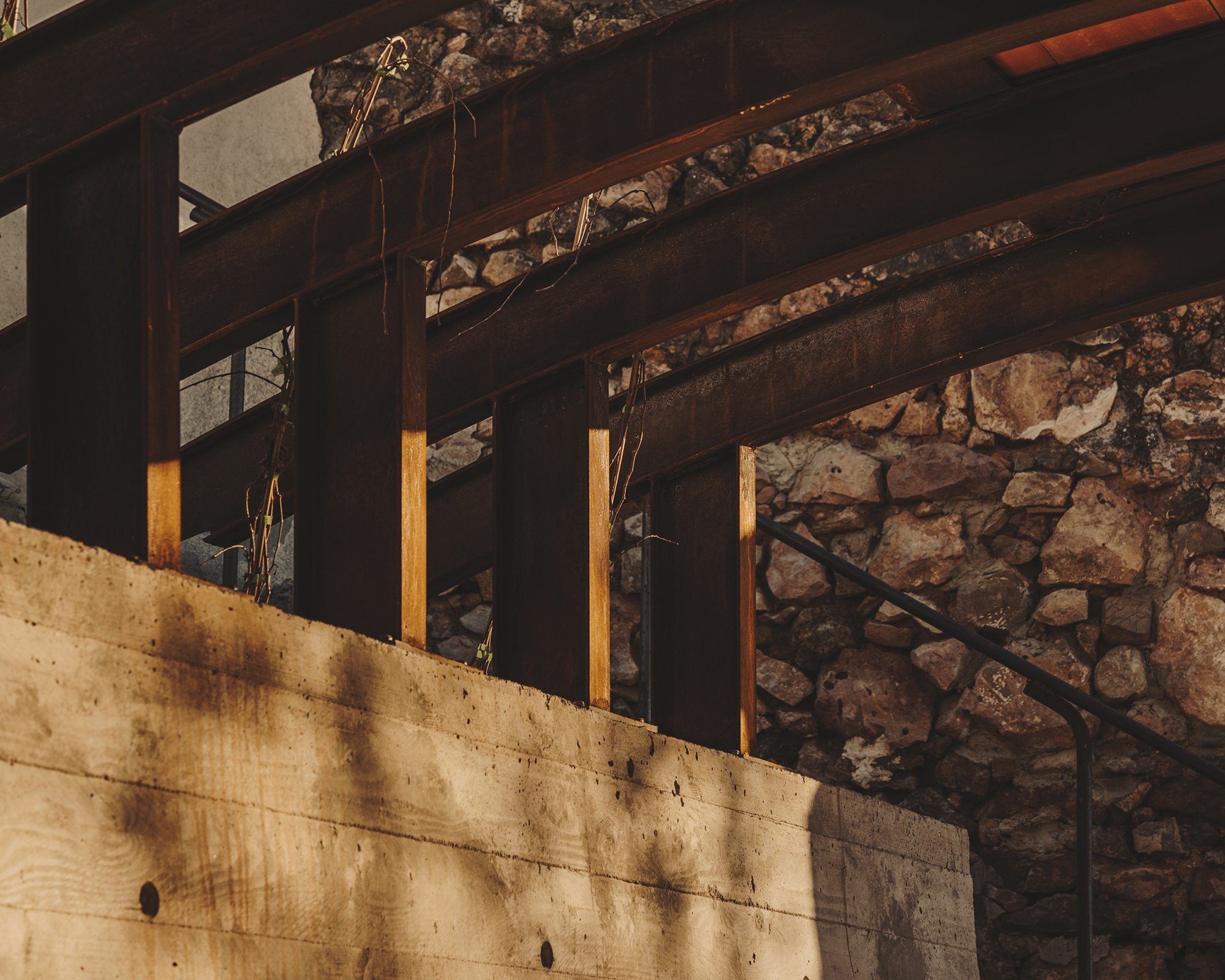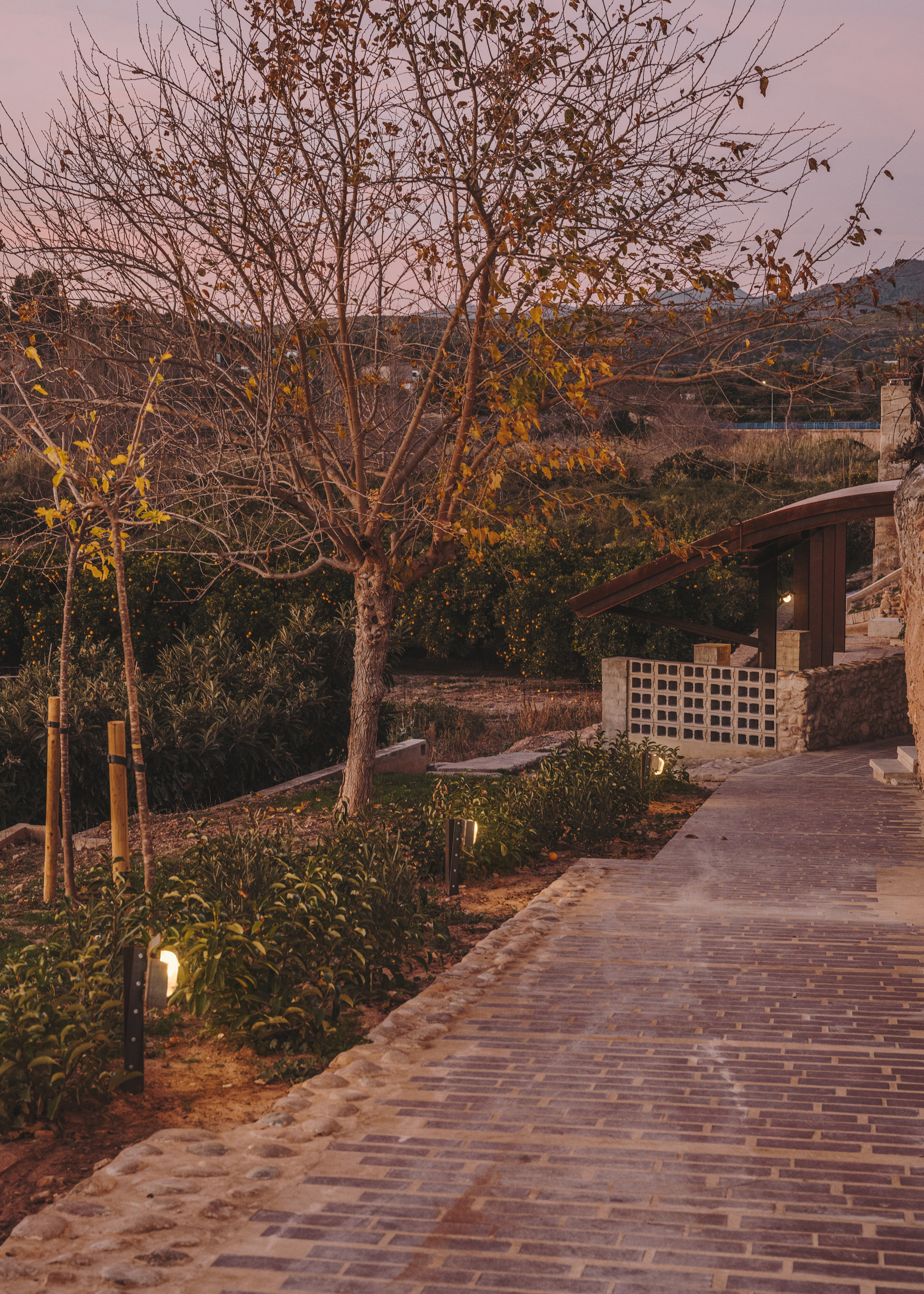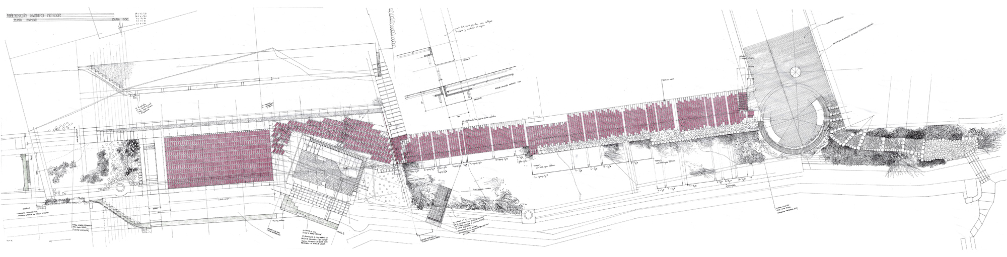 On the other side, a path gently slopes downward to the remains of the old washhouse. New stairs provide access and sitting –surprisingly, it is still in use by a few neighbors of age-.