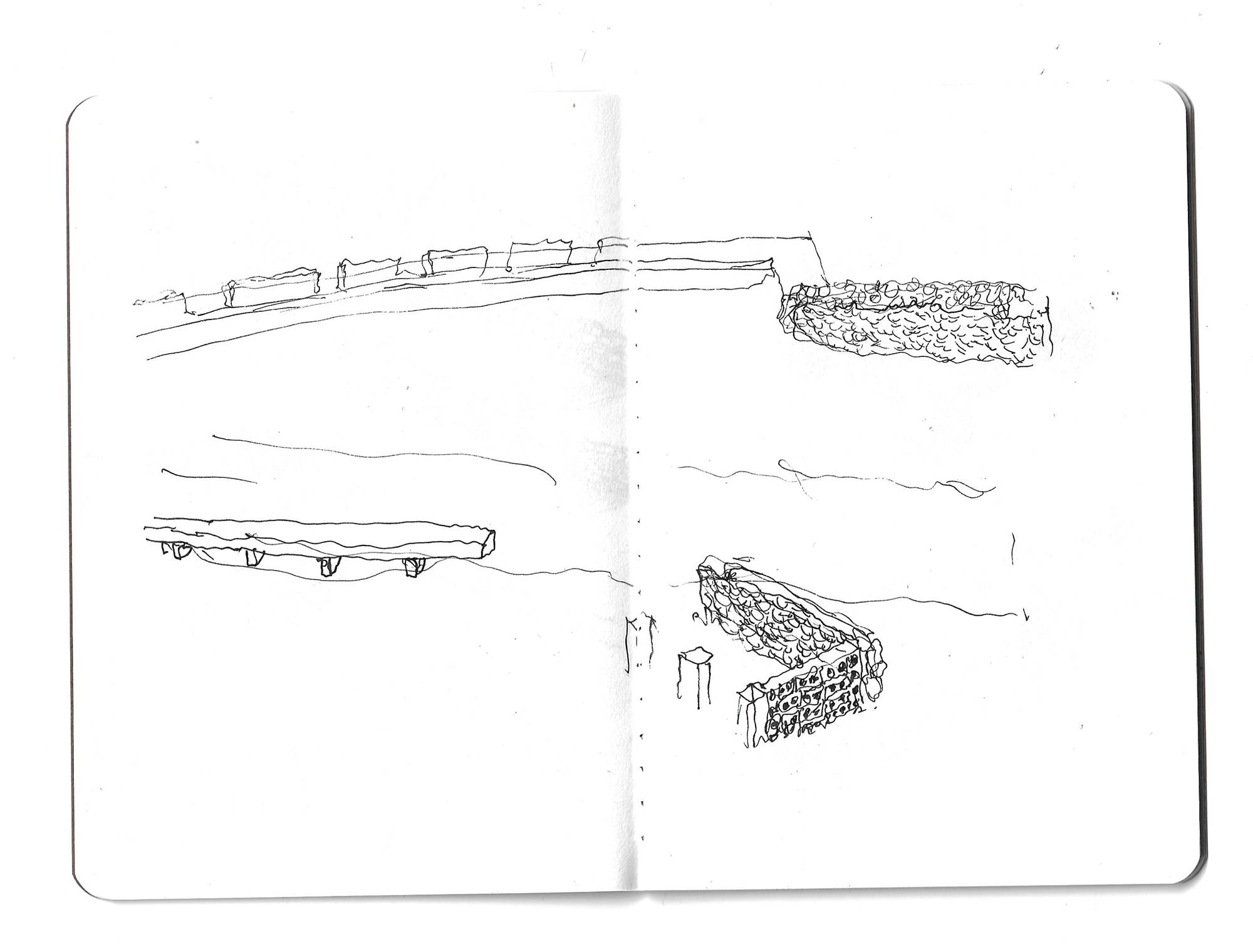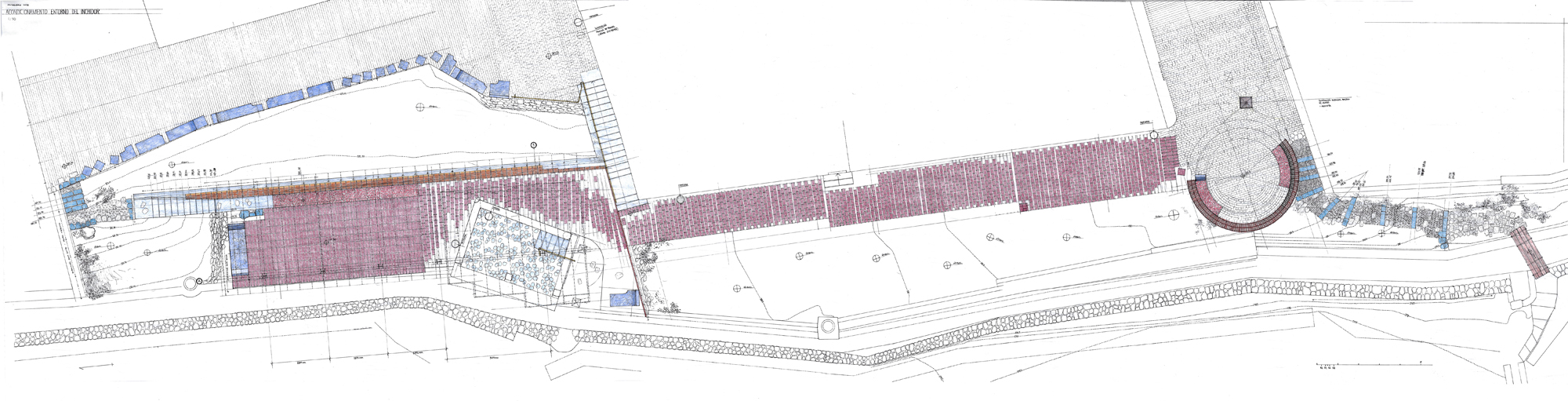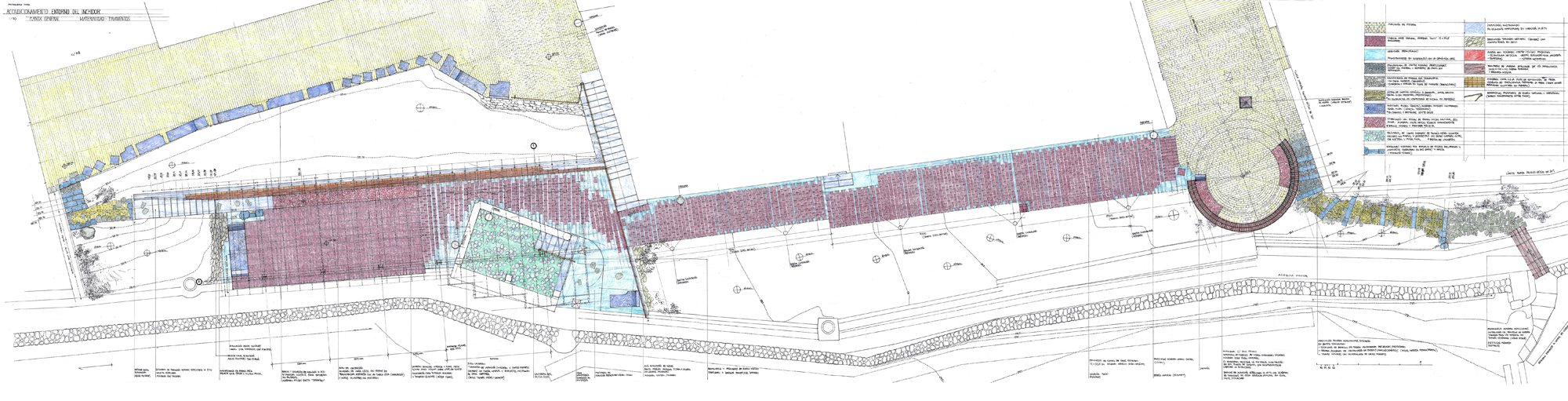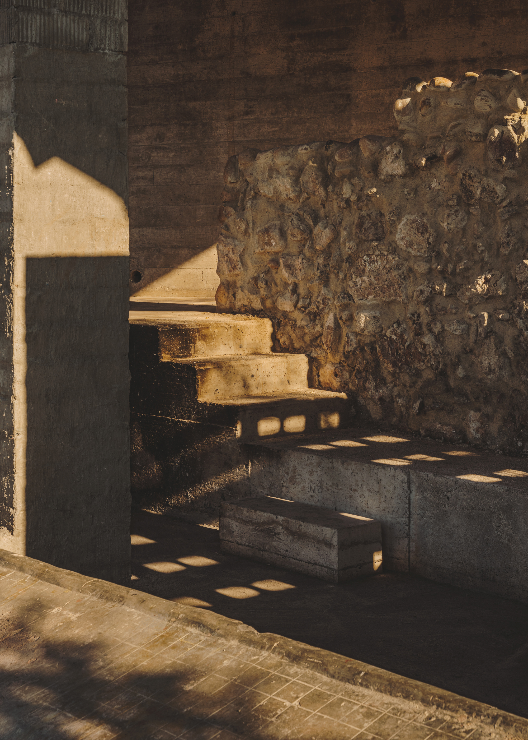 On the other side, a path gently slopes downward to the remains of the old washhouse. New stairs provide access and sitting –surprisingly, it is still in use by a few neighbors of age-.